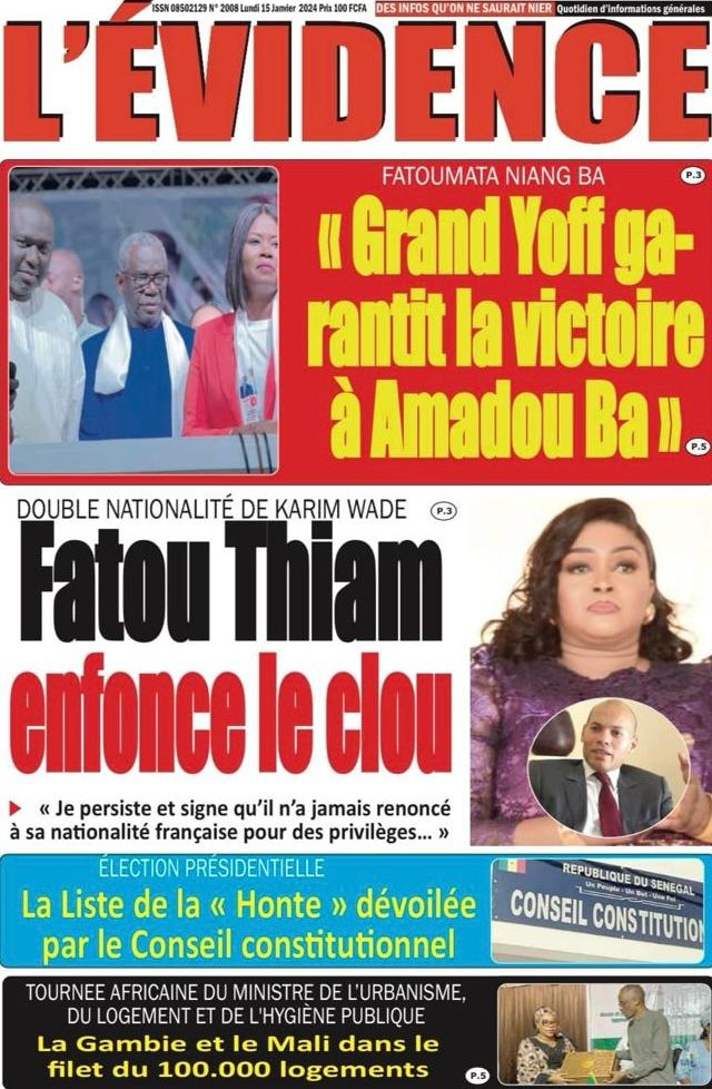 " /> La Une des Quotidiens Nationaux du 15 Janvier 2024 Publié le 15 Jan, 2024 À DÉCOUVRIR Les Unes des quotidiens nationaux du 31 octobre 2025 31 Oct, 2025 Partager ->