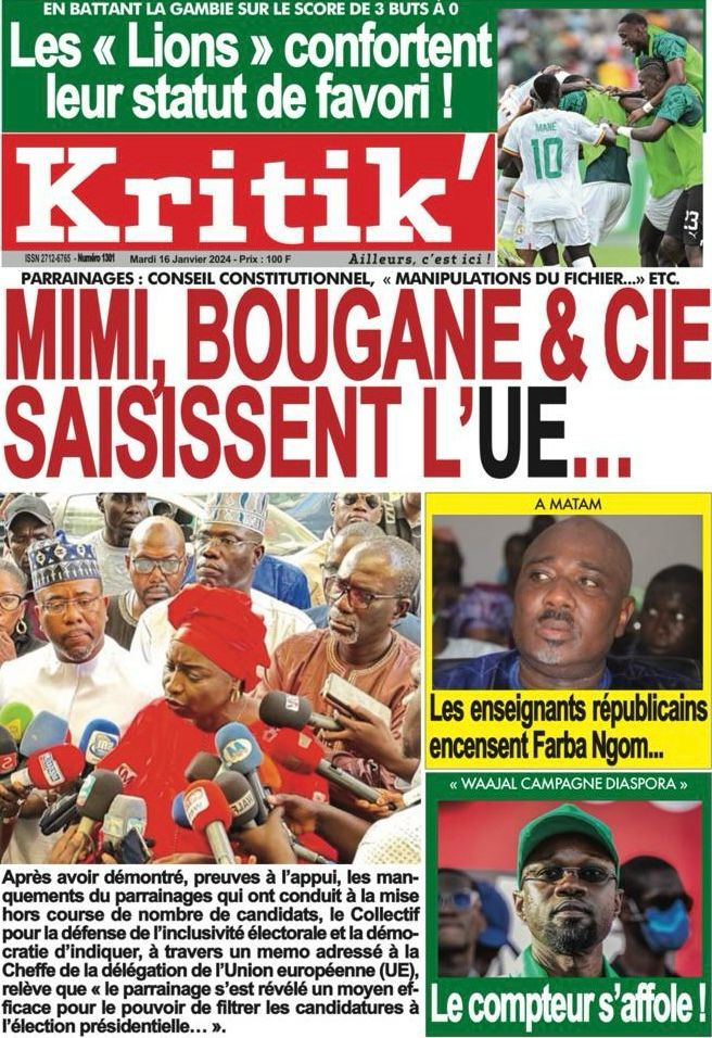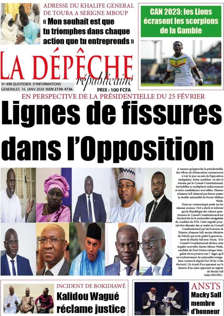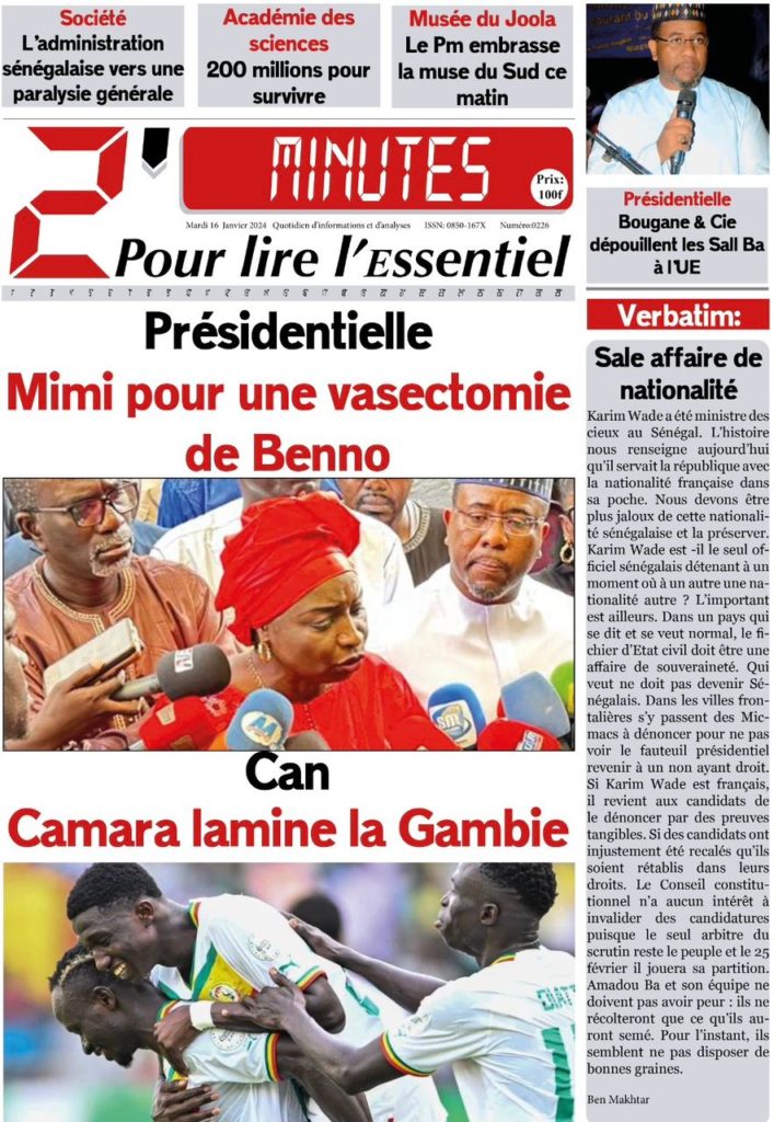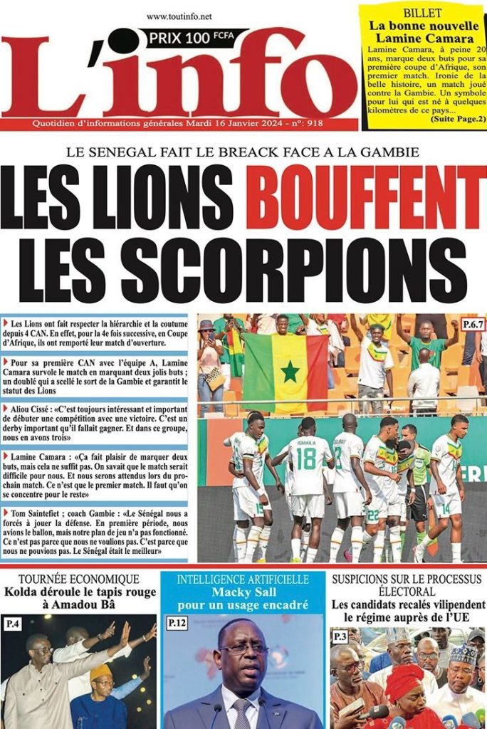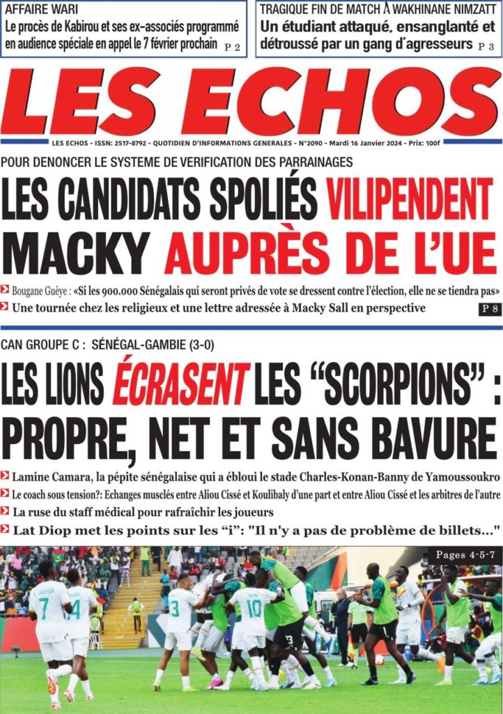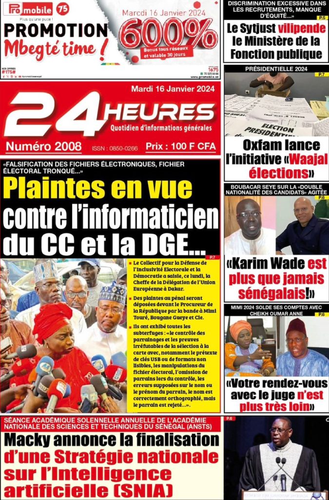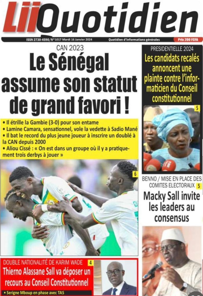 " /> La Une des Quotidiens Nationaux du 16 Janvier 2024 Publié le 16 Jan, 2024 À DÉCOUVRIR Les Unes des quotidiens nationaux du 31 octobre 2025 31 Oct, 2025 La Rédaction de SenCaféActu Partager ->