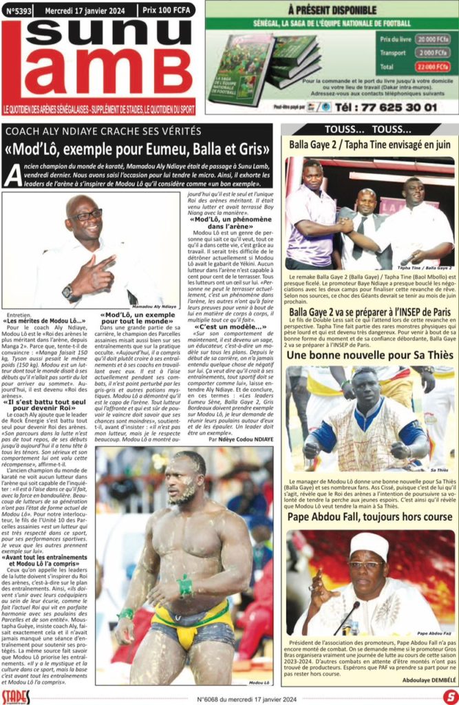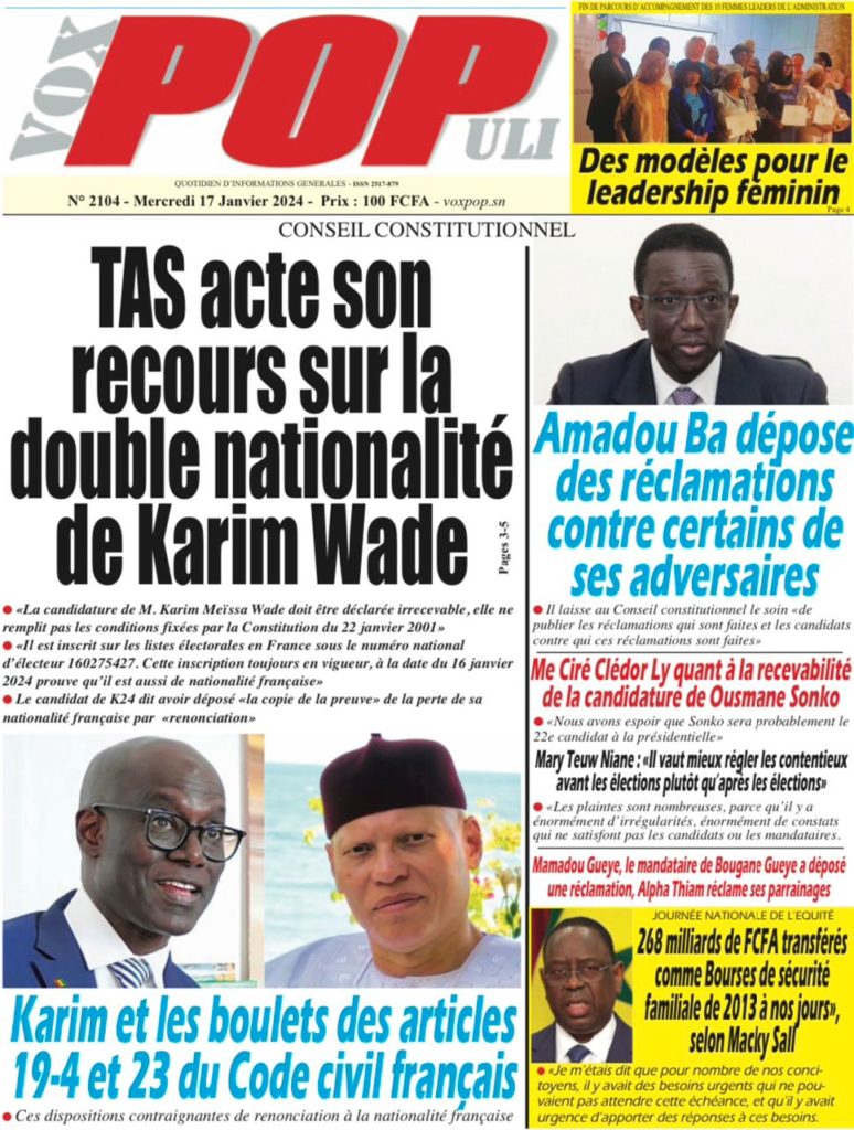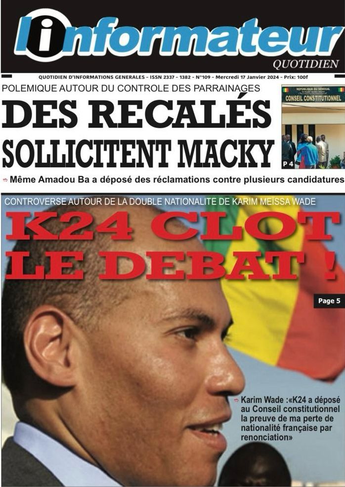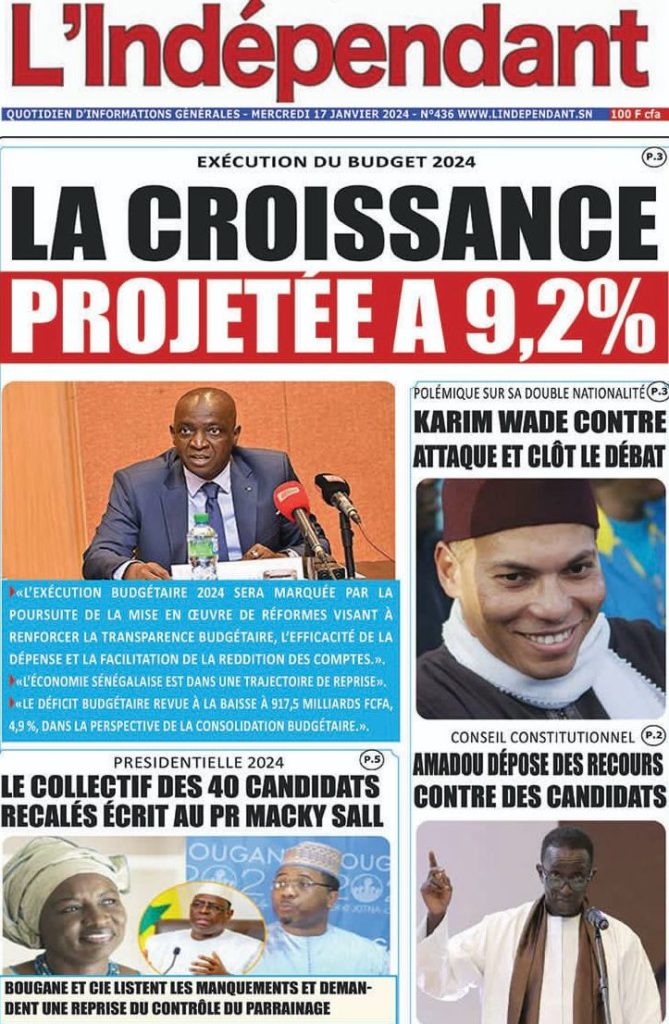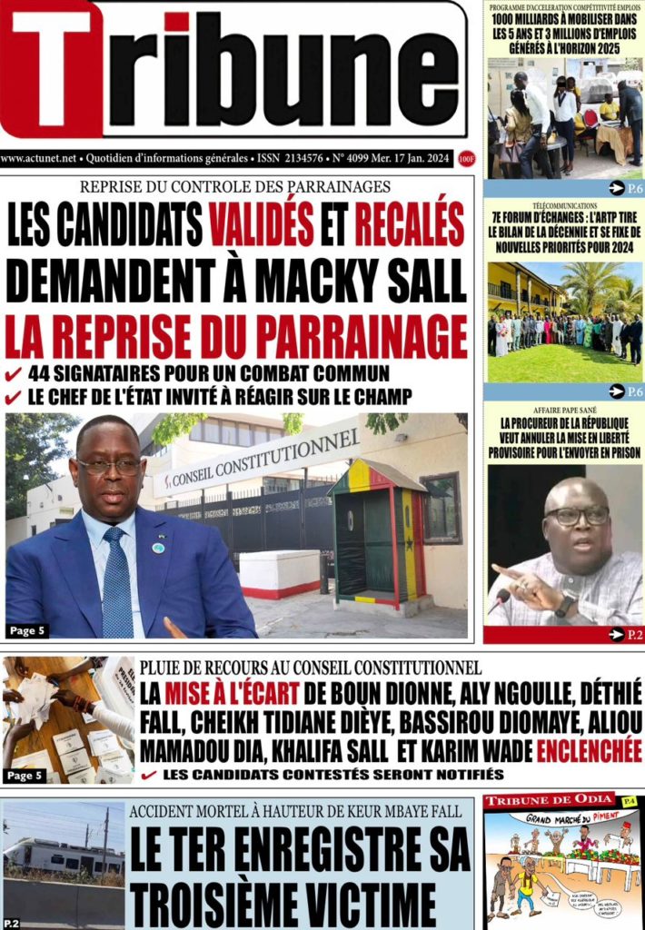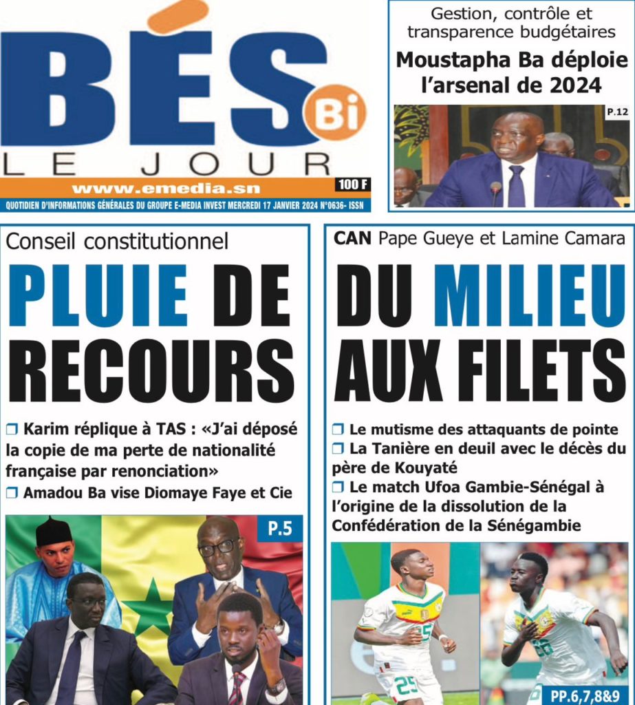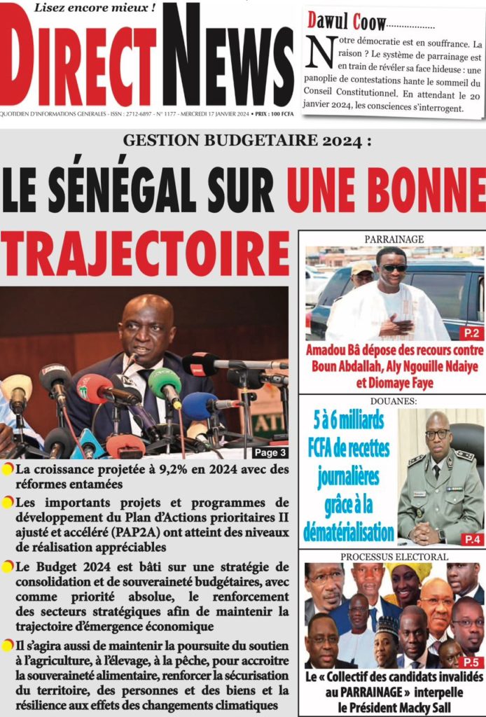 " /> La Une des Quotidiens Nationaux du 17 Janvier 2024 Publié le 17 Jan, 2024 À DÉCOUVRIR Les Unes des quotidiens nationaux du 07 novembre 2025 7 Nov, 2025 La Rédaction de SenCaféActu Partager ->