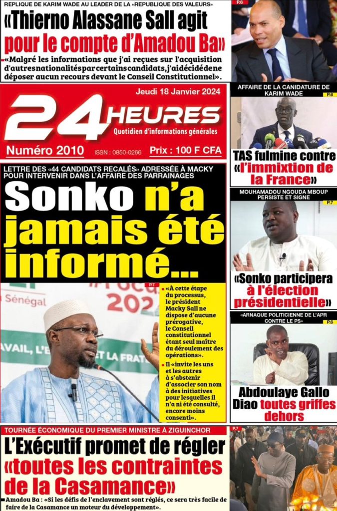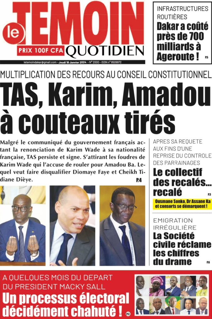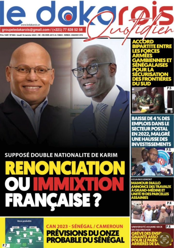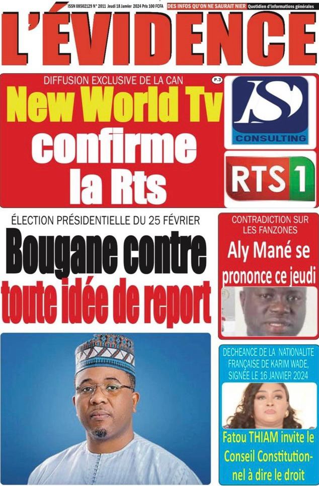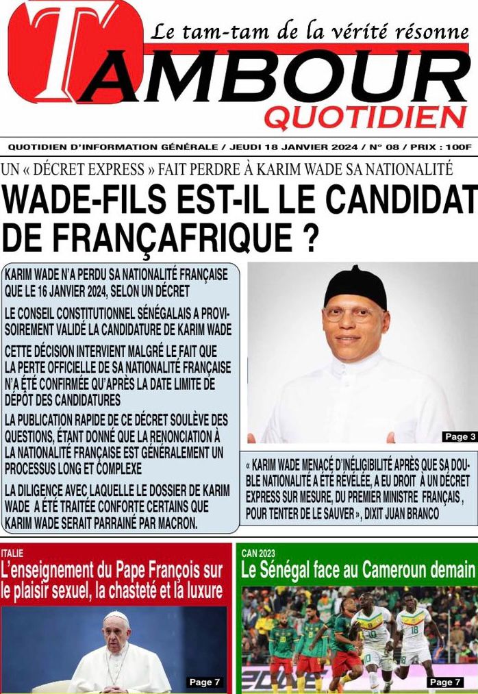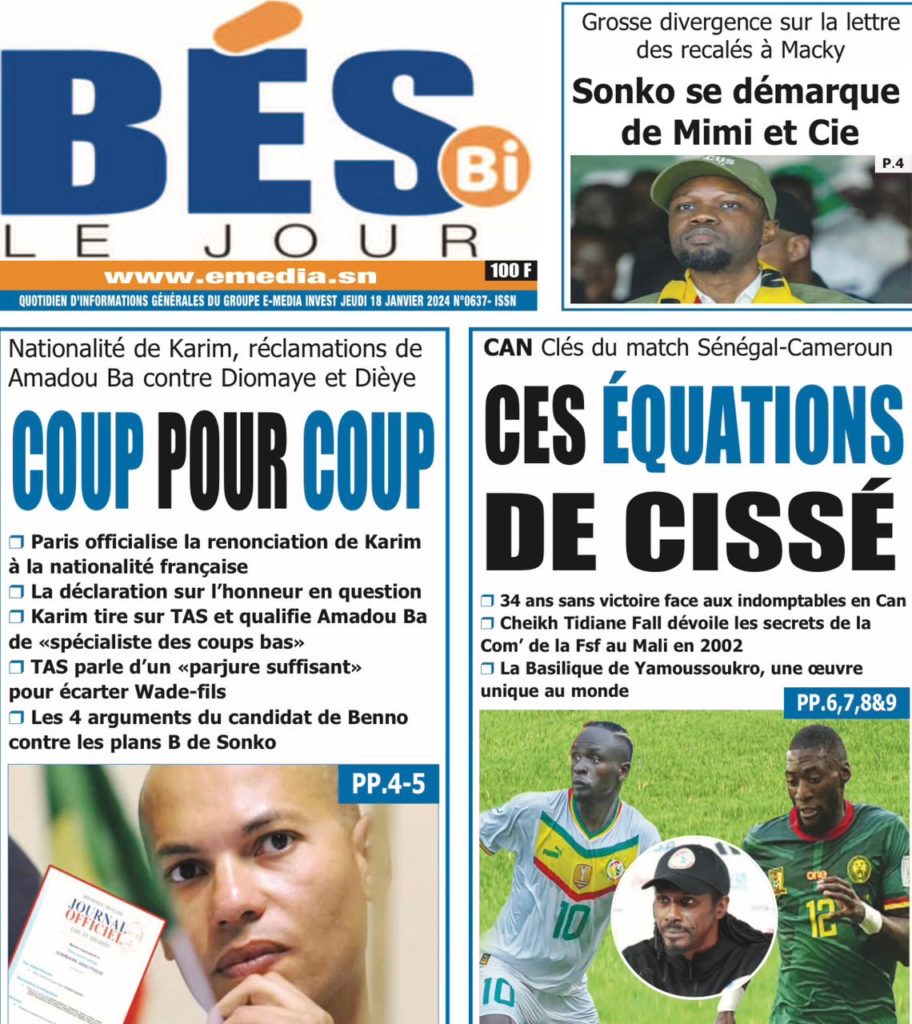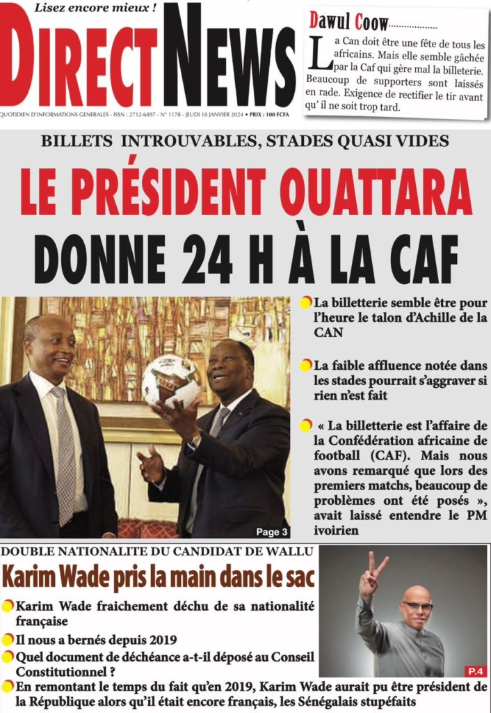 " /> La Une des Quotidiens Nationaux du 18 Janvier 2024 Publié le 18 Jan, 2024 À DÉCOUVRIR Les Unes des quotidiens nationaux du 30 octobre 2025 30 Oct, 2025 La Rédaction de SenCaféActu Partager ->
