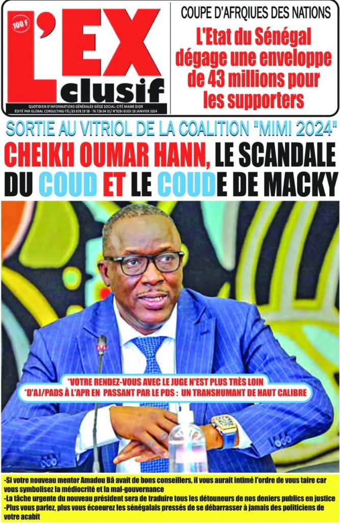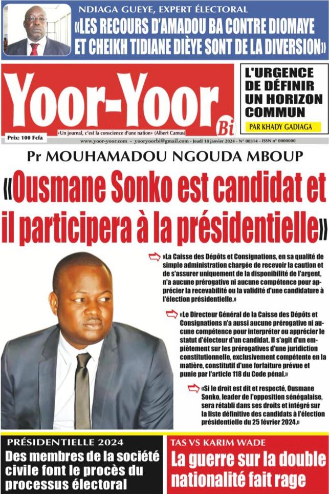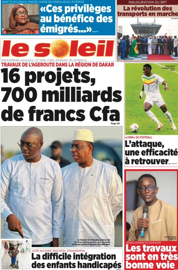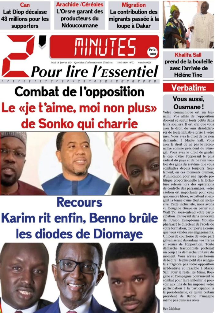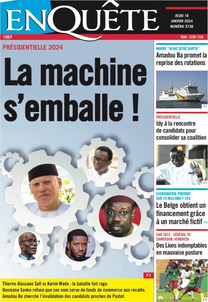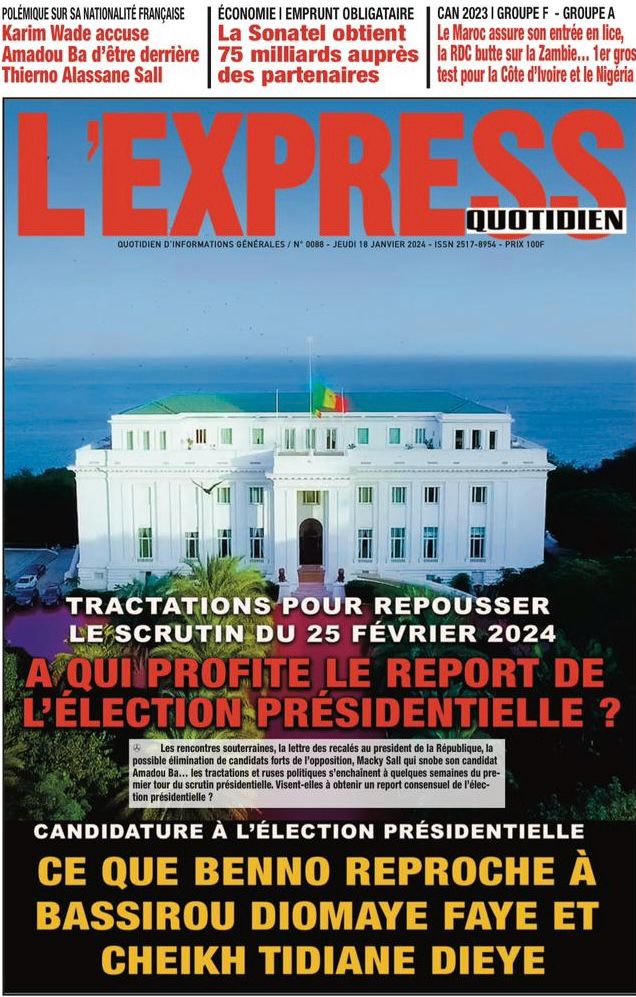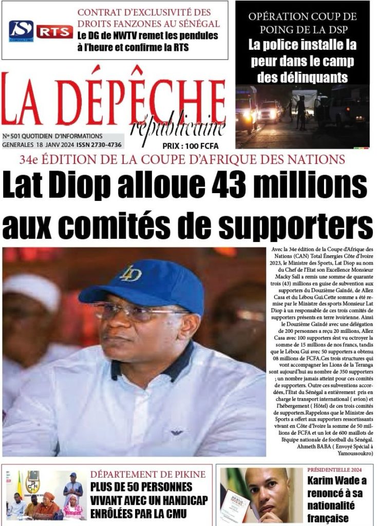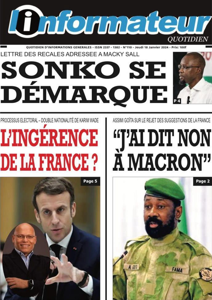 " /> La Une des Quotidiens Nationaux du 18 Janvier 2024 Publié le 18 Jan, 2024 À DÉCOUVRIR Les Unes des quotidiens nationaux du 30 octobre 2025 30 Oct, 2025 La Rédaction de SenCaféActu Partager ->