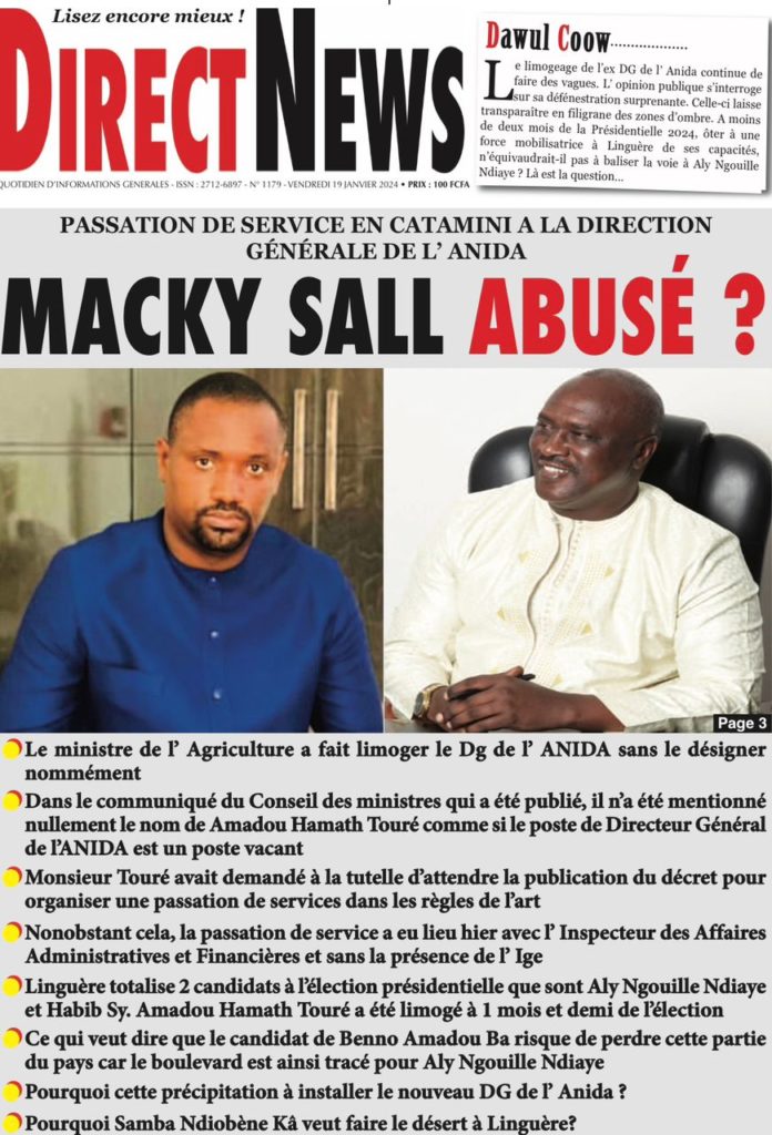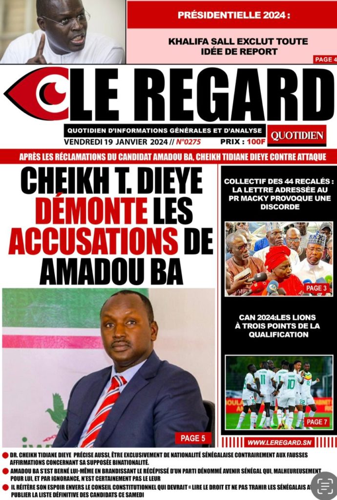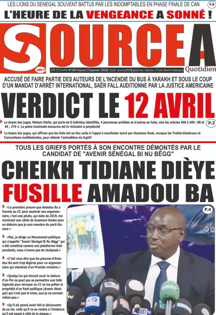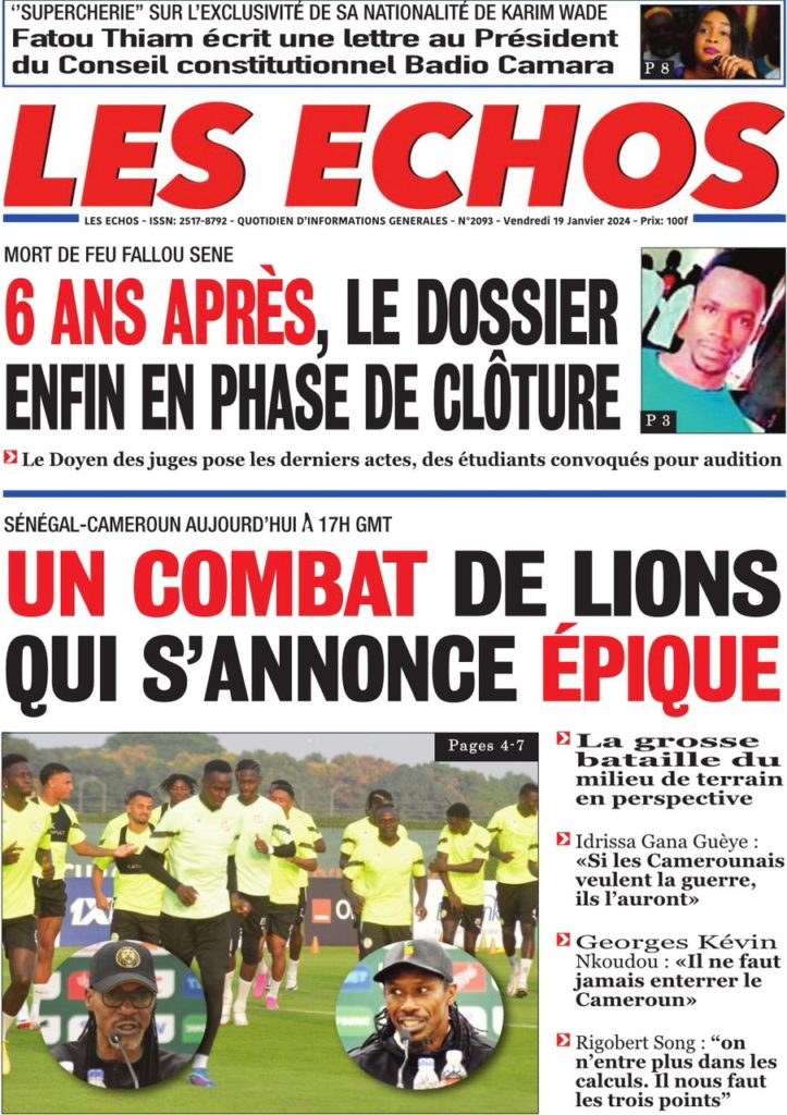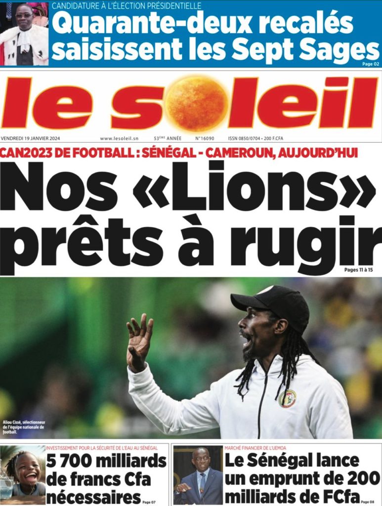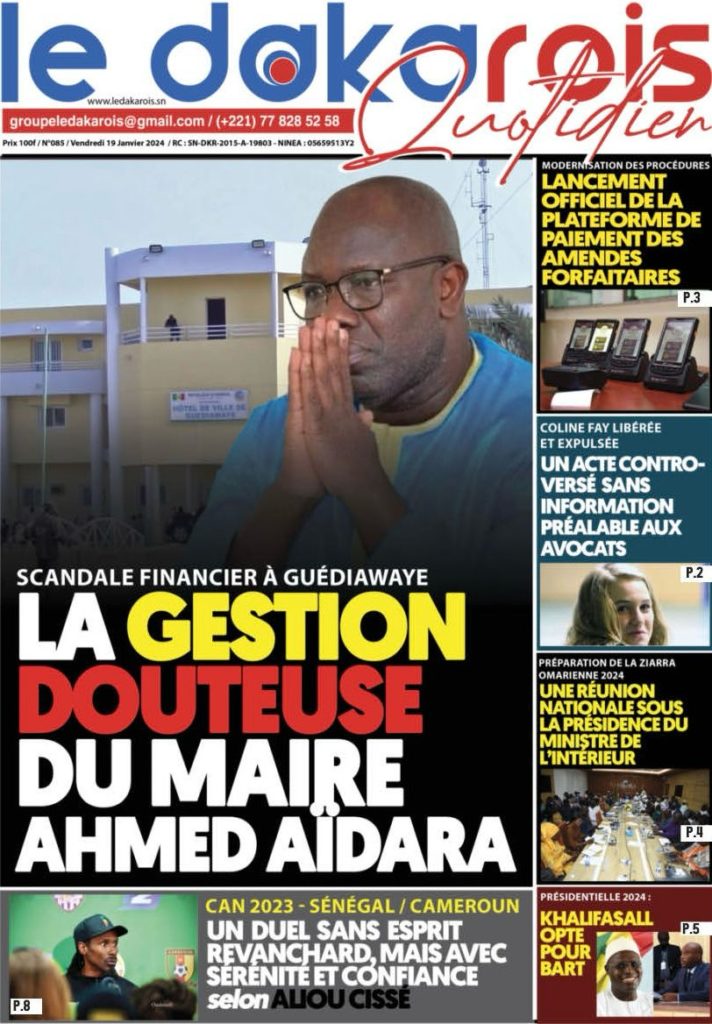 " /> La Une des Quotidiens Nationaux du 19 Janvier 2024 Publié le 19 Jan, 2024 À DÉCOUVRIR Les Unes des quotidiens nationaux du 31 octobre 2025 31 Oct, 2025 La Rédaction de SenCaféActu Partager ->