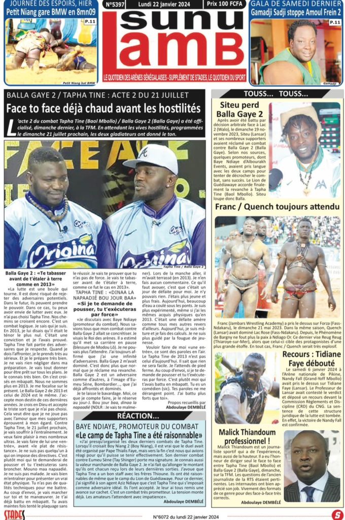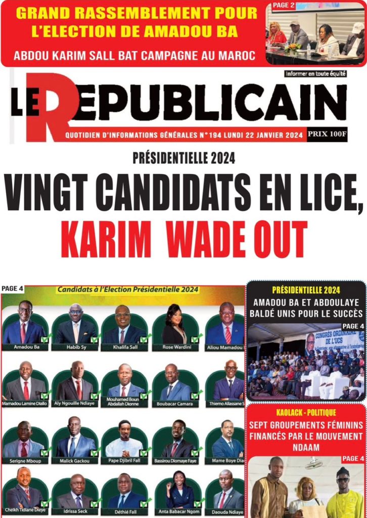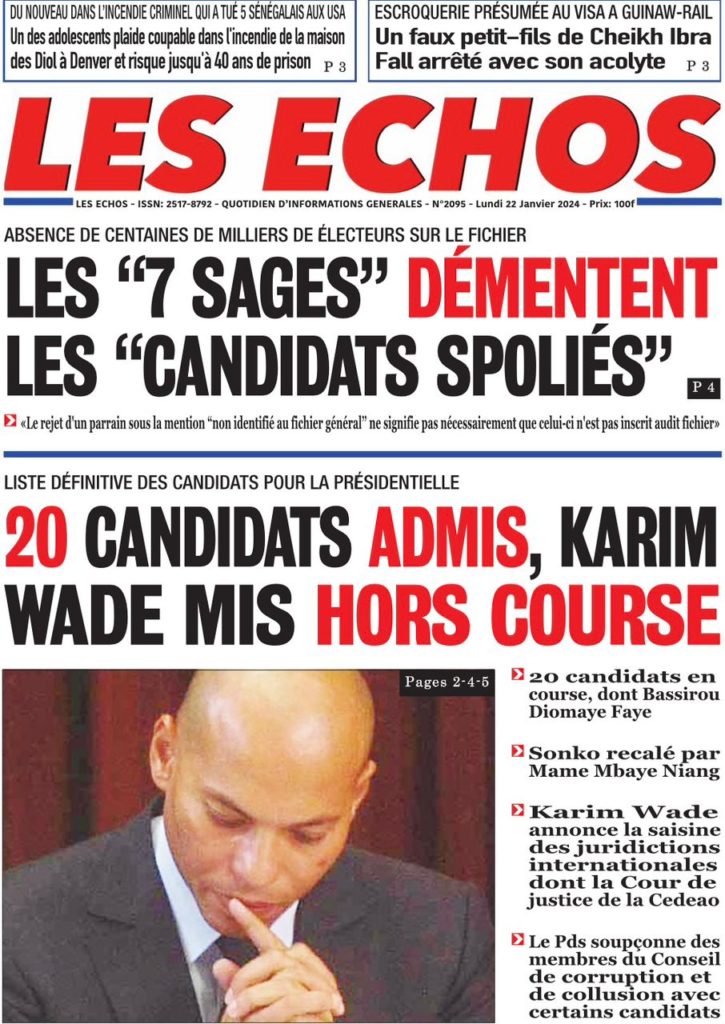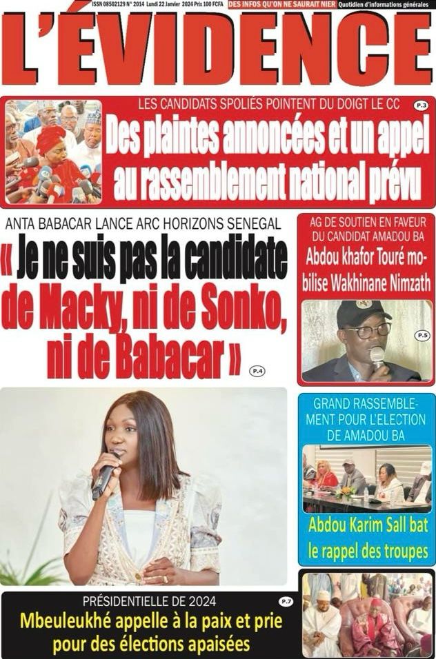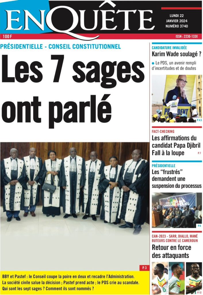 " /> La Une des Quotidiens Nationaux du 22 Janvier 2024 Publié le 22 Jan, 2024 À DÉCOUVRIR Les Unes des quotidiens nationaux du 17 novembre 2025 17 Nov, 2025 La Rédaction de SenCaféActu Partager ->