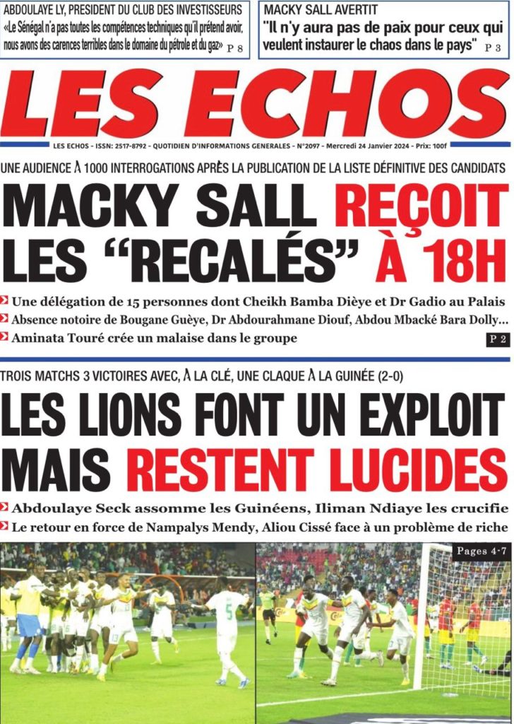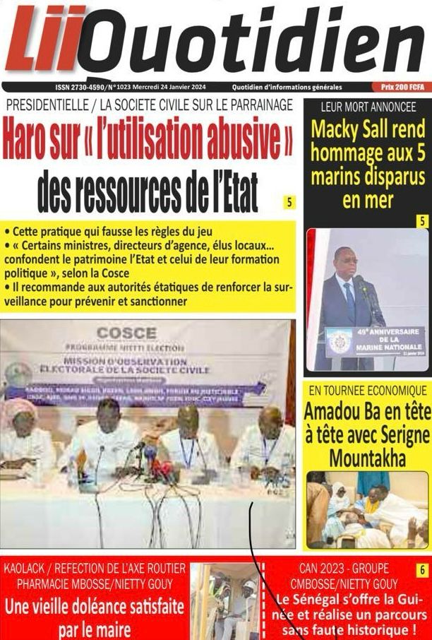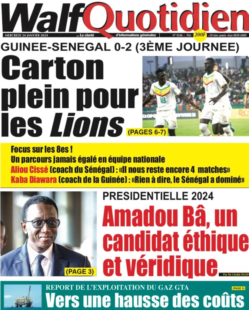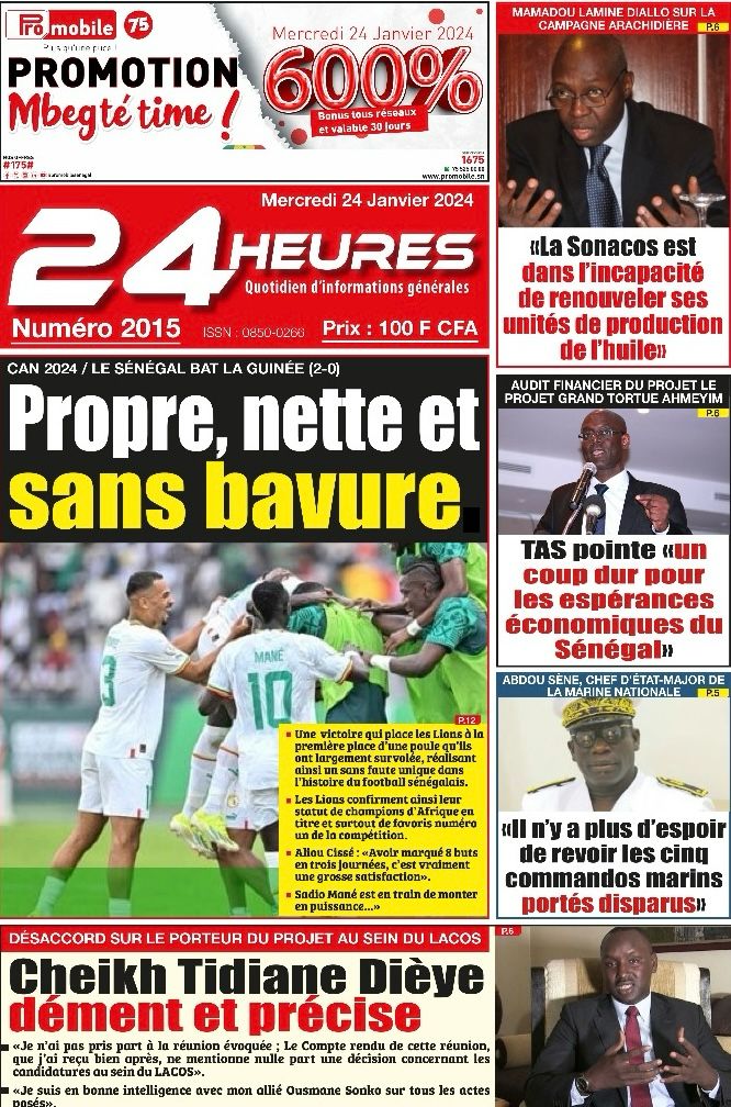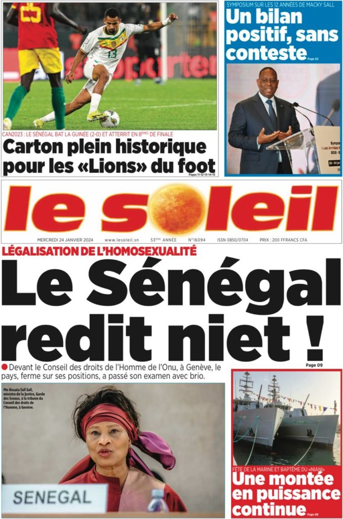" /> La Une des Quotidiens Nationaux du 24 Janvier 2024 Publié le 24 Jan, 2024 À DÉCOUVRIR Les Unes des quotidiens nationaux du 13 novembre 2025 13 Nov, 2025 La Rédaction de SenCaféActu Partager ->