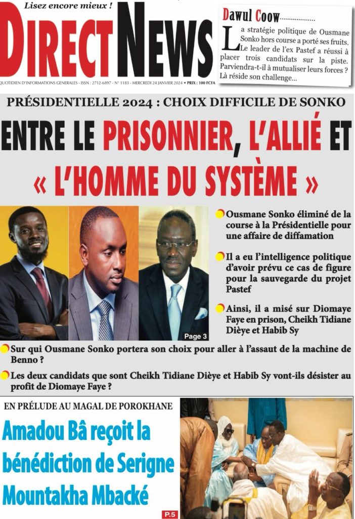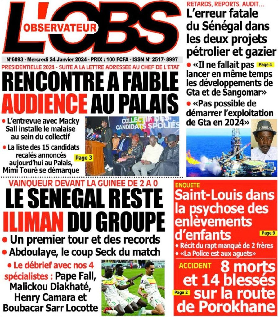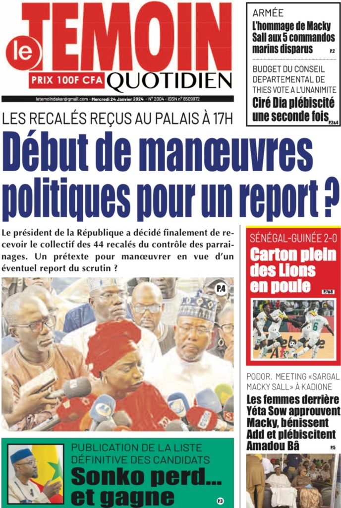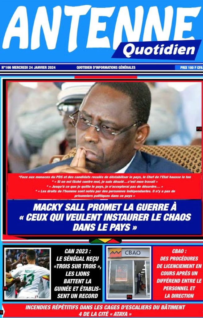 " /> La Une des Quotidiens Nationaux du 24 Janvier 2024 Publié le 24 Jan, 2024 À DÉCOUVRIR Les Unes des quotidiens nationaux du 13 novembre 2025 13 Nov, 2025 La Rédaction de SenCaféActu Partager ->
