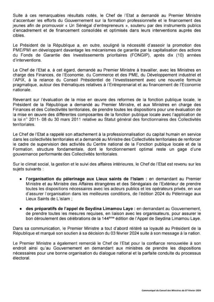 " /> COMMUNIQUE DU CONSEIL DES MINISTRES DU MERCREDI 7 FEVRIER 2024 Publié le 7 Fév, 2024 À DÉCOUVRIR Communiqué du Conseil des ministres du mercredi 12 novembre… 12 Nov, 2025 La Rédaction de SenCaféActu Partager ->