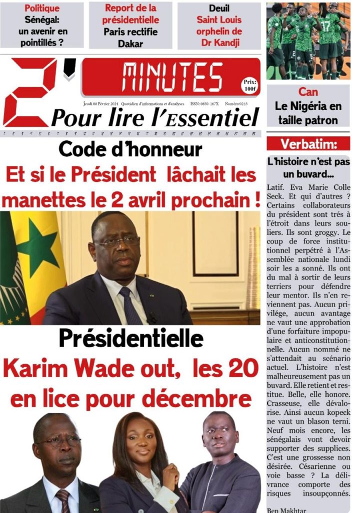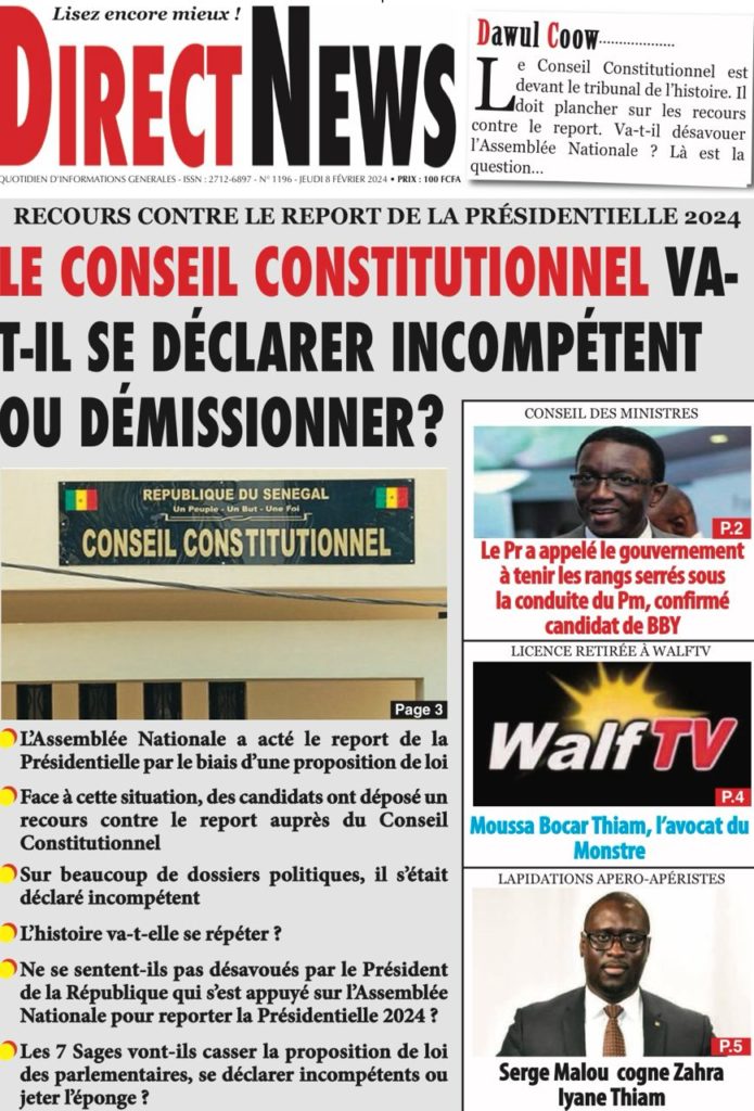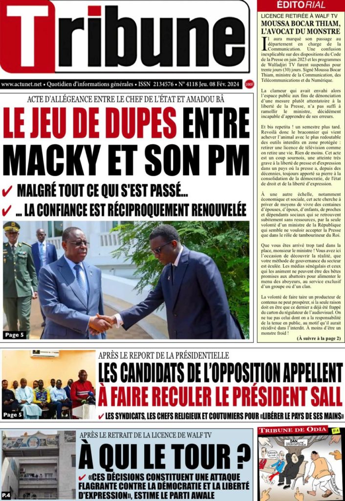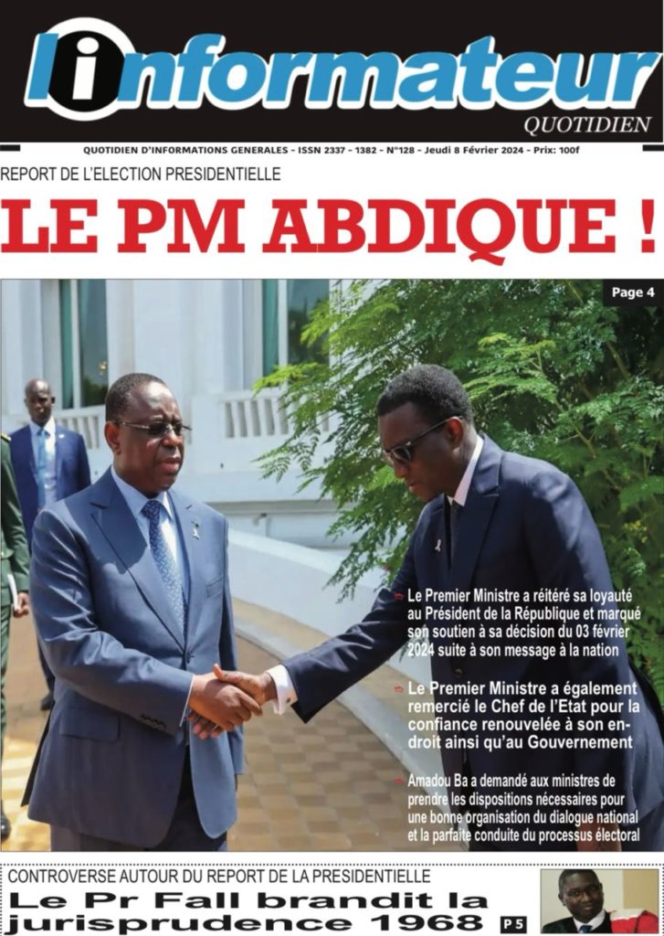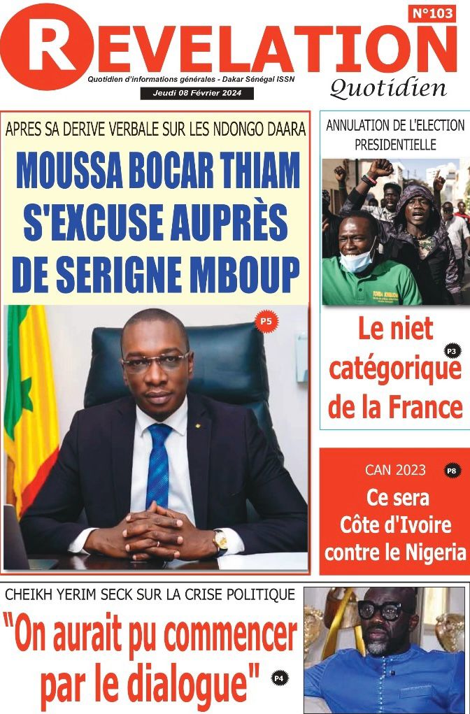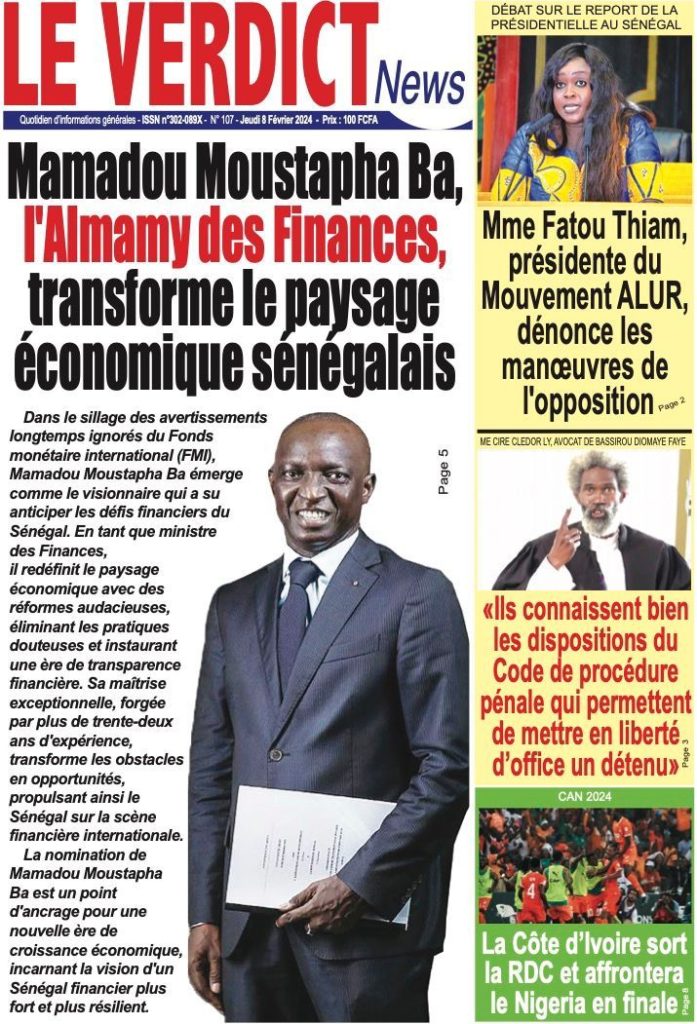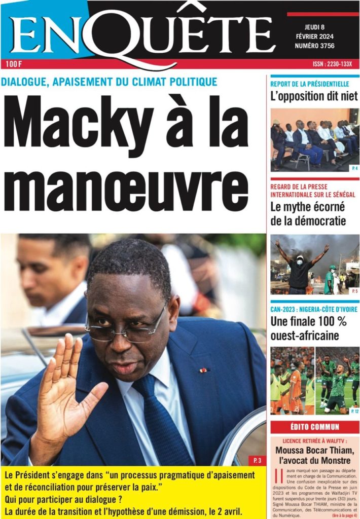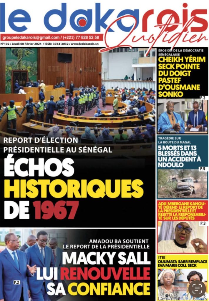 " /> La Une des Quotidiens Nationaux du 8 Février 2024 Publié le 8 Fév, 2024 À DÉCOUVRIR Les Unes des quotidiens nationaux du 13 novembre 2025 13 Nov, 2025 La Rédaction de SenCaféActu Partager ->