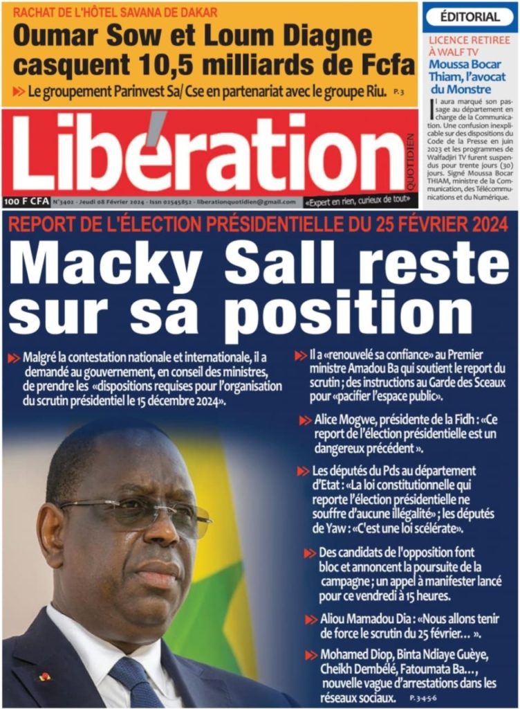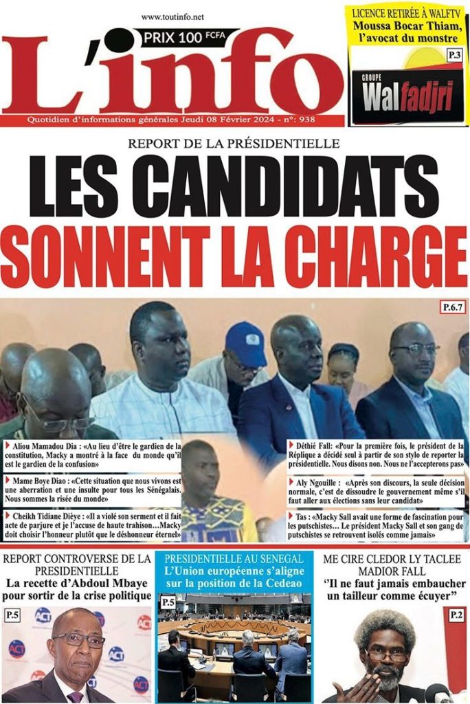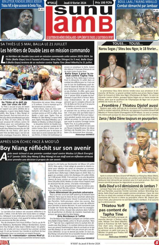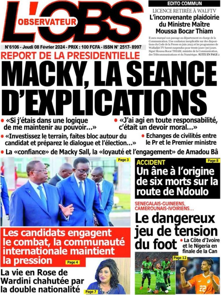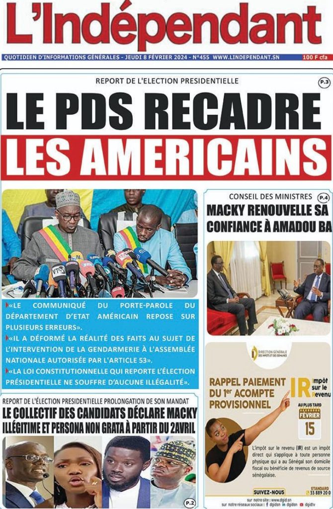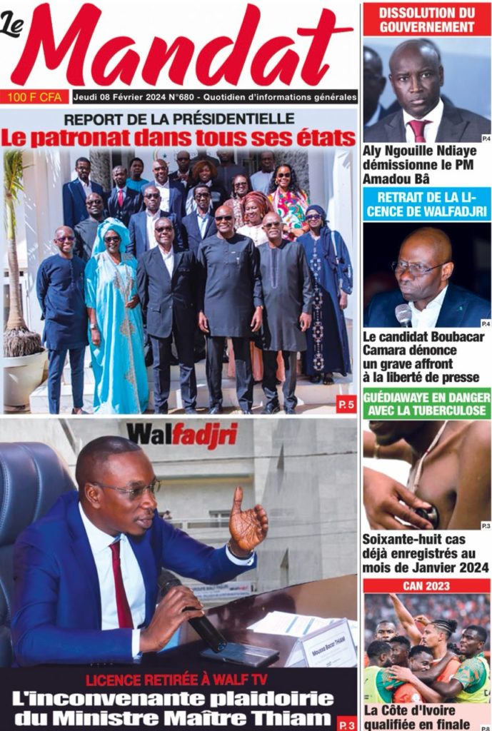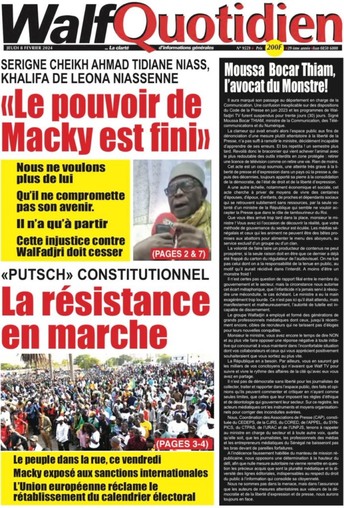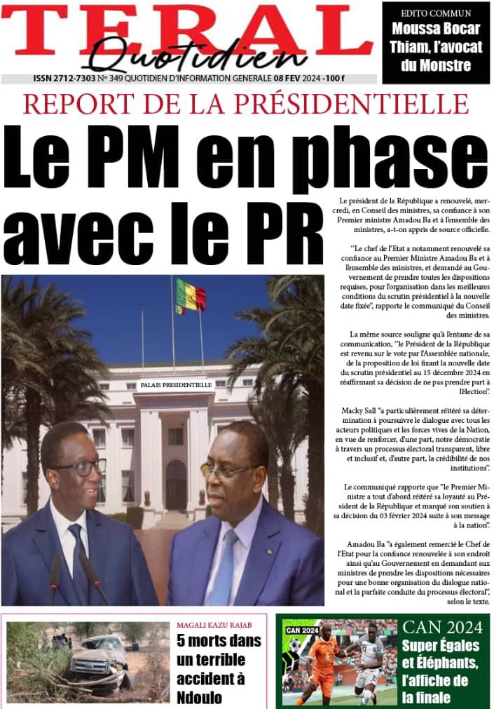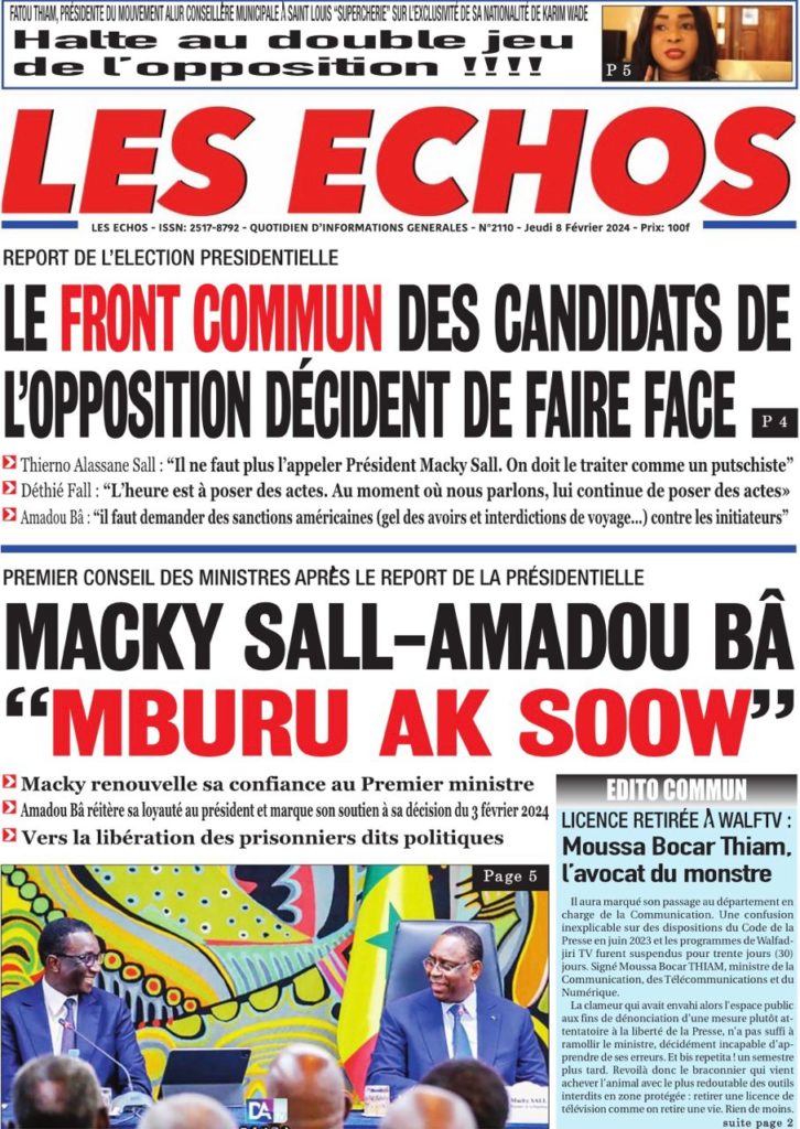 " /> La Une des Quotidiens Nationaux du 8 Février 2024 Publié le 8 Fév, 2024 À DÉCOUVRIR Les Unes des quotidiens nationaux du 13 novembre 2025 13 Nov, 2025 La Rédaction de SenCaféActu Partager ->