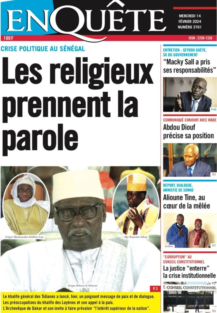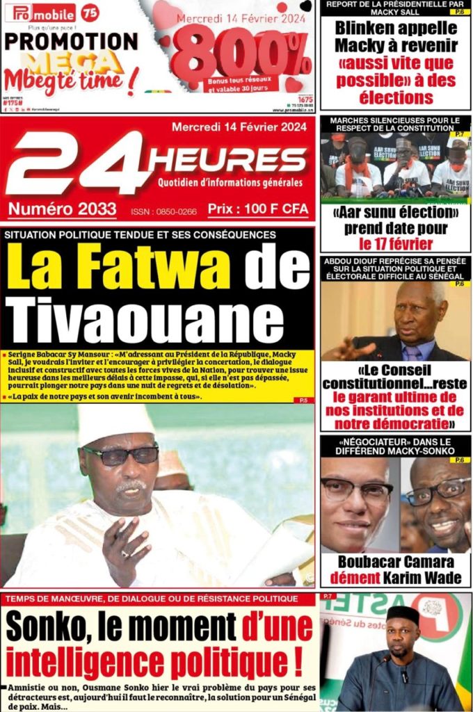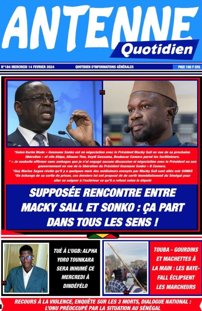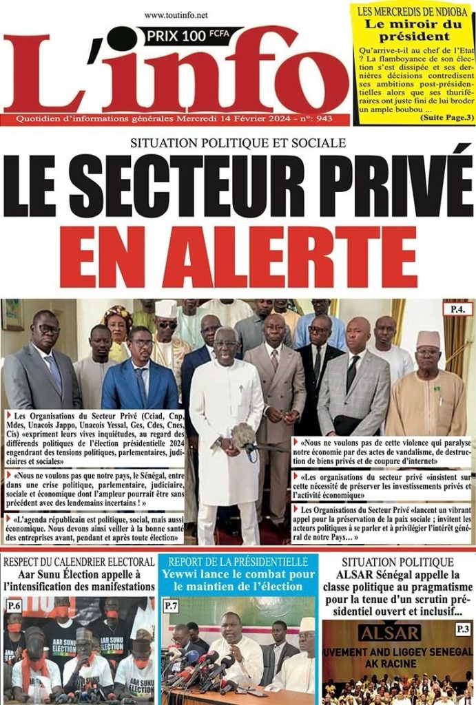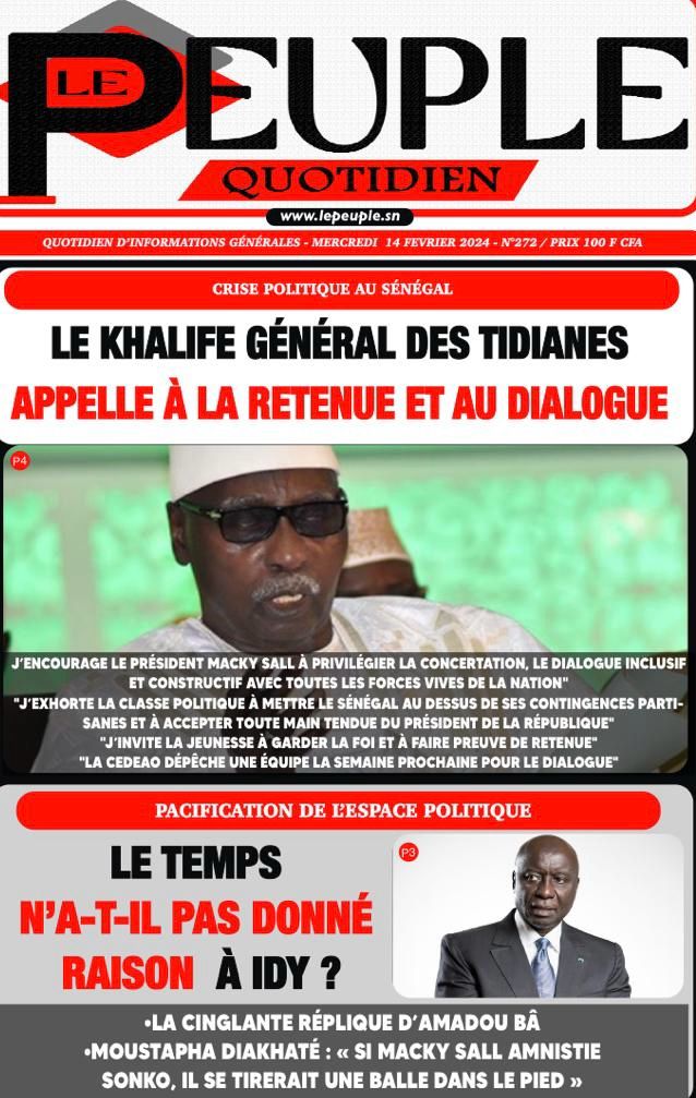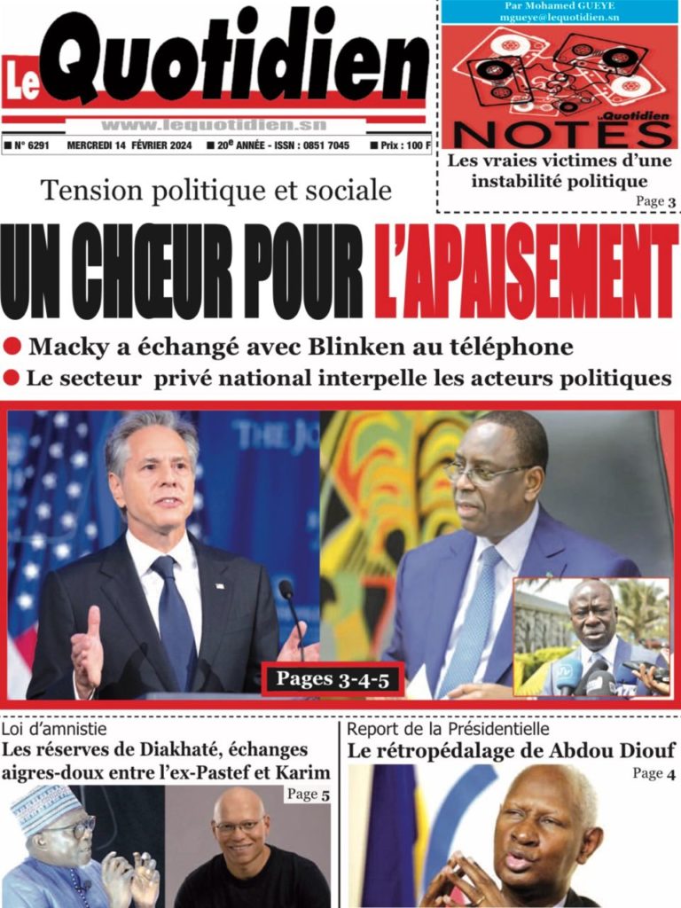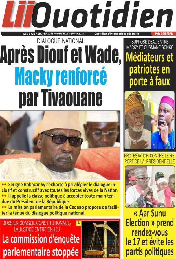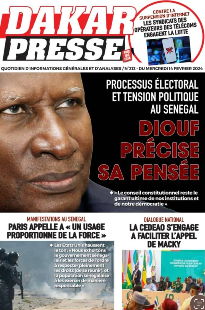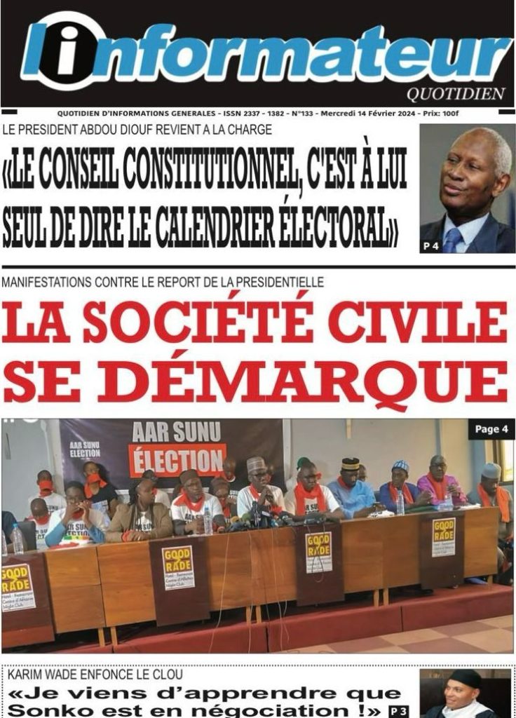 " /> La Une des Quotidiens Nationaux du 14 Février 2024 Publié le 14 Fév, 2024 À DÉCOUVRIR Les Unes des quotidiens nationaux du 07 novembre 2025 7 Nov, 2025 La Rédaction de SenCaféActu Partager ->