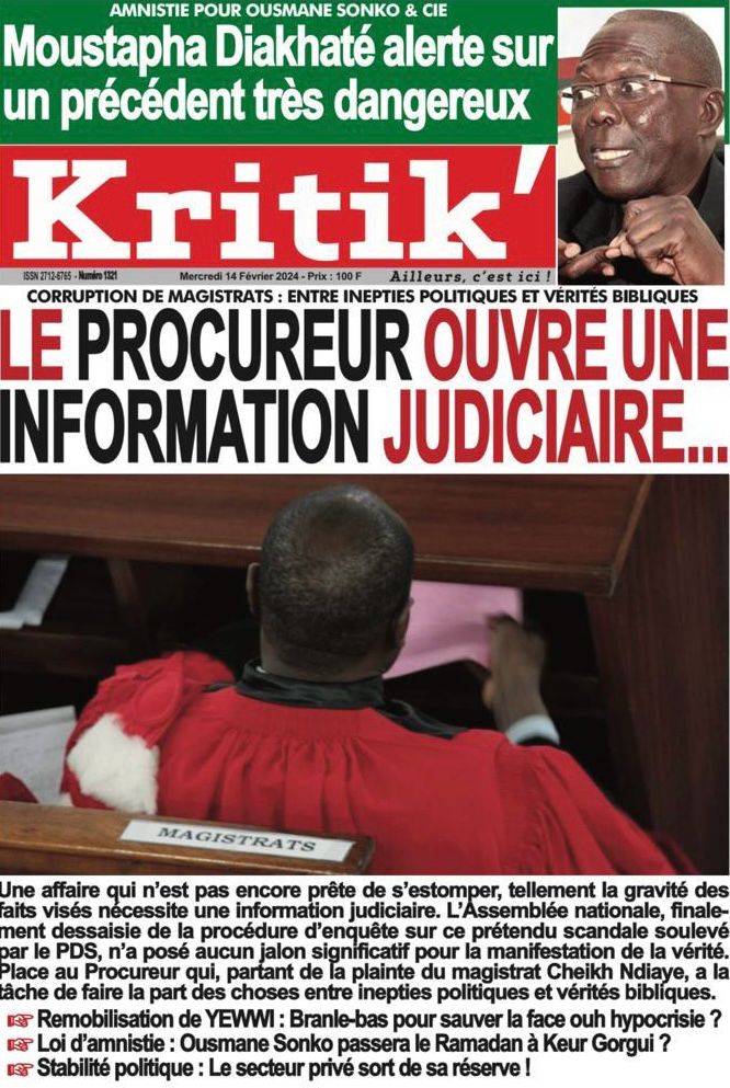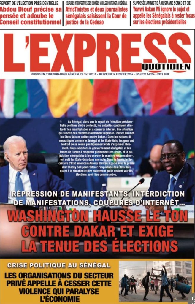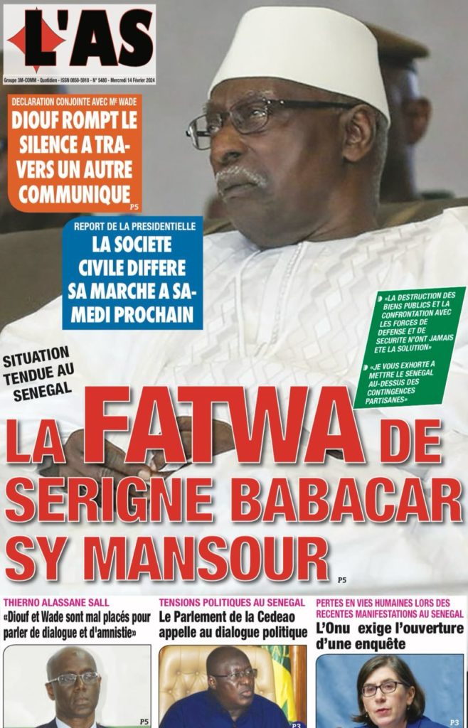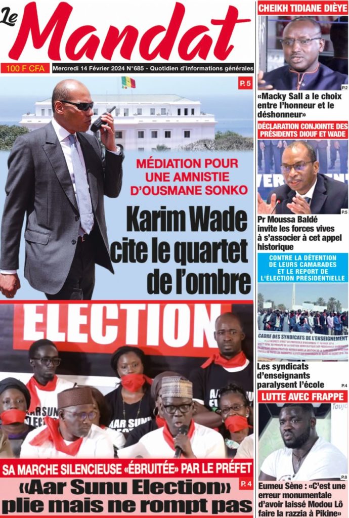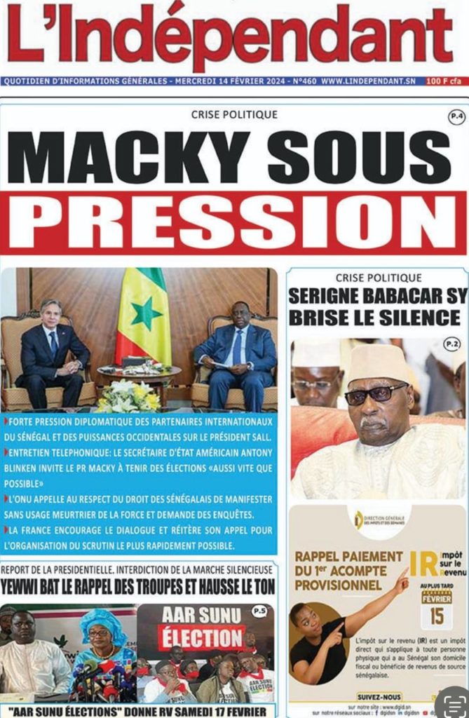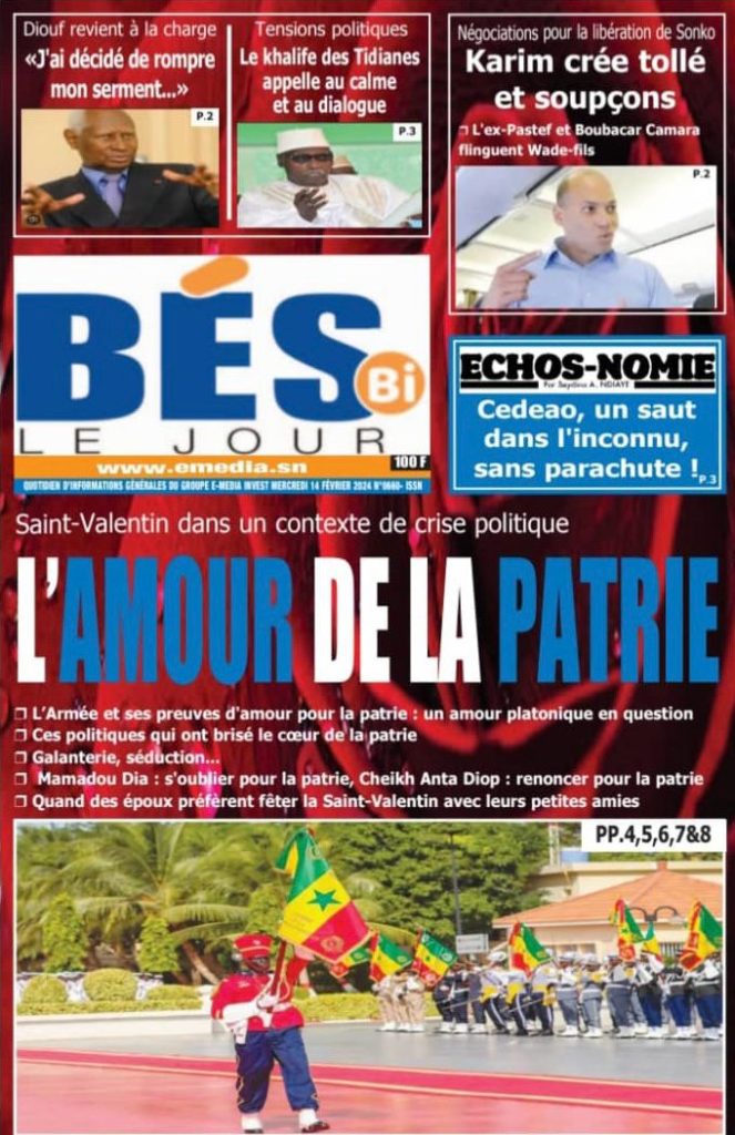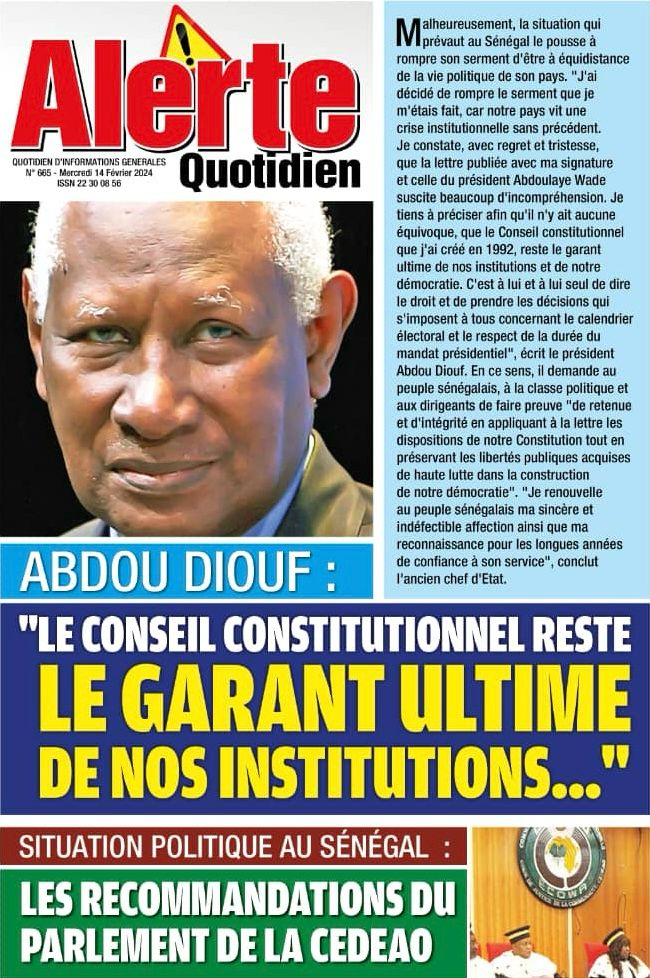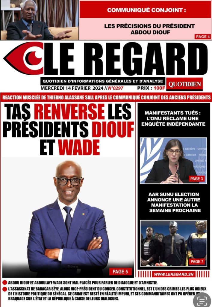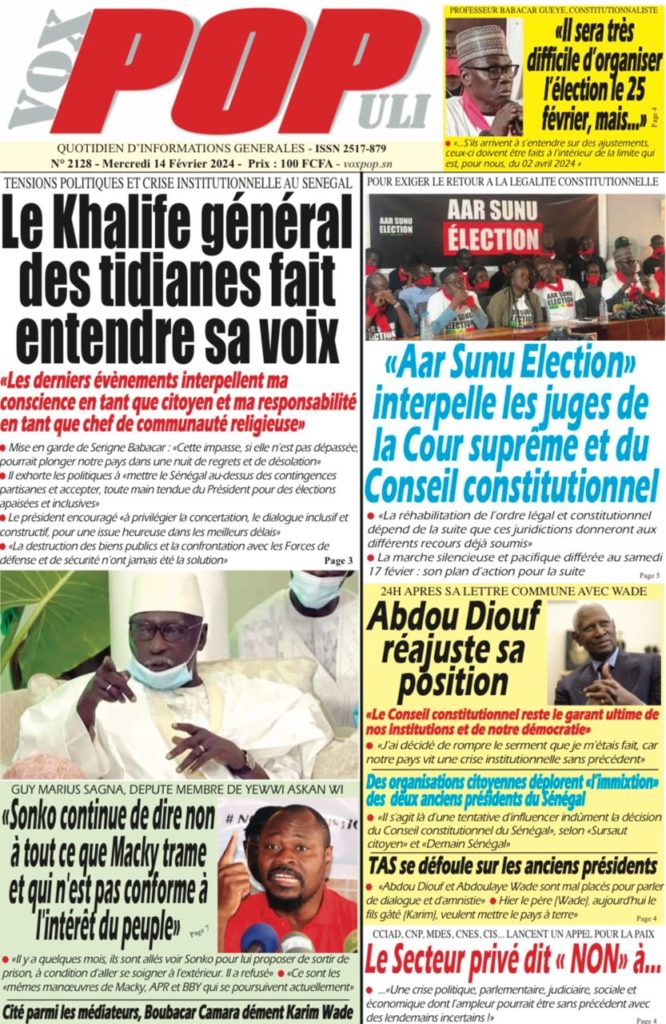 " /> La Une des Quotidiens Nationaux du 14 Février 2024 Publié le 14 Fév, 2024 À DÉCOUVRIR Les Unes des quotidiens nationaux du 07 novembre 2025 7 Nov, 2025 La Rédaction de SenCaféActu Partager ->