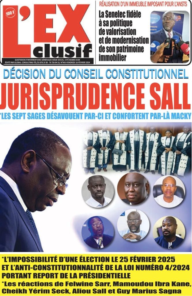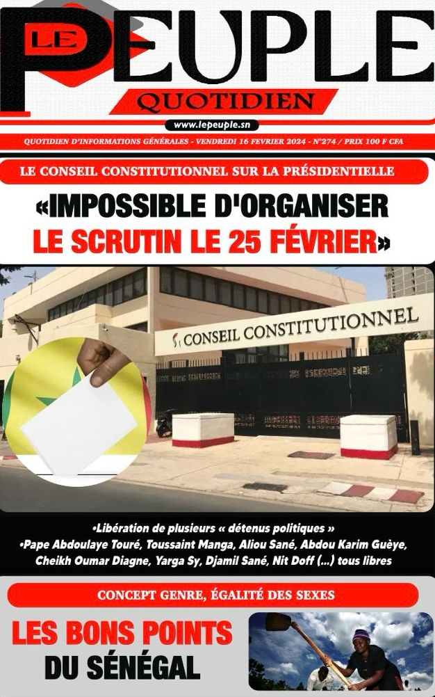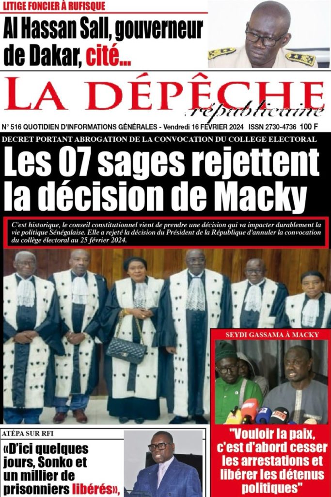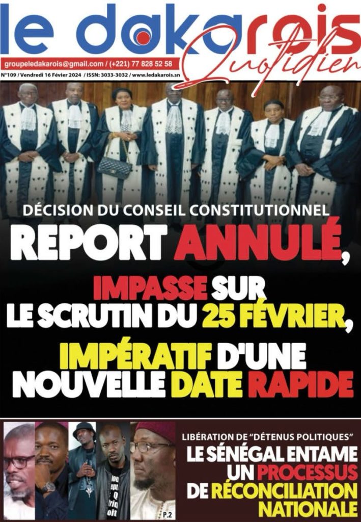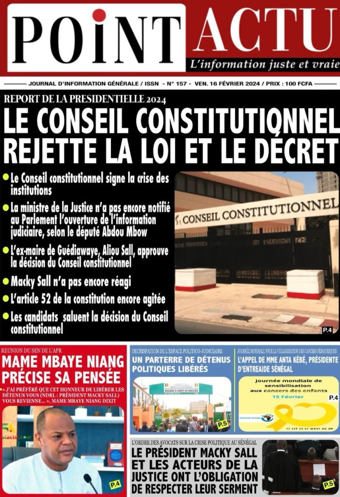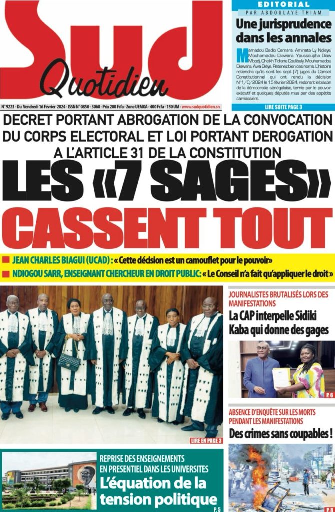" /> La Une des Quotidiens Nationaux du 16 Février 2024 Publié le 16 Fév, 2024 À DÉCOUVRIR Les Unes des quotidiens nationaux du 21 novembre 2025 21 Nov, 2025 La Rédaction de SenCaféActu Partager ->