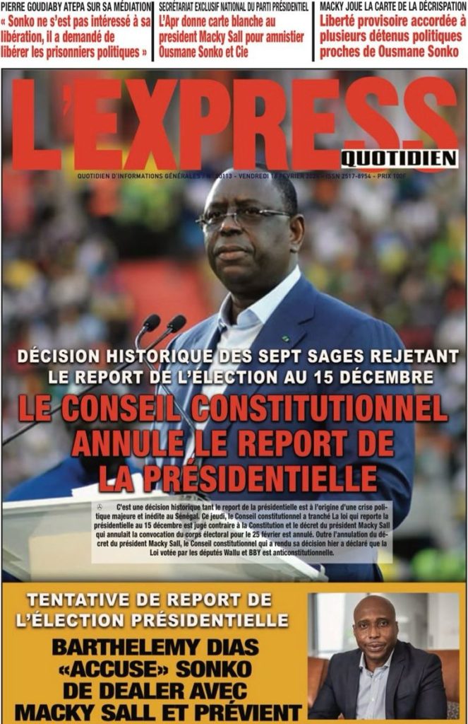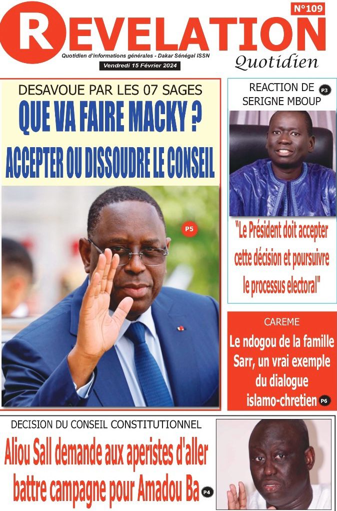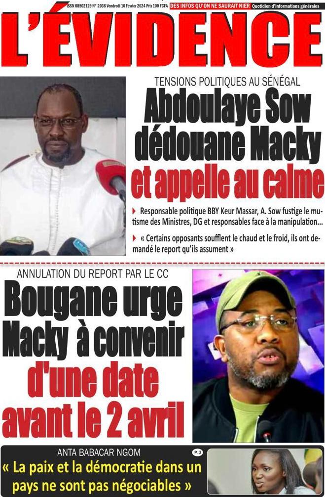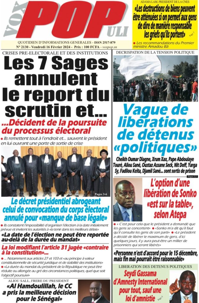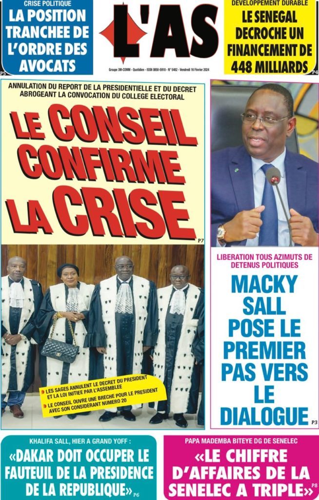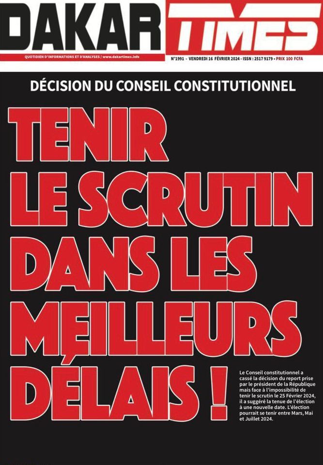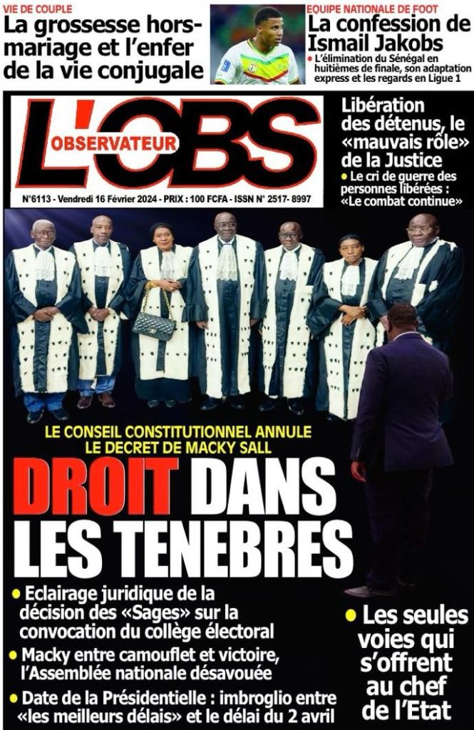 " /> La Une des Quotidiens Nationaux du 16 Février 2024 Publié le 16 Fév, 2024 À DÉCOUVRIR Les Unes des quotidiens nationaux du 21 novembre 2025 21 Nov, 2025 La Rédaction de SenCaféActu Partager ->
