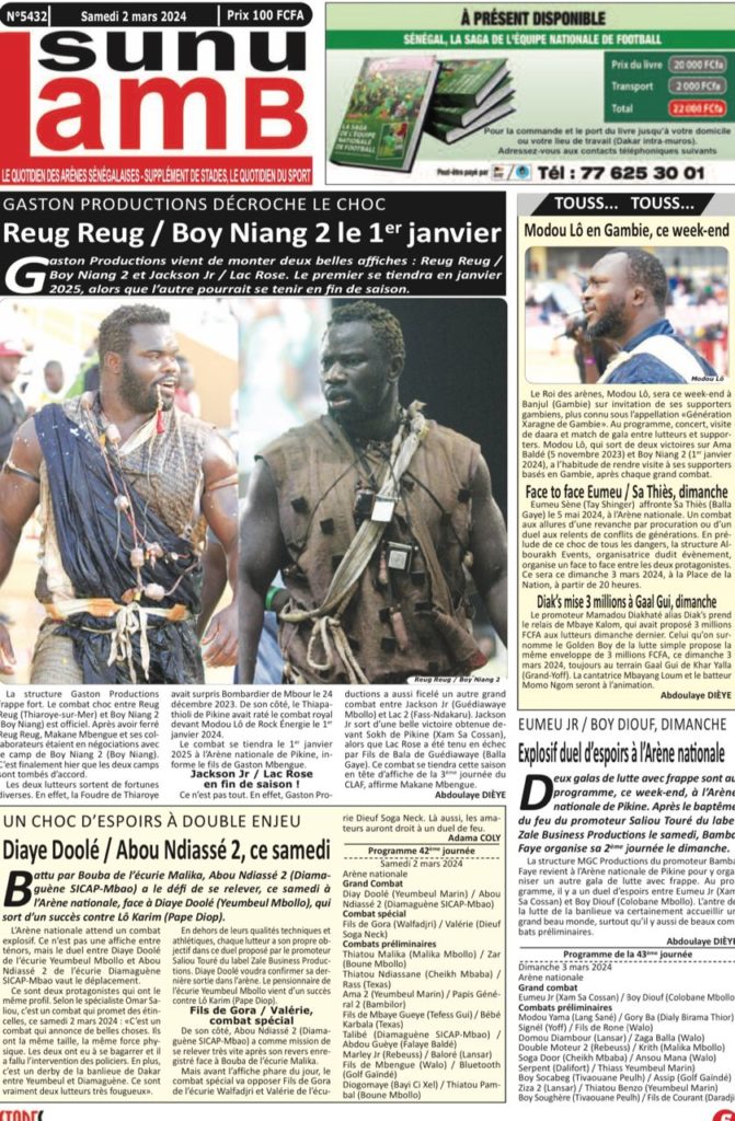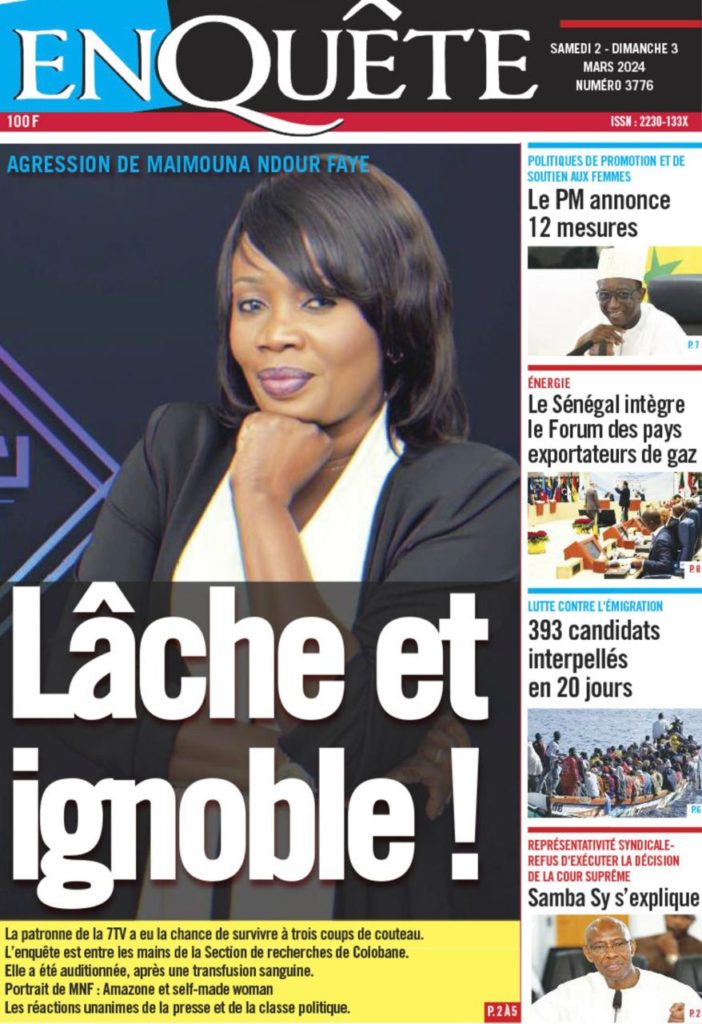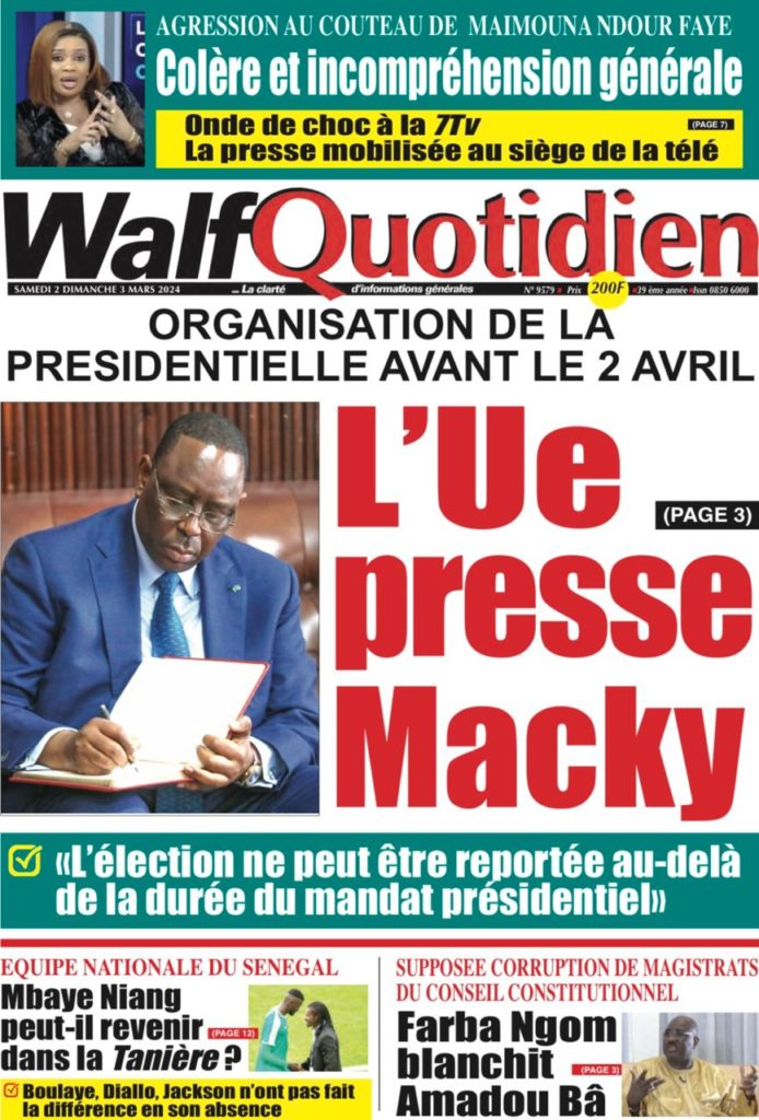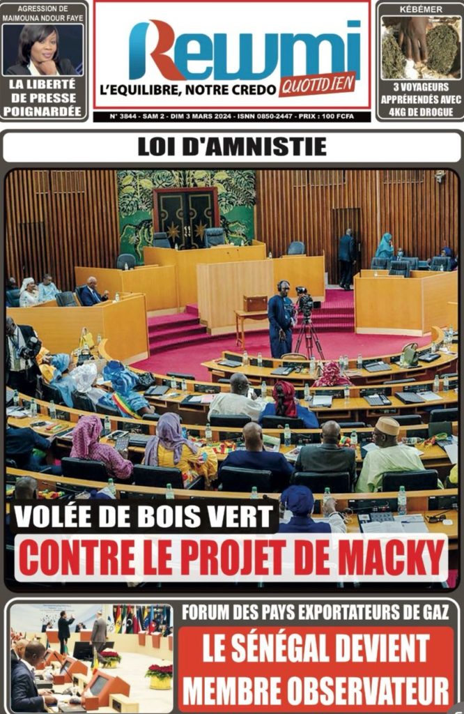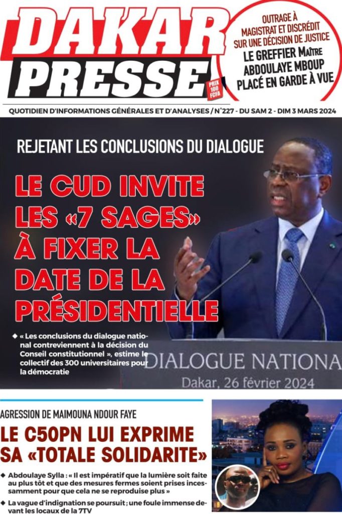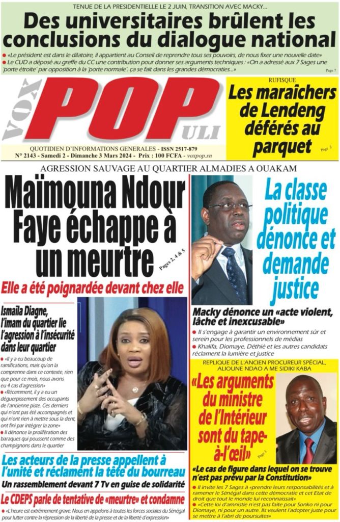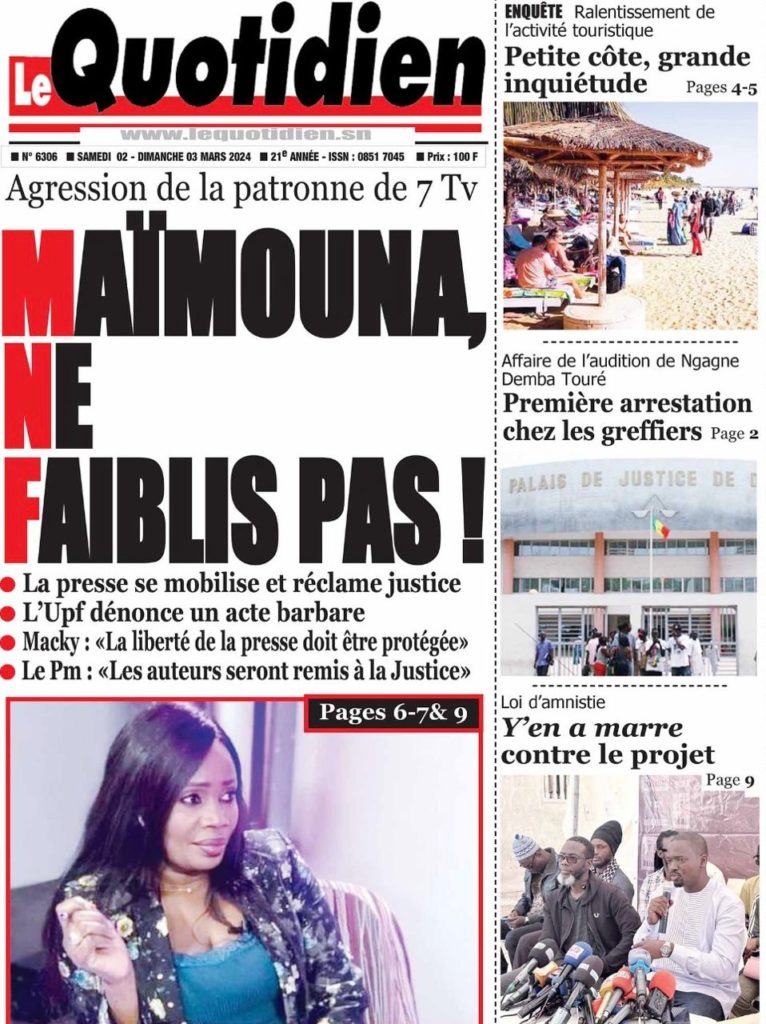 " /> La Une des Quotidiens Nationaux du 2 Mars 2024 Publié le 2 Mar, 2024 À DÉCOUVRIR Les Unes des quotidiens nationaux du 19 novembre 2025 19 Nov, 2025 La Rédaction de SenCaféActu Partager ->
