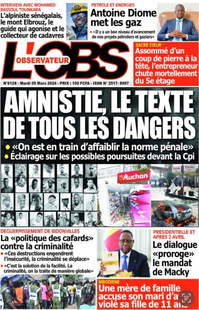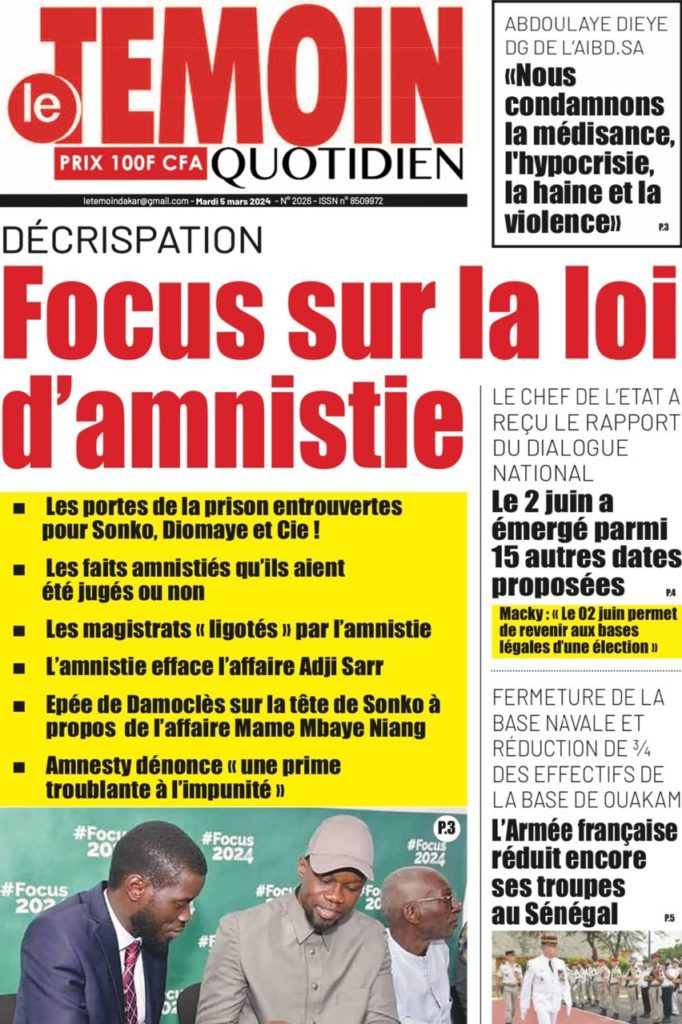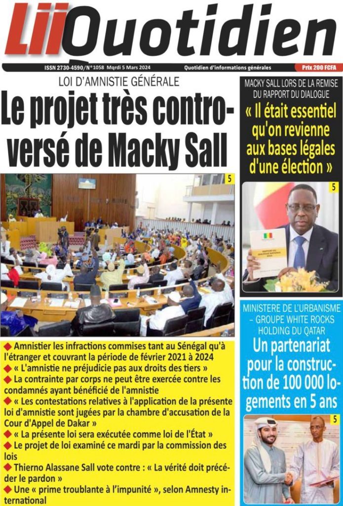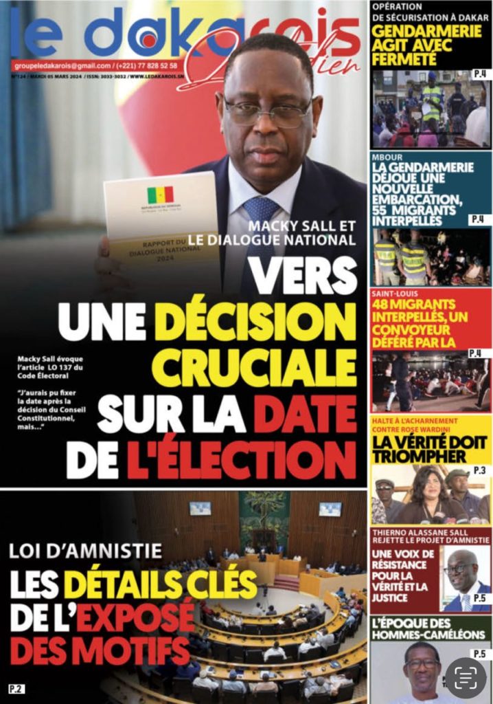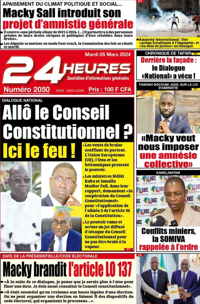 " /> La Une des Quotidiens Nationaux du 5 Mars 2024 Publié le 5 Mar, 2024 À DÉCOUVRIR Les Unes des quotidiens nationaux du 03 novembre 2025 3 Nov, 2025 La Rédaction de SenCaféActu Partager ->