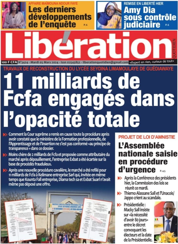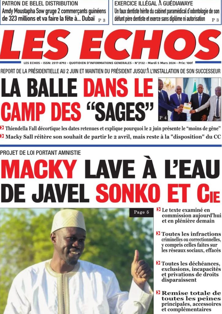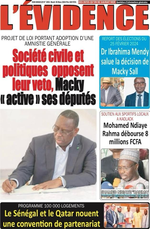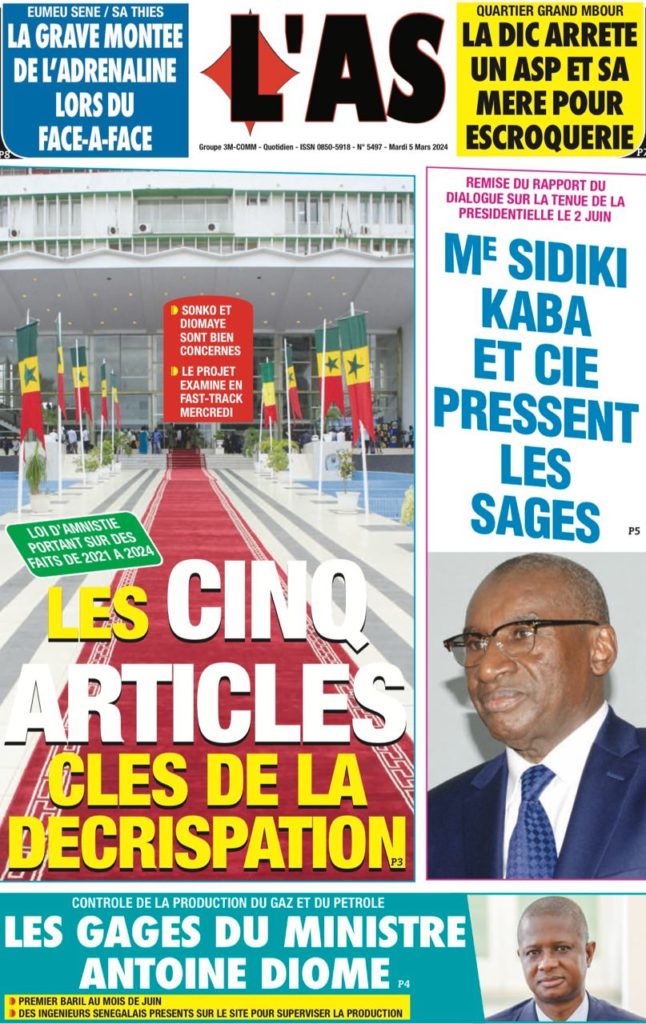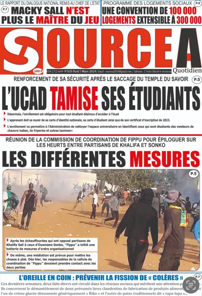 " /> La Une des Quotidiens Nationaux du 5 Mars 2024 Publié le 5 Mar, 2024 À DÉCOUVRIR Les Unes des quotidiens nationaux du 03 novembre 2025 3 Nov, 2025 La Rédaction de SenCaféActu Partager ->