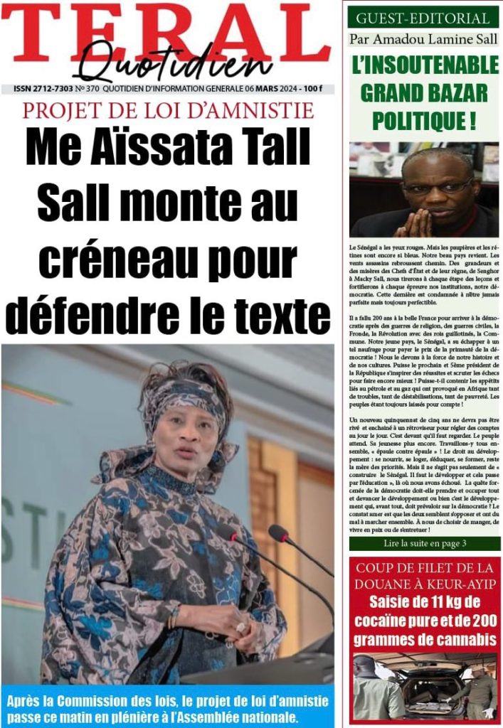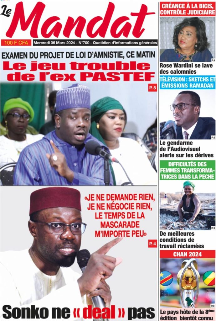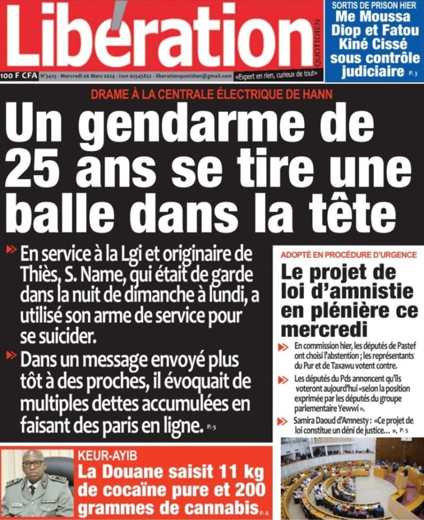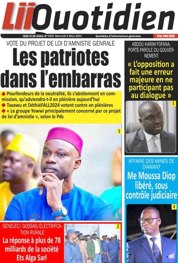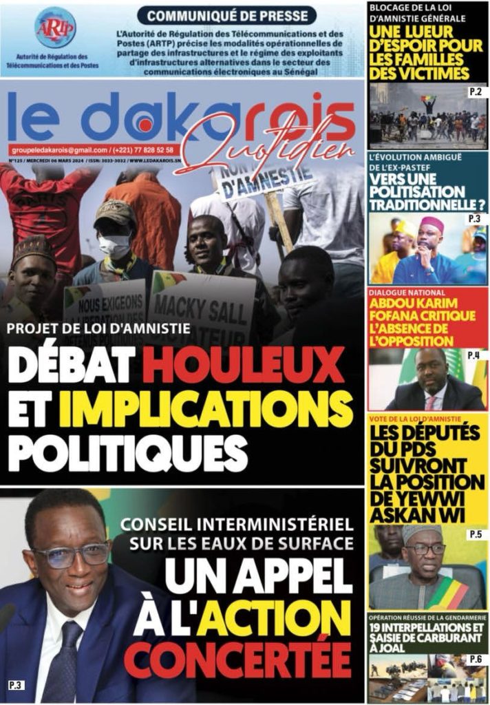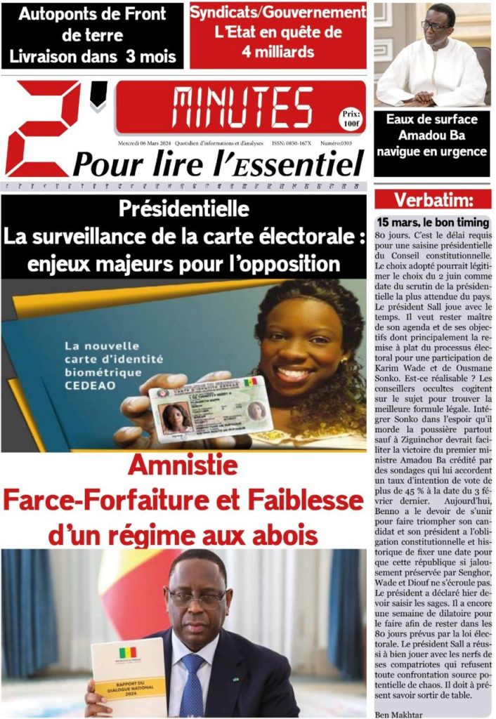 " /> La Une des Quotidiens Nationaux du 6 Mars 2024 Publié le 6 Mar, 2024 À DÉCOUVRIR Les Unes des quotidiens nationaux du 03 novembre 2025 3 Nov, 2025 Partager ->