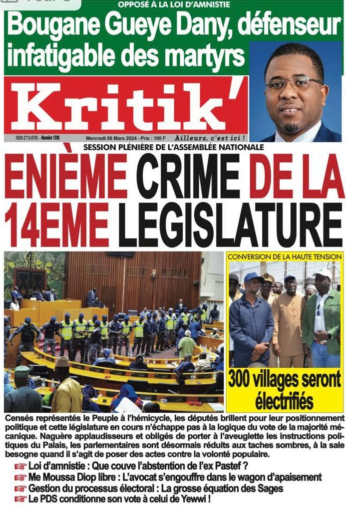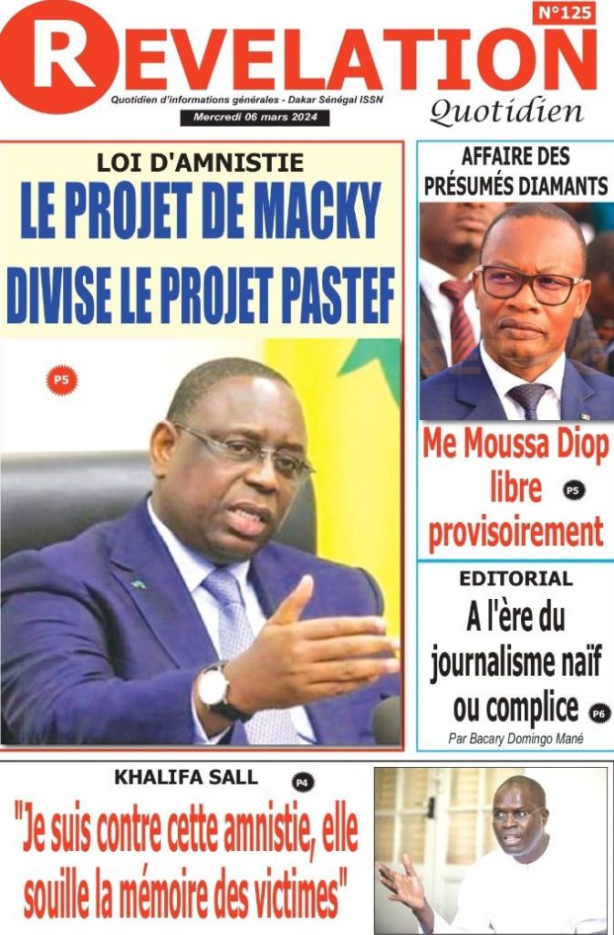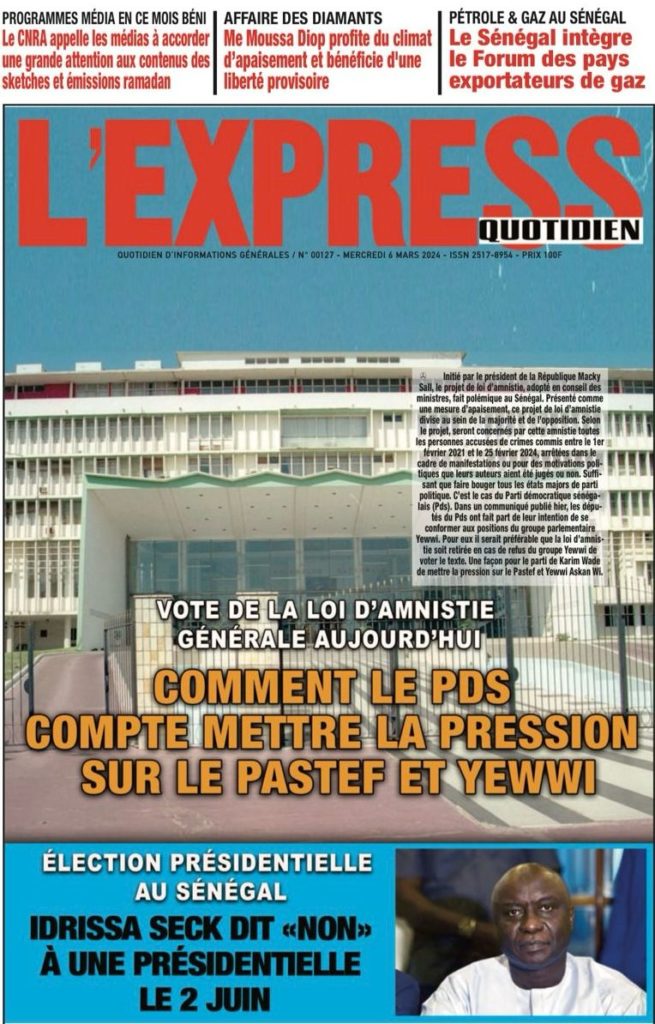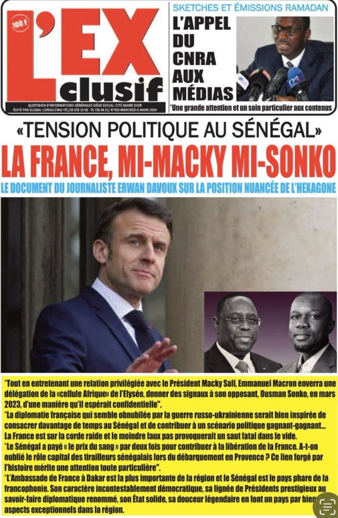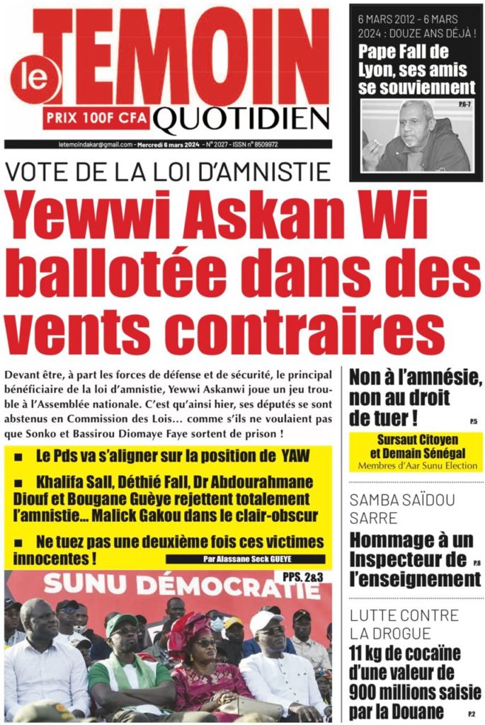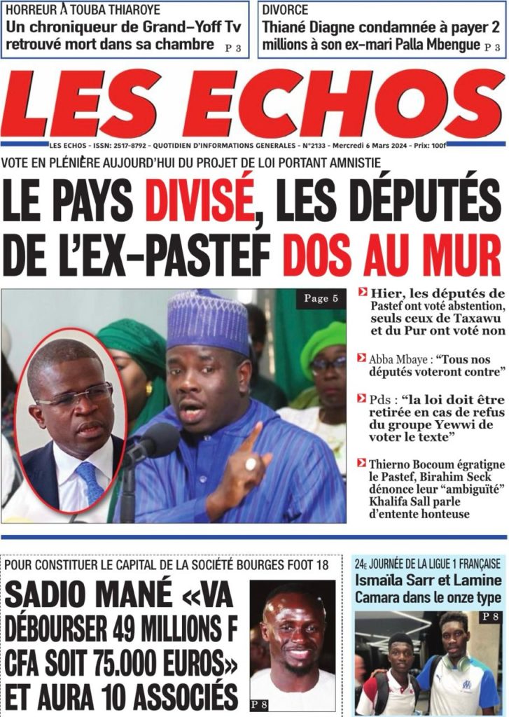 " /> La Une des Quotidiens Nationaux du 6 Mars 2024 Publié le 6 Mar, 2024 À DÉCOUVRIR Les Unes des quotidiens nationaux du 03 novembre 2025 3 Nov, 2025 Partager ->