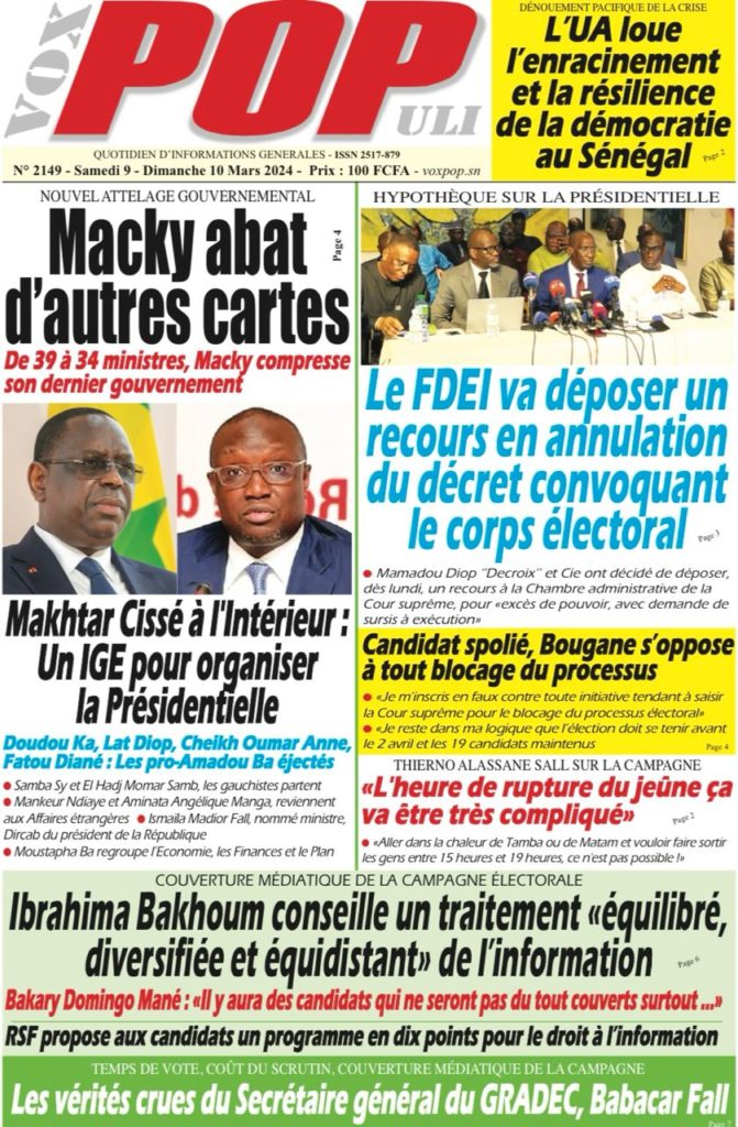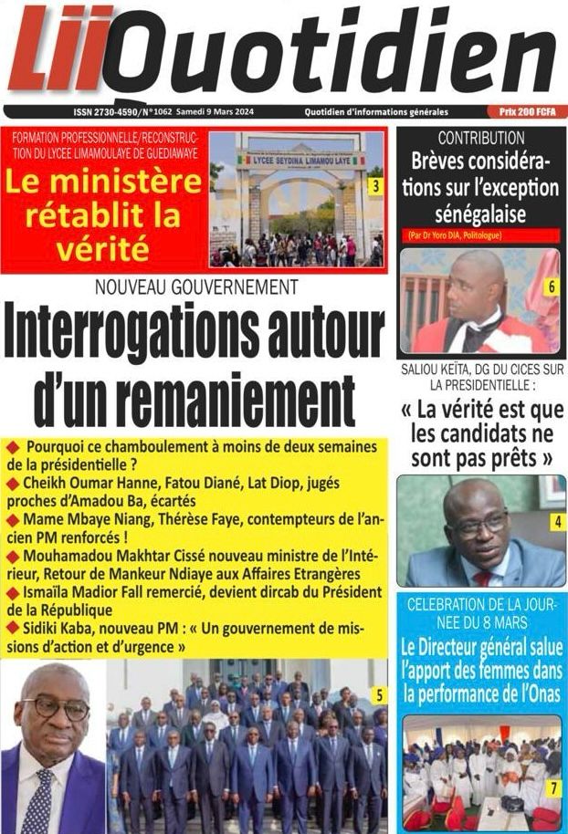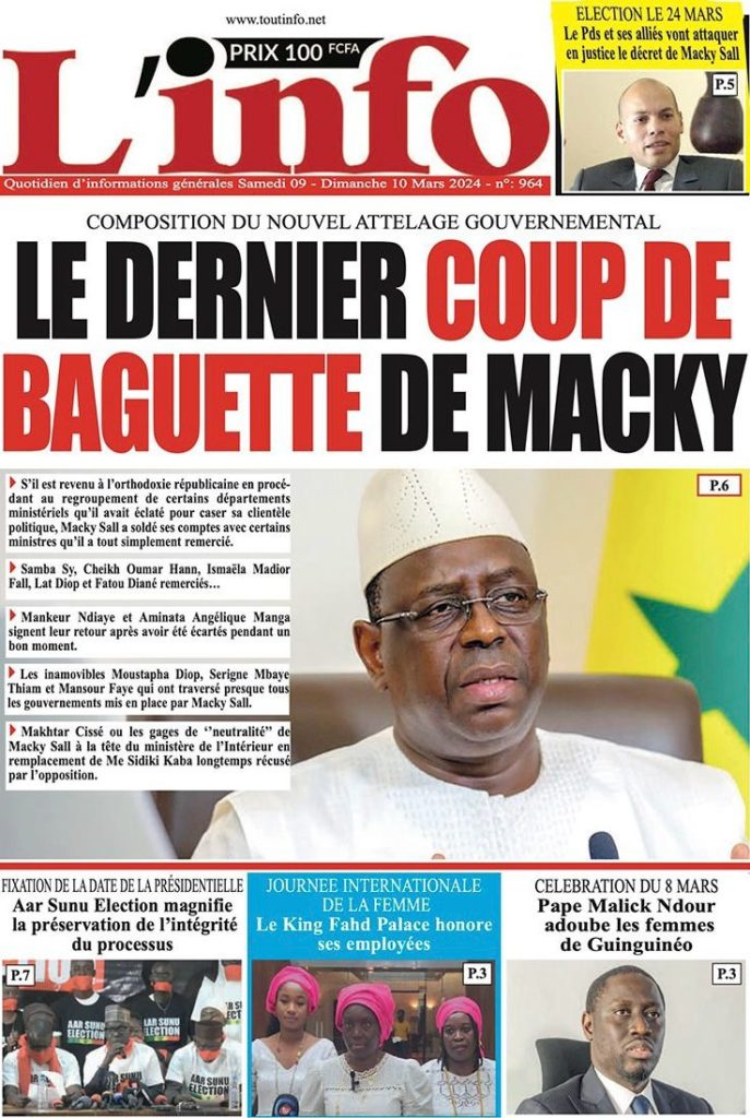 " /> La Une des Quotidiens Nationaux du 9 Mars 2024 Publié le 9 Mar, 2024 À DÉCOUVRIR Les Unes des quotidiens nationaux du 29 octobre 2025 29 Oct, 2025 La Rédaction de SenCaféActu Partager ->