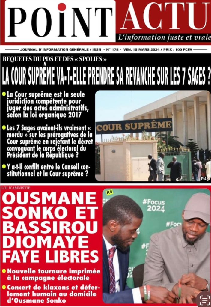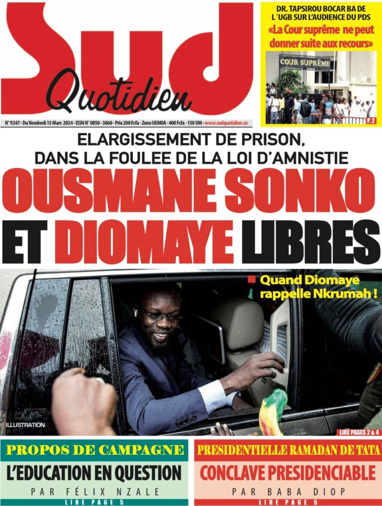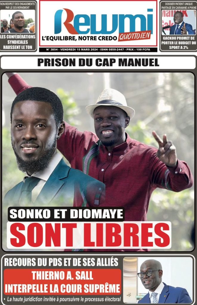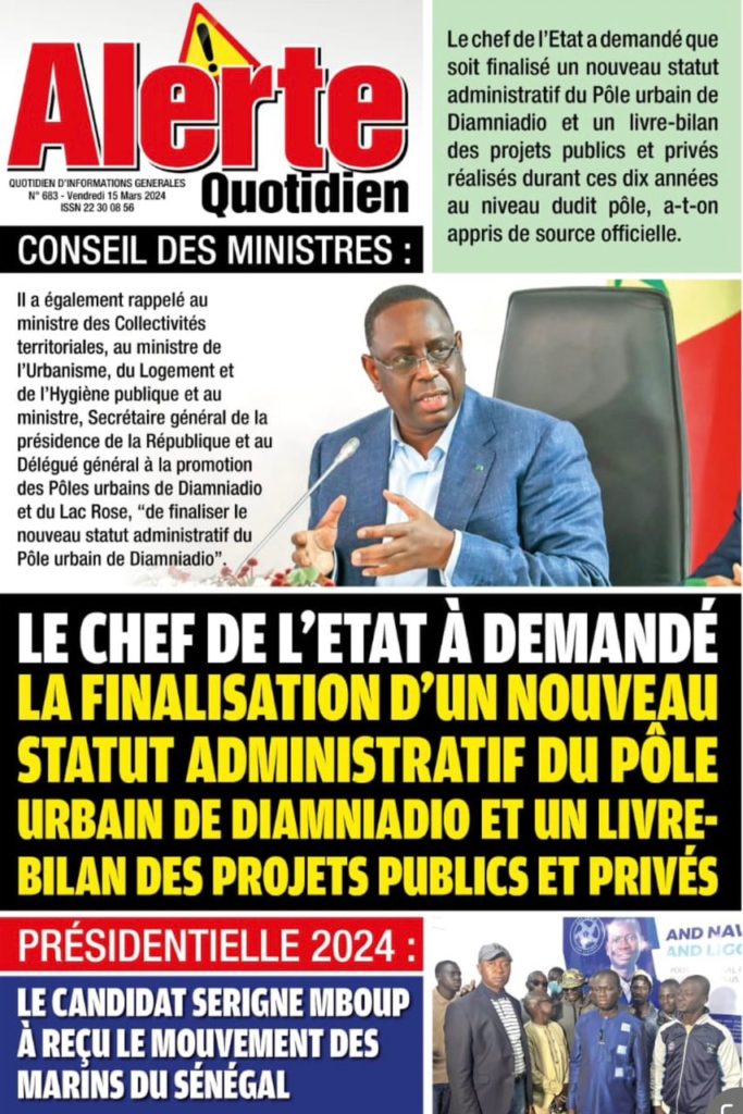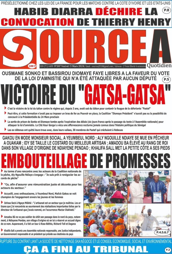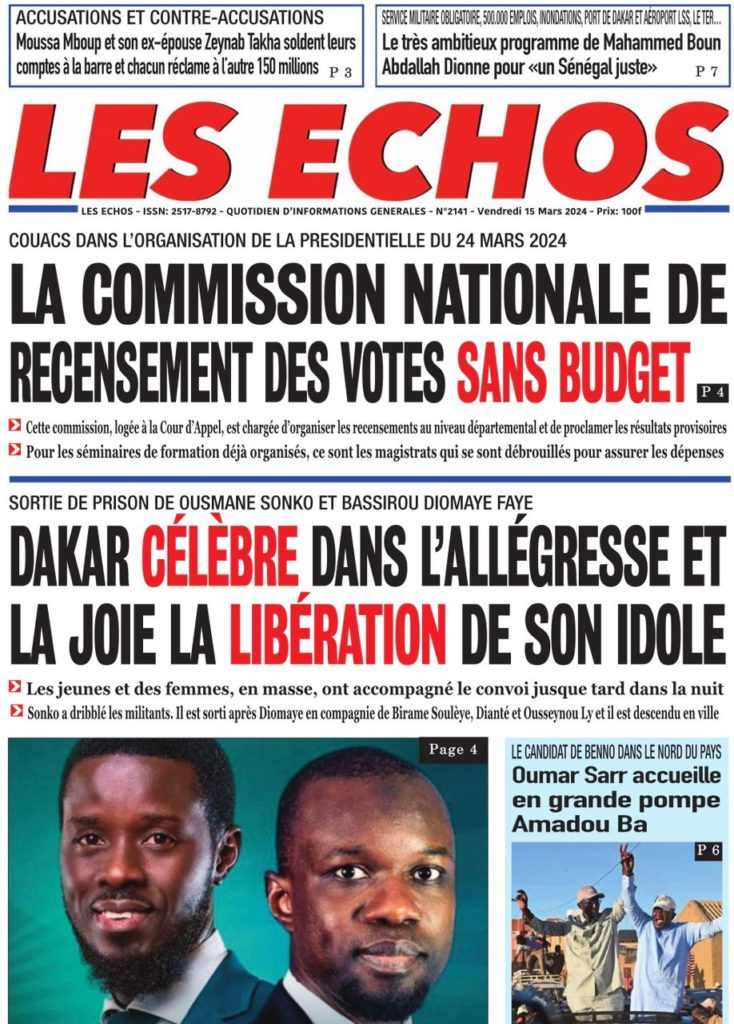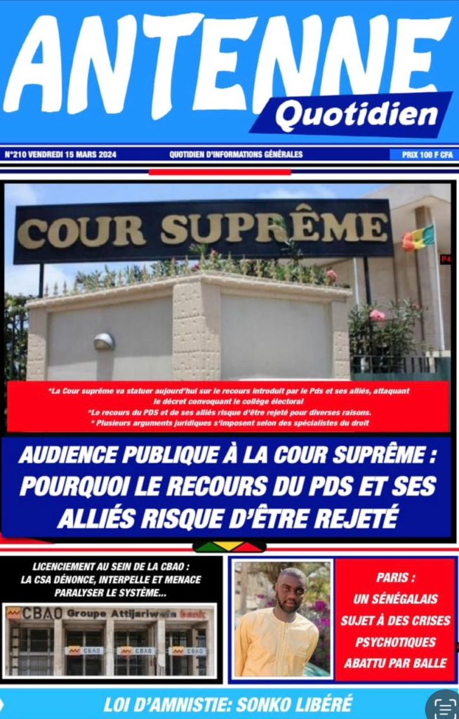 " /> La Une des Quotidiens Nationaux du 15 Mars 2024 Publié le 15 Mar, 2024 À DÉCOUVRIR Les Unes des quotidiens nationaux du 19 novembre 2025 19 Nov, 2025 La Rédaction de SenCaféActu Partager ->