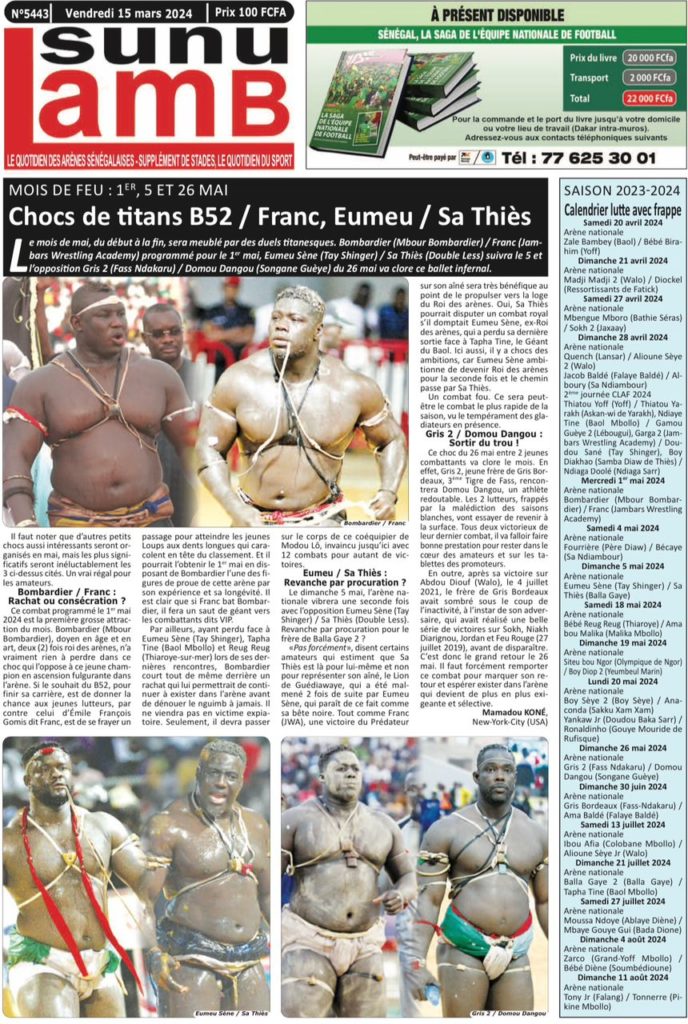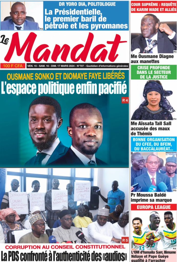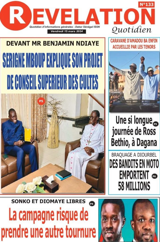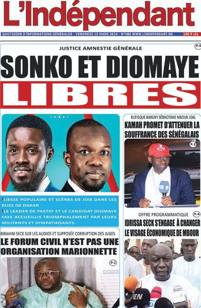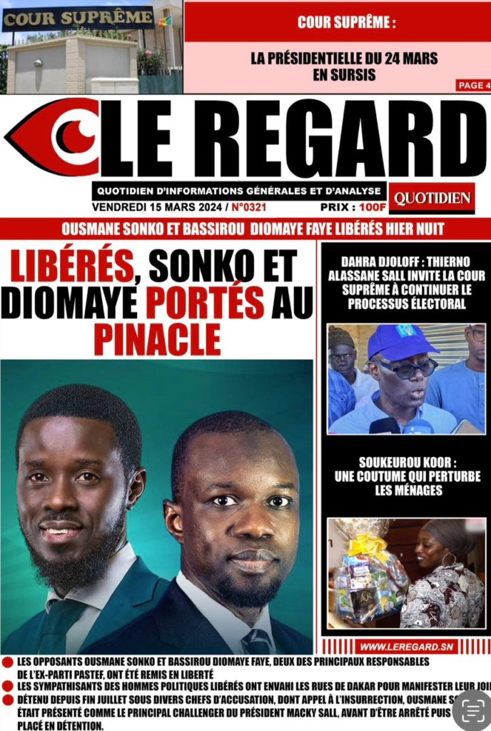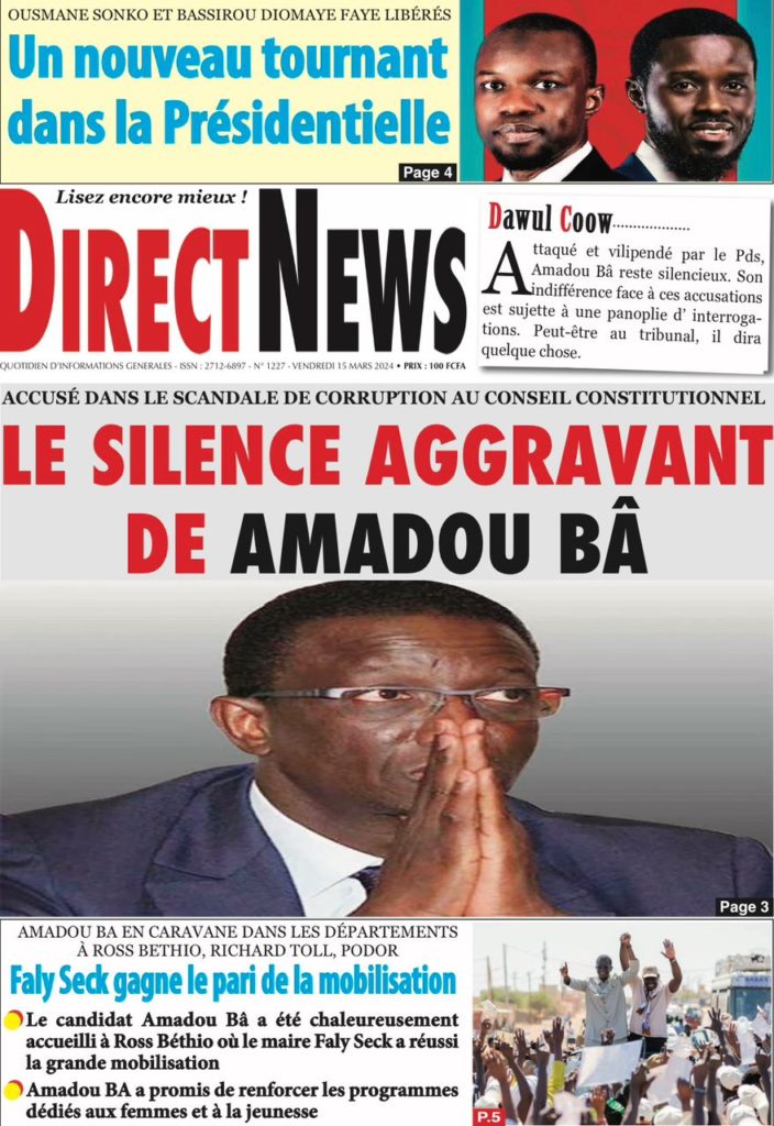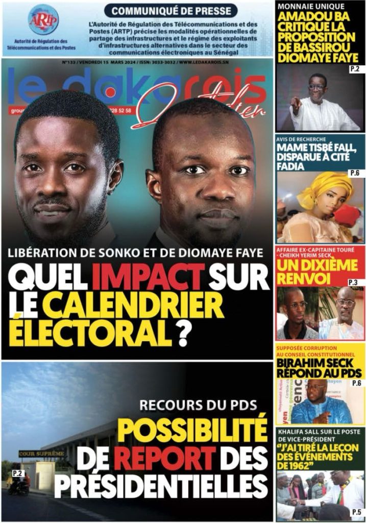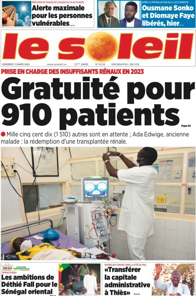 " /> La Une des Quotidiens Nationaux du 15 Mars 2024 Publié le 15 Mar, 2024 À DÉCOUVRIR Les Unes des quotidiens nationaux du 19 novembre 2025 19 Nov, 2025 La Rédaction de SenCaféActu Partager ->