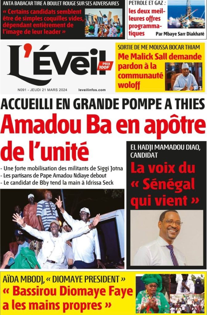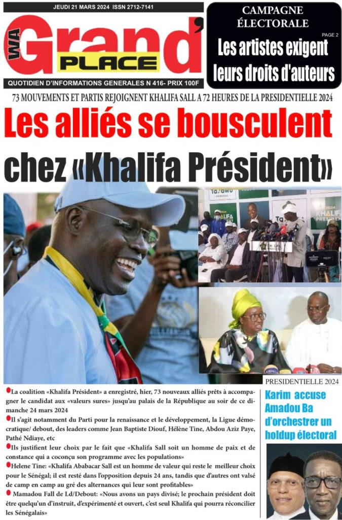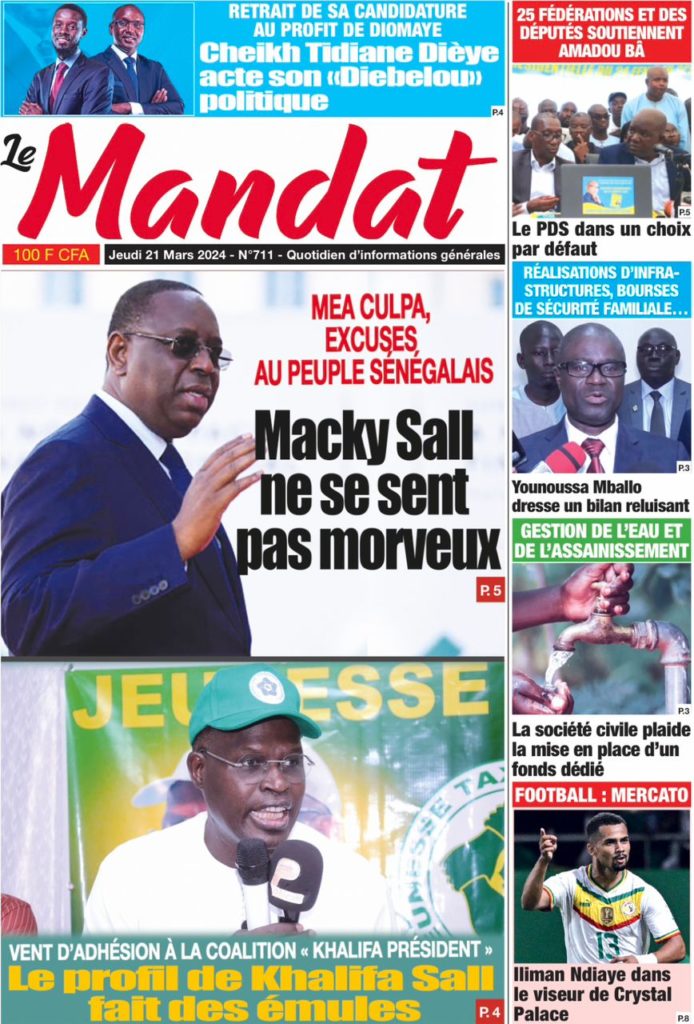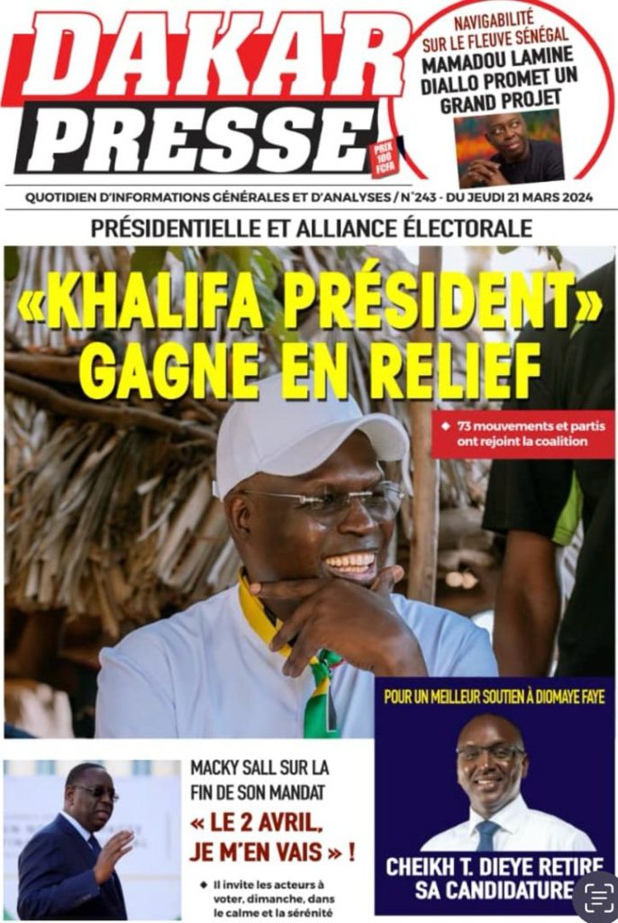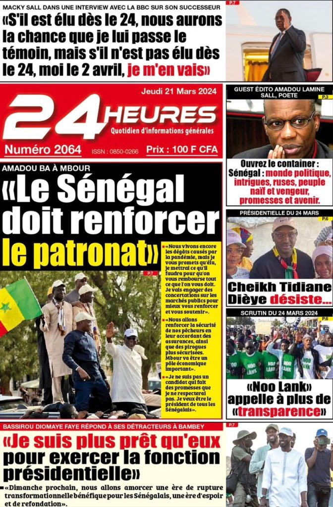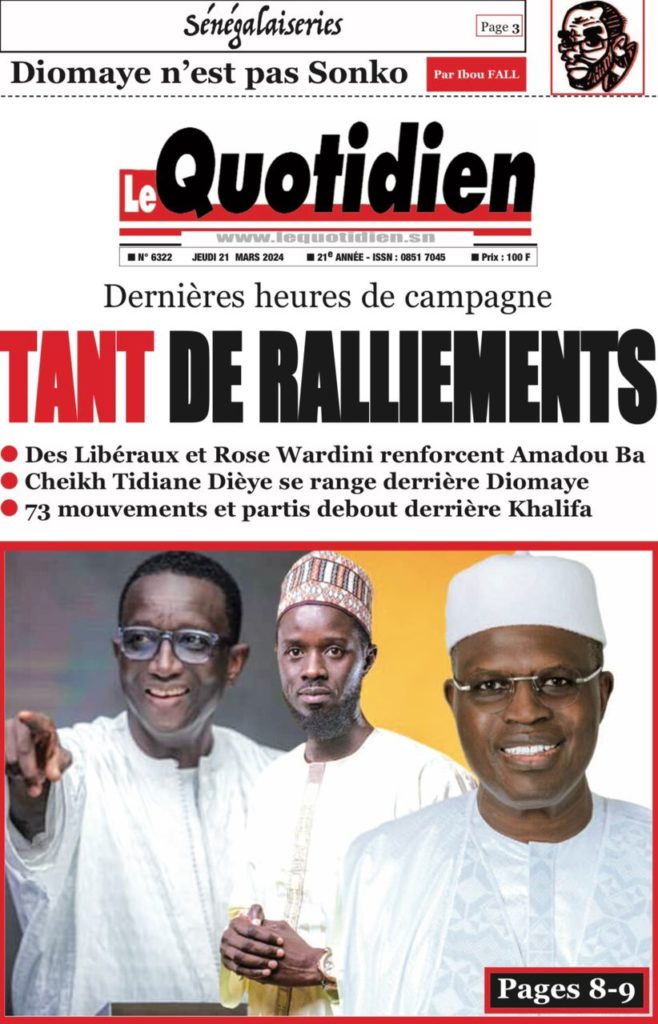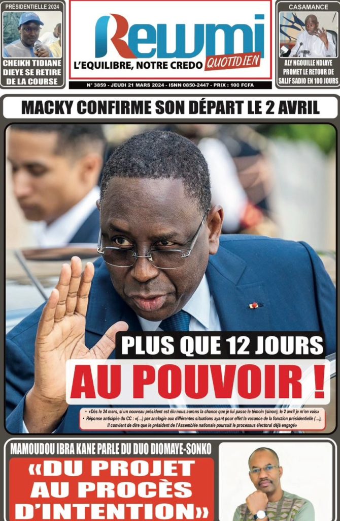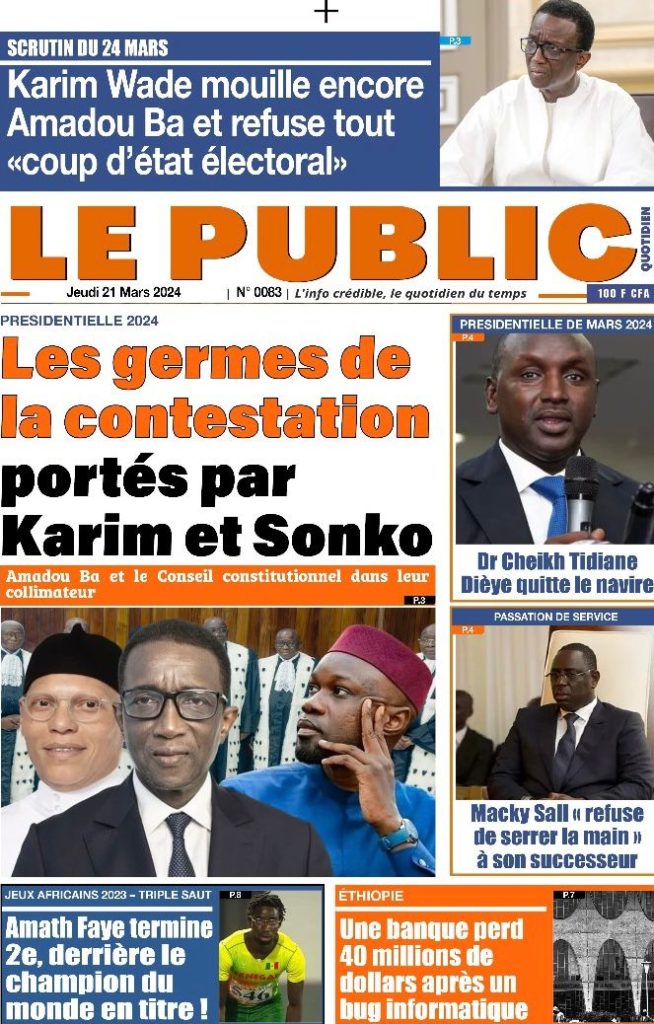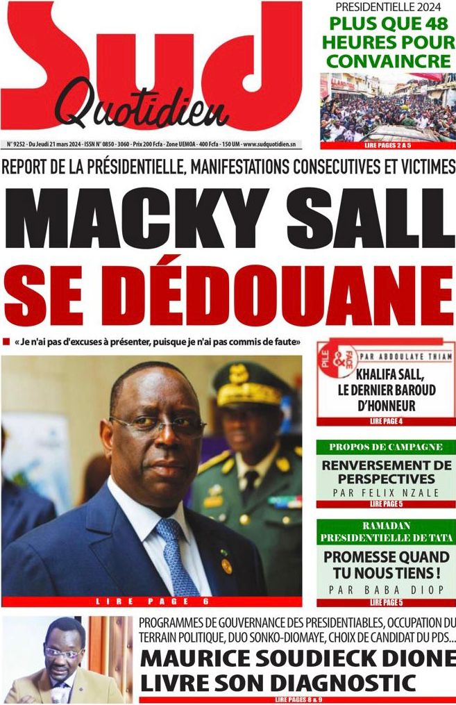 " /> La Une des Quotidiens Nationaux du 21 Mars 2024 Publié le 21 Mar, 2024 À DÉCOUVRIR Les Unes des quotidiens nationaux du 19 novembre 2025 19 Nov, 2025 La Rédaction de SenCaféActu Partager ->