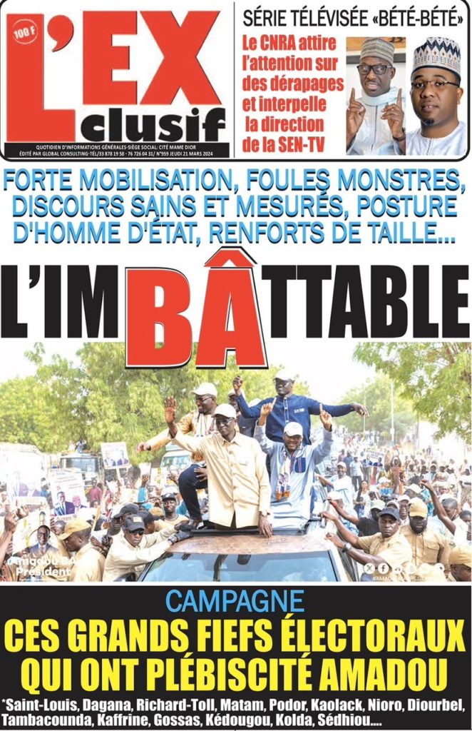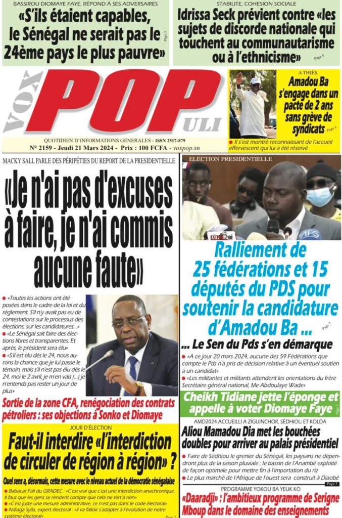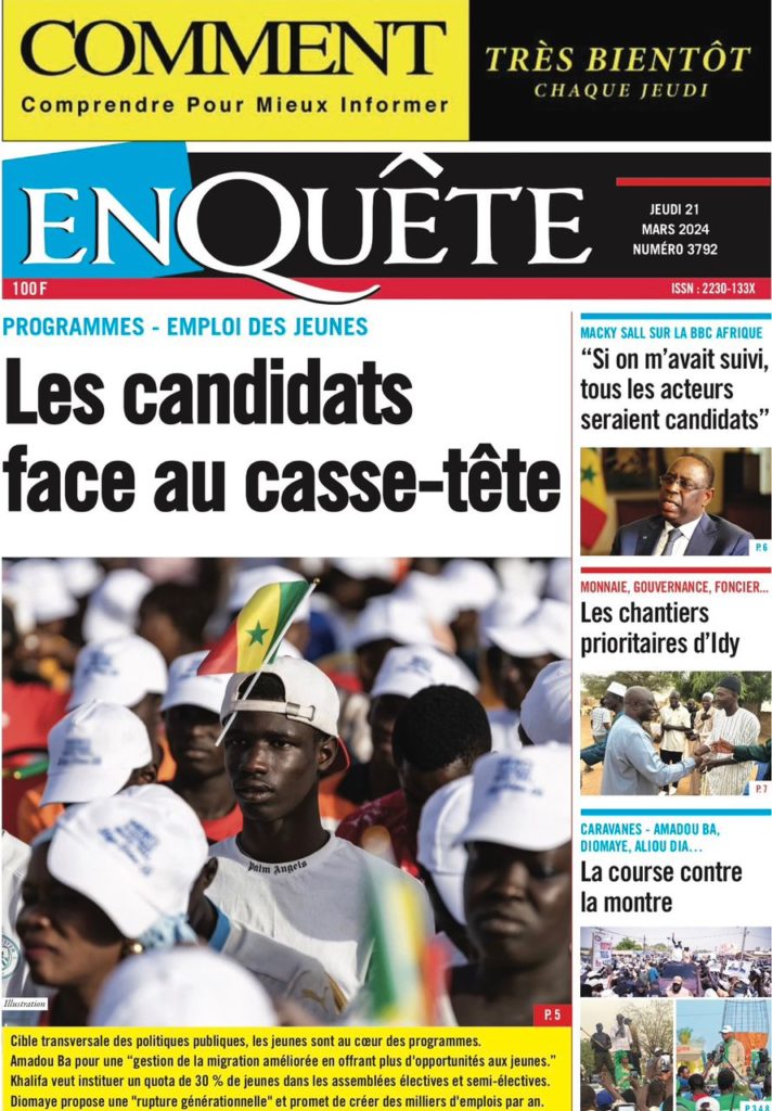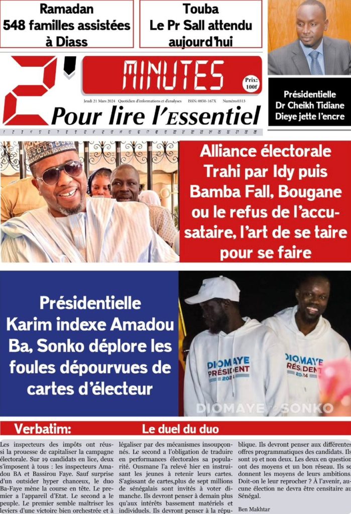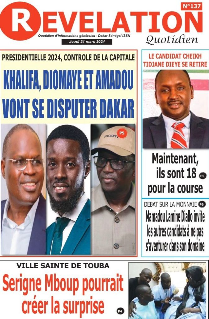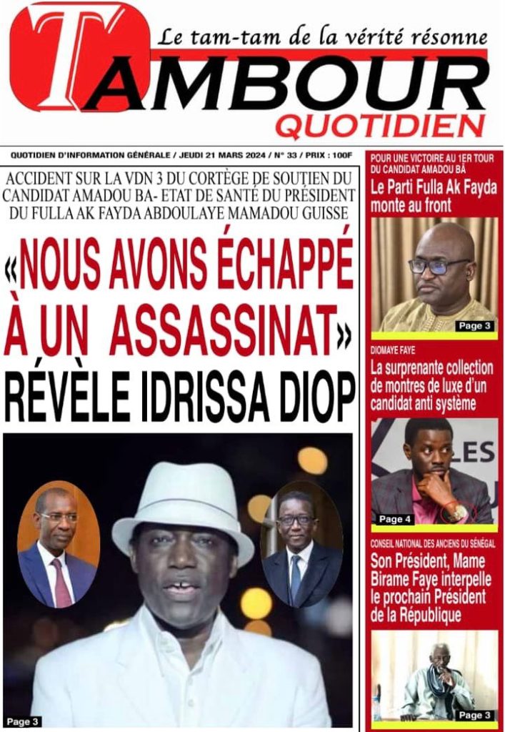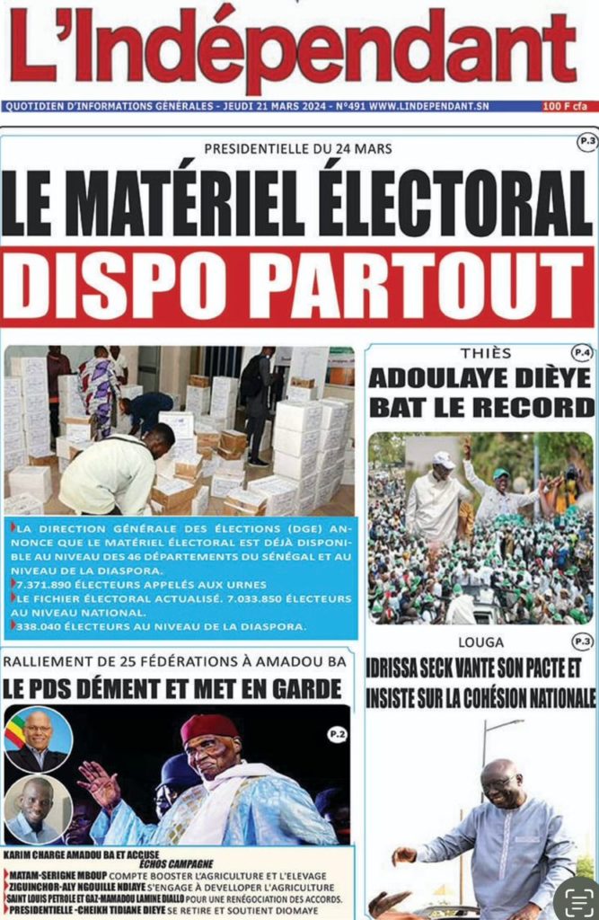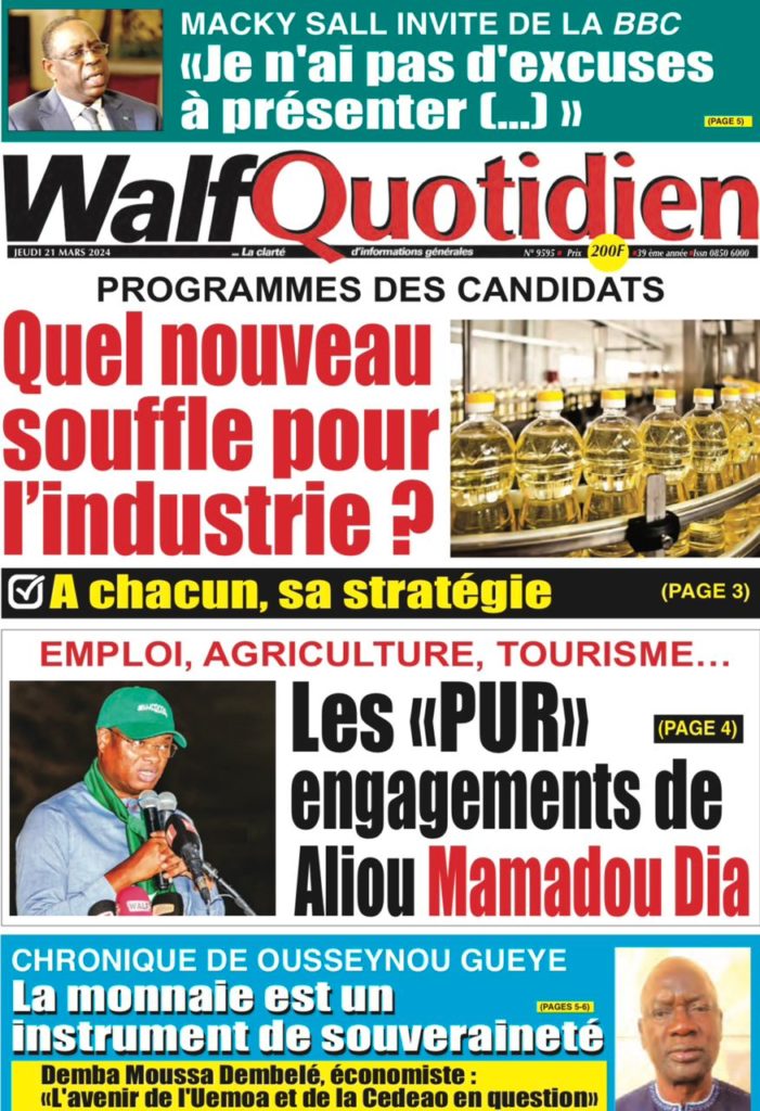 " /> La Une des Quotidiens Nationaux du 21 Mars 2024 Publié le 21 Mar, 2024 À DÉCOUVRIR Les Unes des quotidiens nationaux du 19 novembre 2025 19 Nov, 2025 La Rédaction de SenCaféActu Partager ->