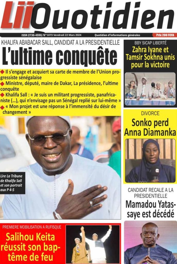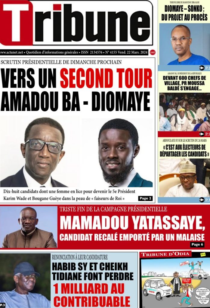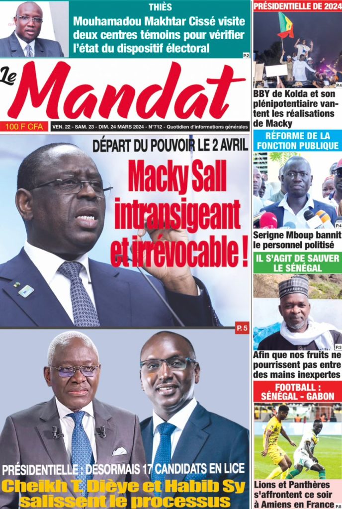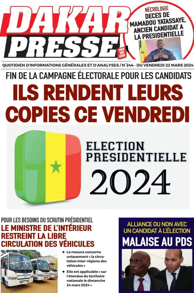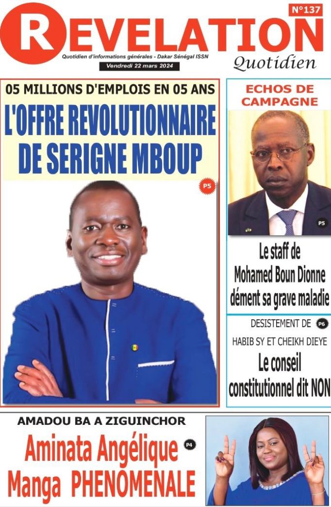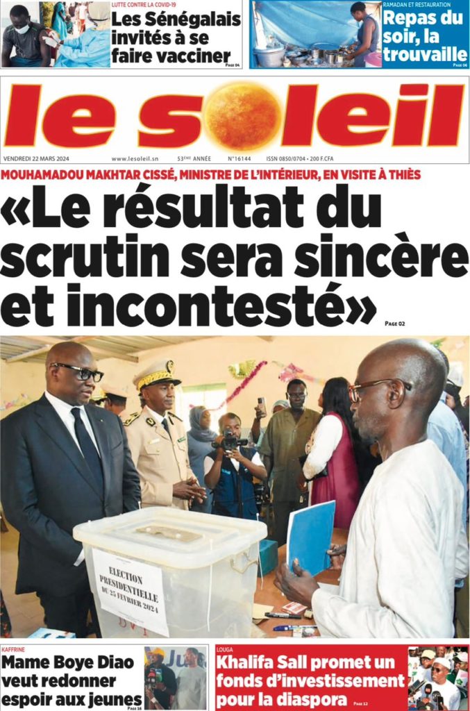 " /> La Une des Quotidiens Nationaux du 22 Mars 2024 Publié le 22 Mar, 2024 À DÉCOUVRIR Les Unes des quotidiens nationaux du 29 novembre 2025 29 Nov, 2025 La Rédaction de SenCaféActu Partager ->