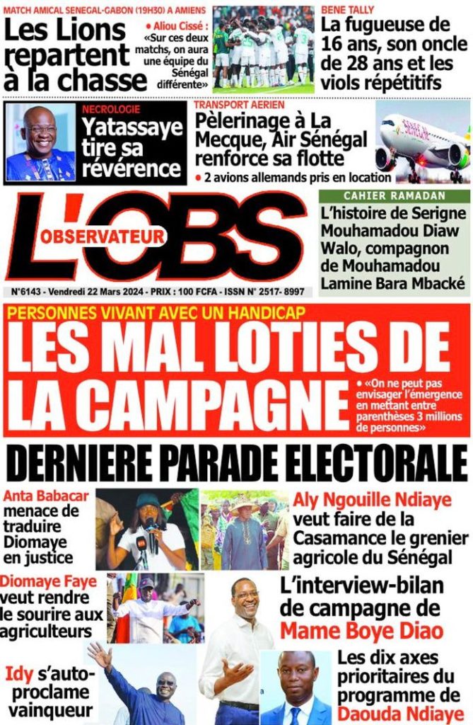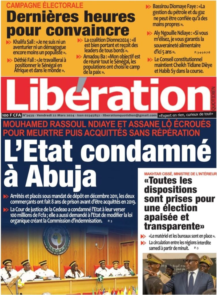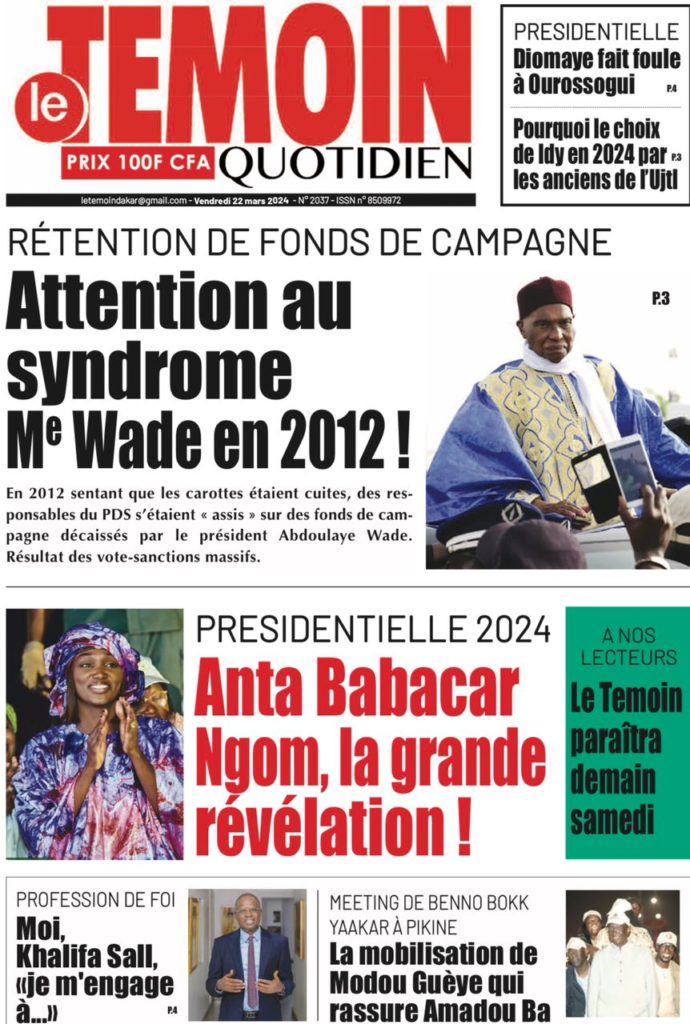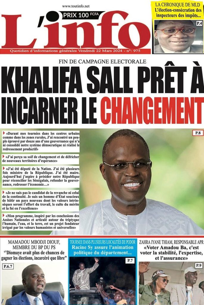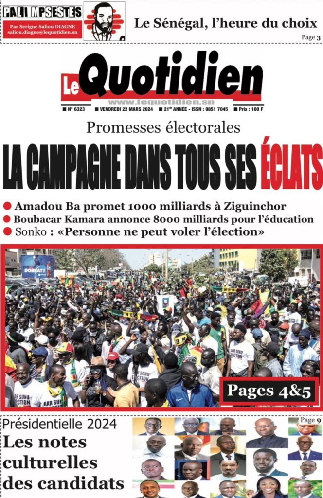 " /> La Une des Quotidiens Nationaux du 22 Mars 2024 Publié le 22 Mar, 2024 À DÉCOUVRIR Les Unes des quotidiens nationaux du 29 novembre 2025 29 Nov, 2025 La Rédaction de SenCaféActu Partager ->