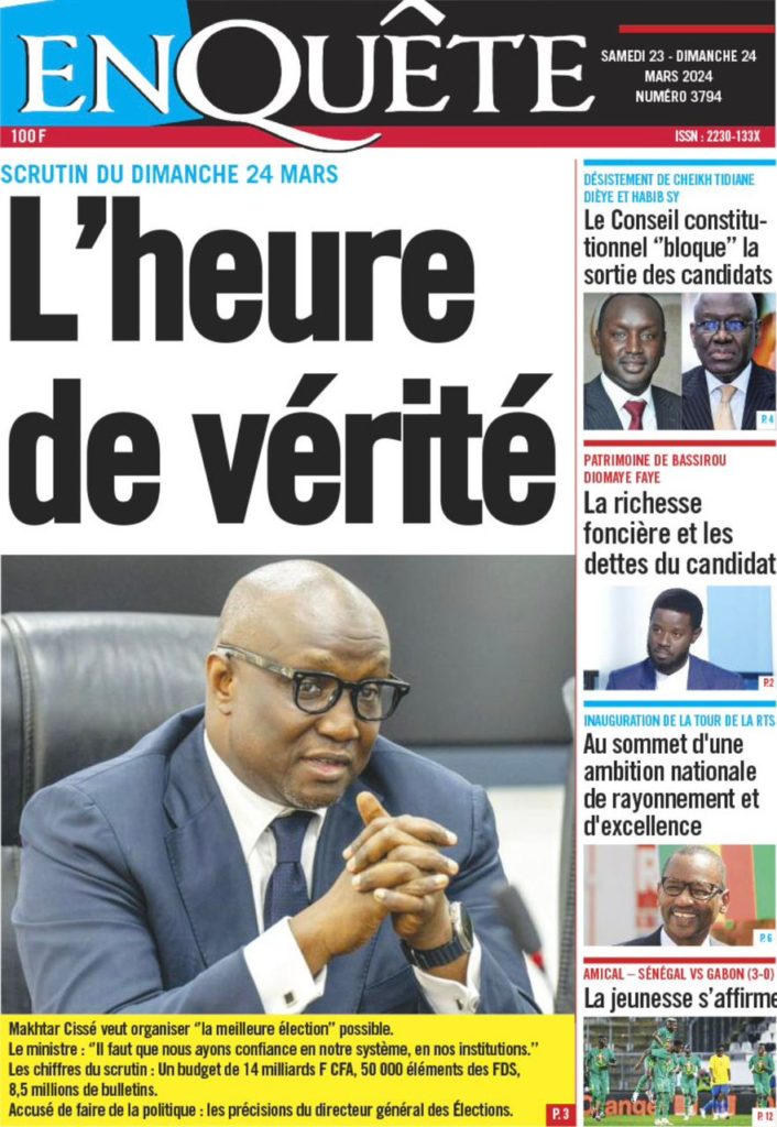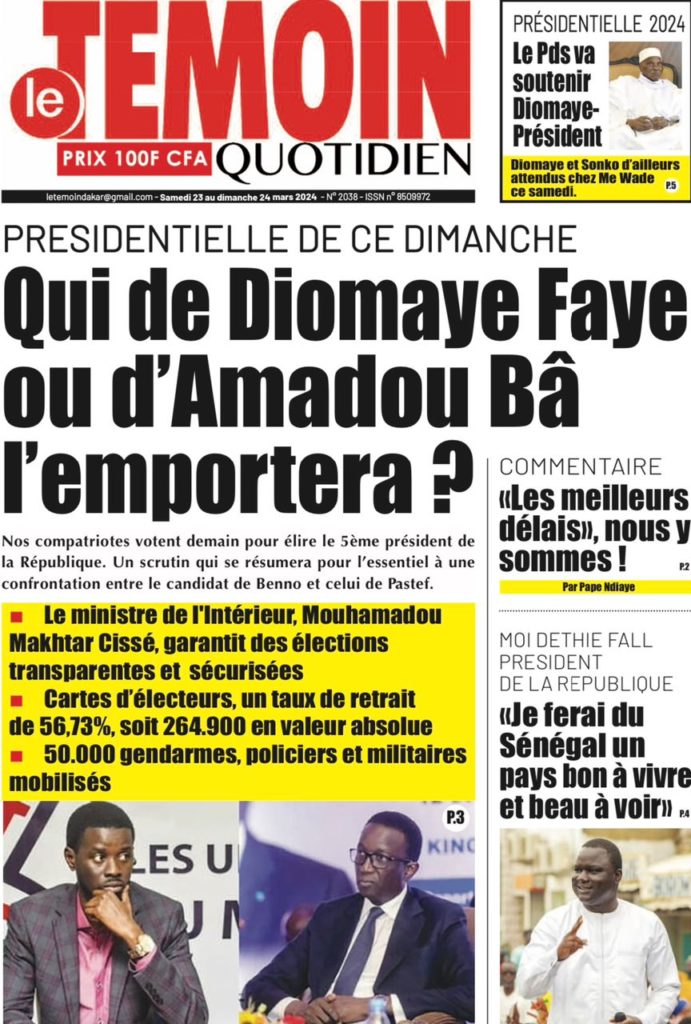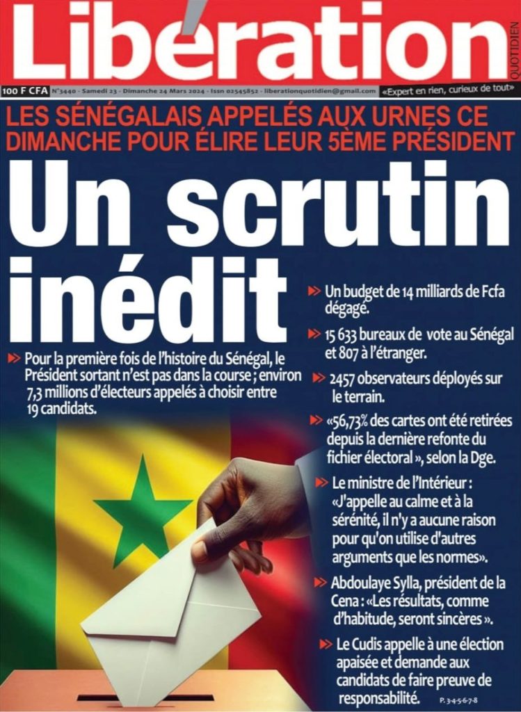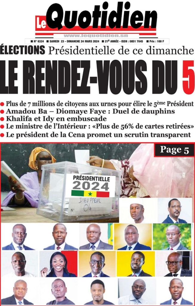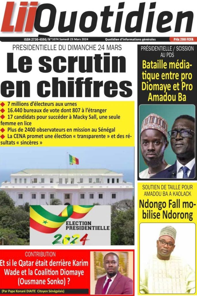 " /> La Une des Quotidiens Nationaux du 23 Mars 2024 Publié le 23 Mar, 2024 À DÉCOUVRIR Les Unes des quotidiens nationaux du 19 novembre 2025 19 Nov, 2025 La Rédaction de SenCaféActu Partager ->