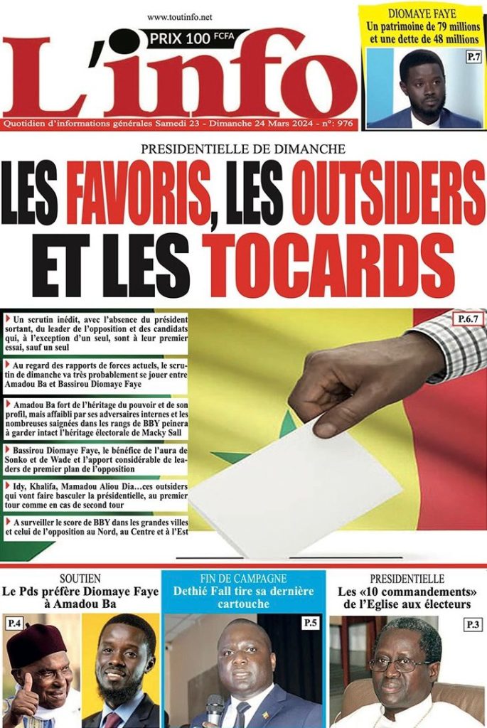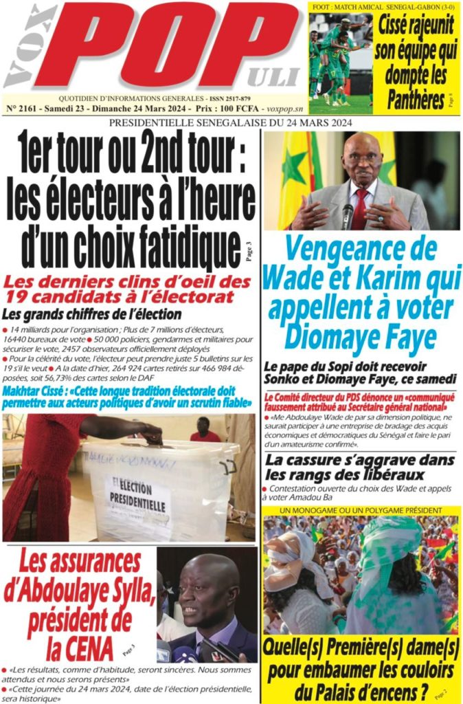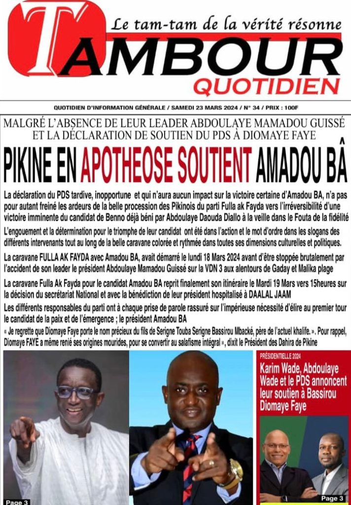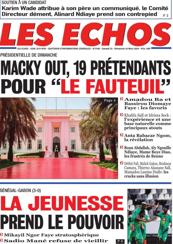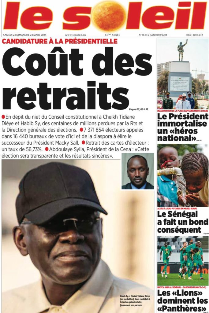 " /> La Une des Quotidiens Nationaux du 23 Mars 2024 Publié le 23 Mar, 2024 À DÉCOUVRIR Les Unes des quotidiens nationaux du 19 novembre 2025 19 Nov, 2025 La Rédaction de SenCaféActu Partager ->