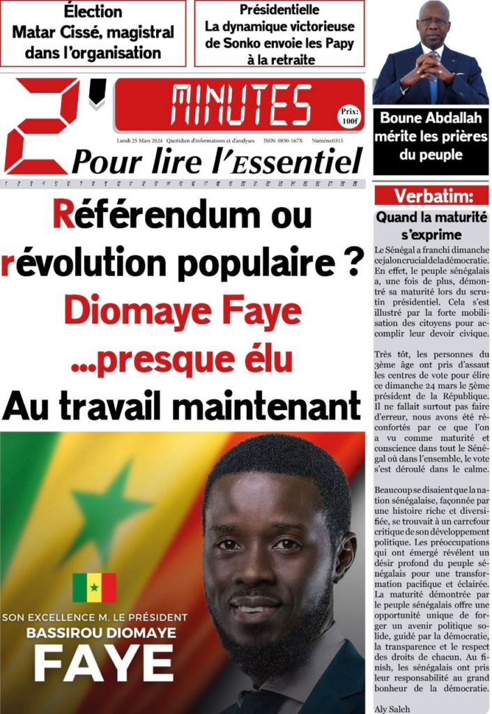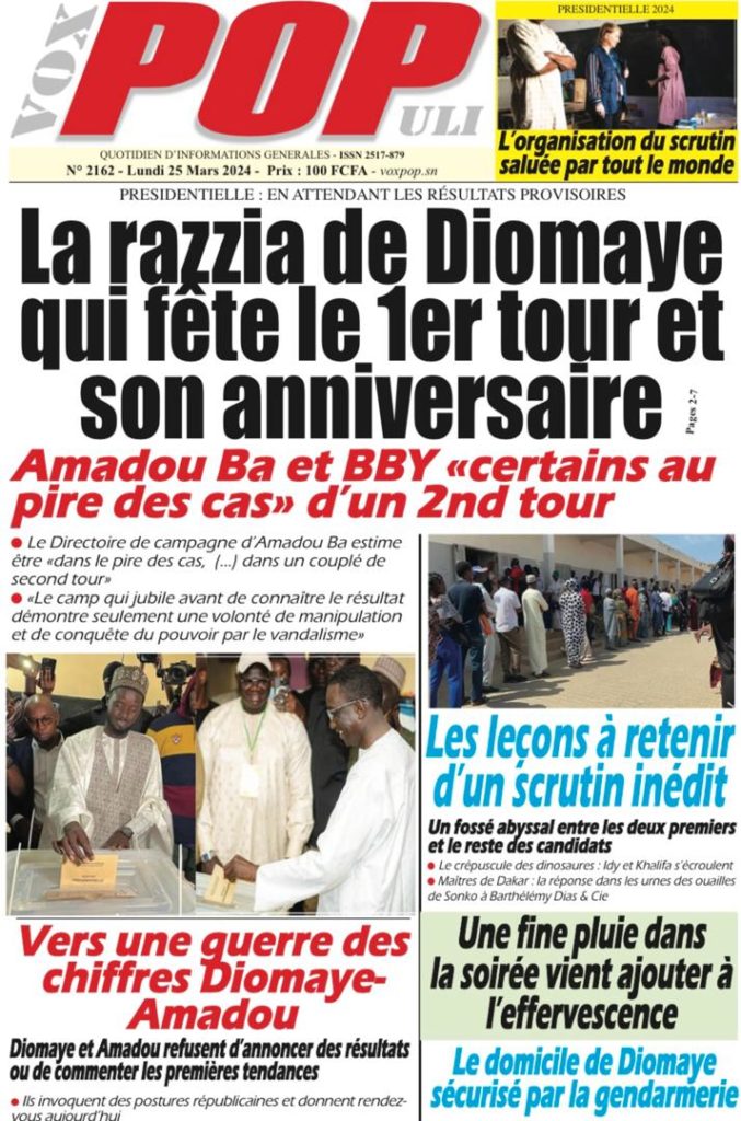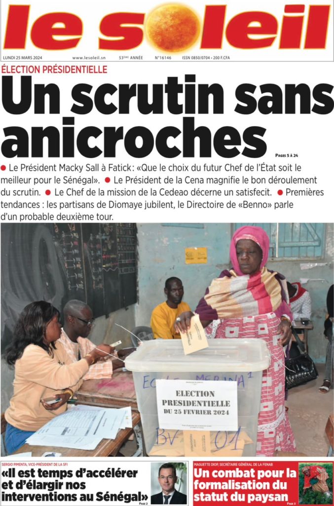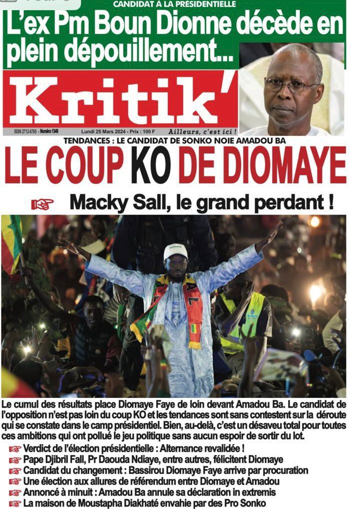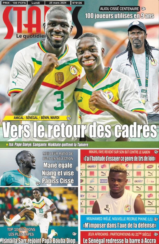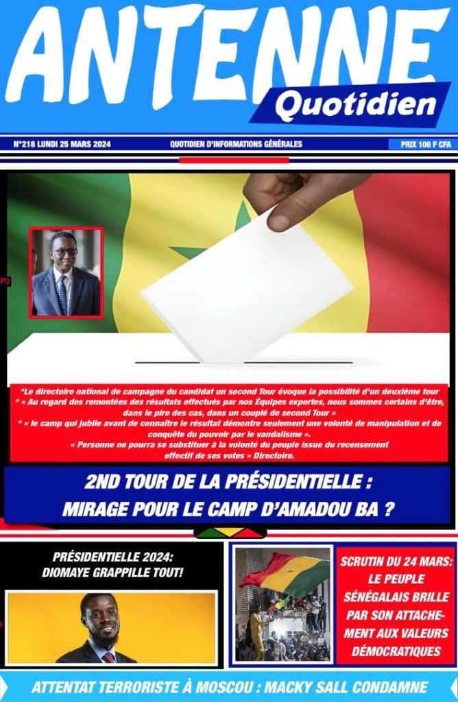 " /> La Une des Quotidiens Nationaux du 25 Mars 2024 Publié le 25 Mar, 2024 À DÉCOUVRIR Les Unes des quotidiens nationaux du 13 novembre 2025 13 Nov, 2025 La Rédaction de SenCaféActu Partager ->