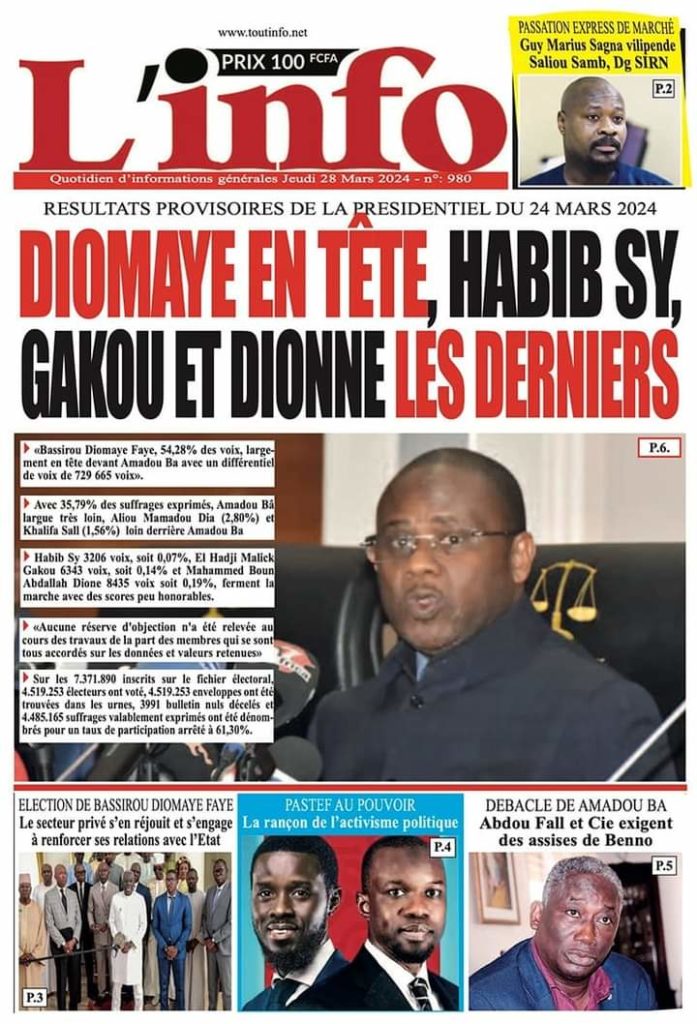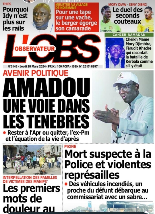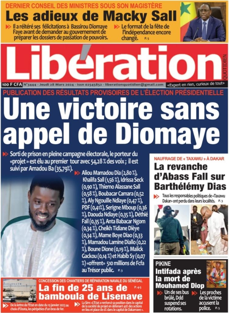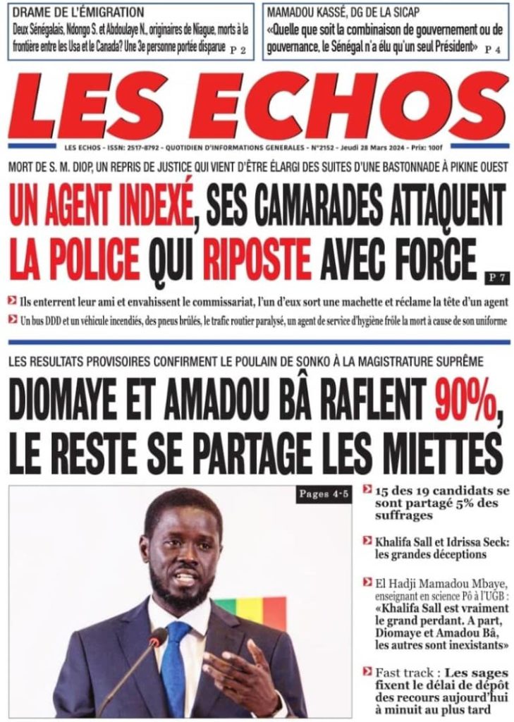 " /> La Une des Quotidiens Nationaux du 28 Mars 2024 Publié le 28 Mar, 2024 À DÉCOUVRIR Les Unes des quotidiens nationaux du 03 novembre 2025 3 Nov, 2025 La Rédaction de SenCaféActu Partager ->
