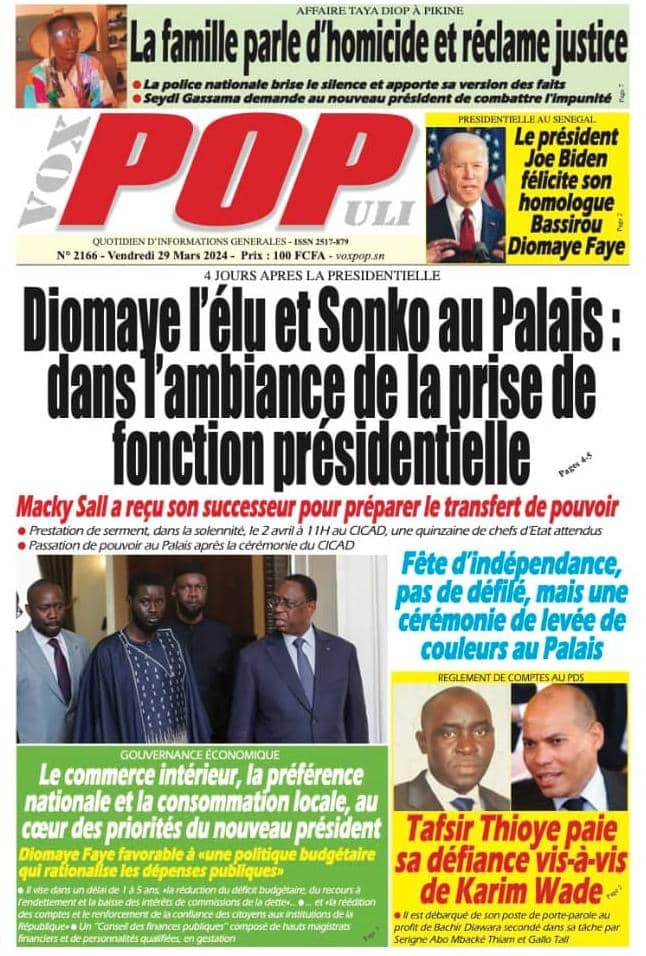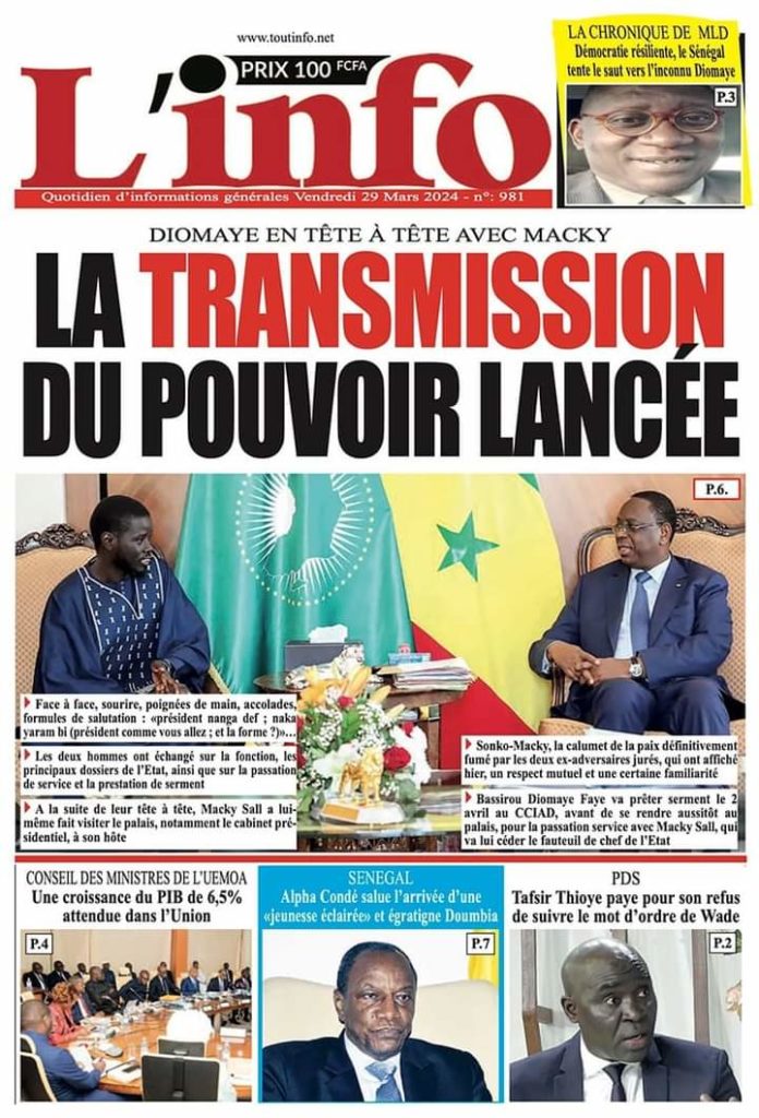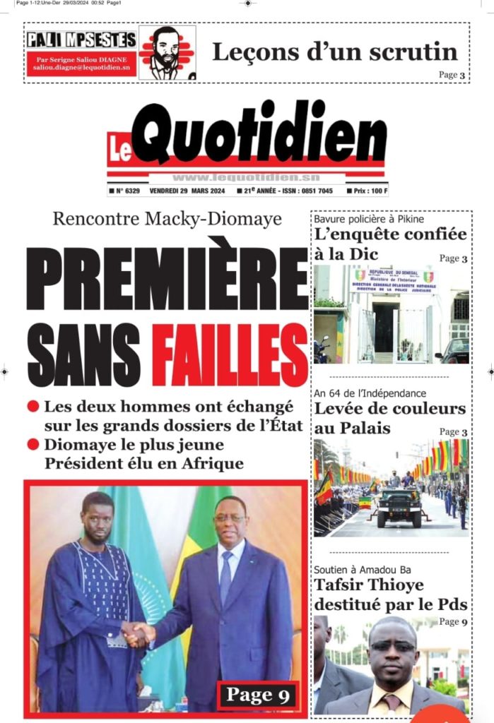 " /> La Une des Quotidiens Nationaux du 29 Mars 2024 Publié le 29 Mar, 2024 À DÉCOUVRIR Les Unes des quotidiens nationaux du 05 novembre 2025 5 Nov, 2025 La Rédaction de SenCaféActu Partager ->
