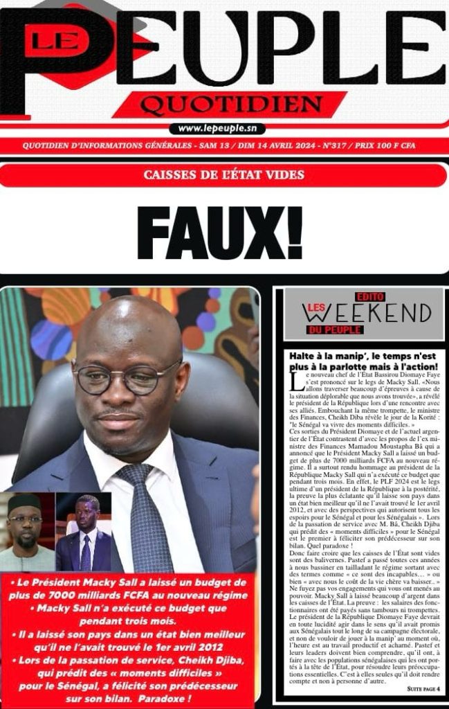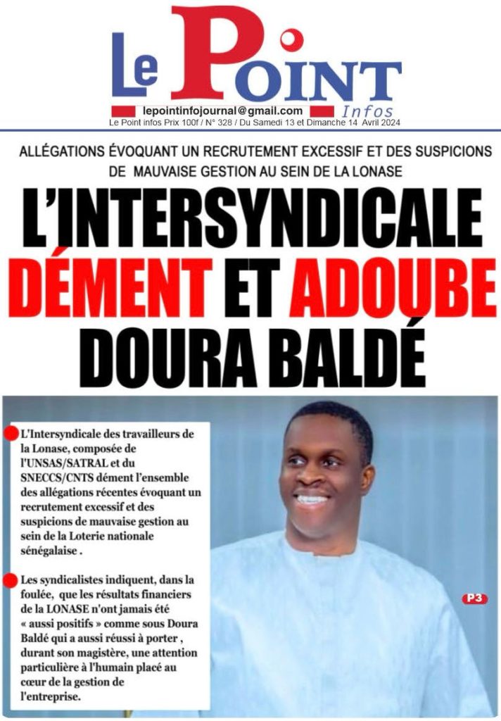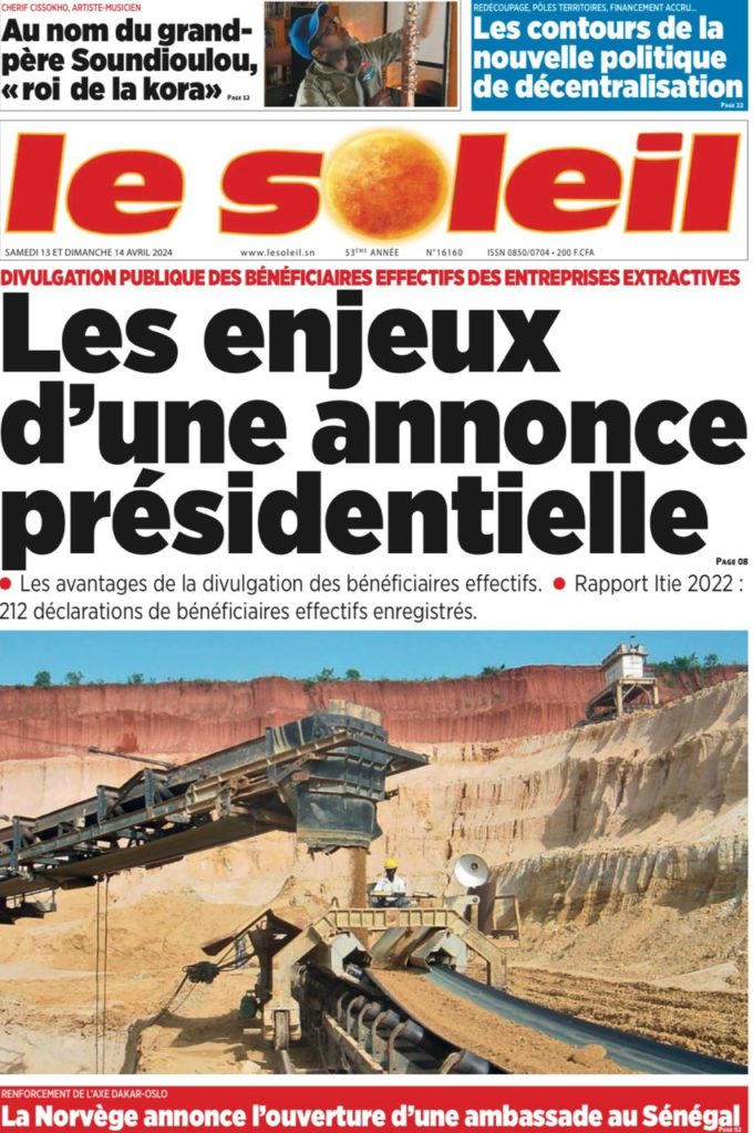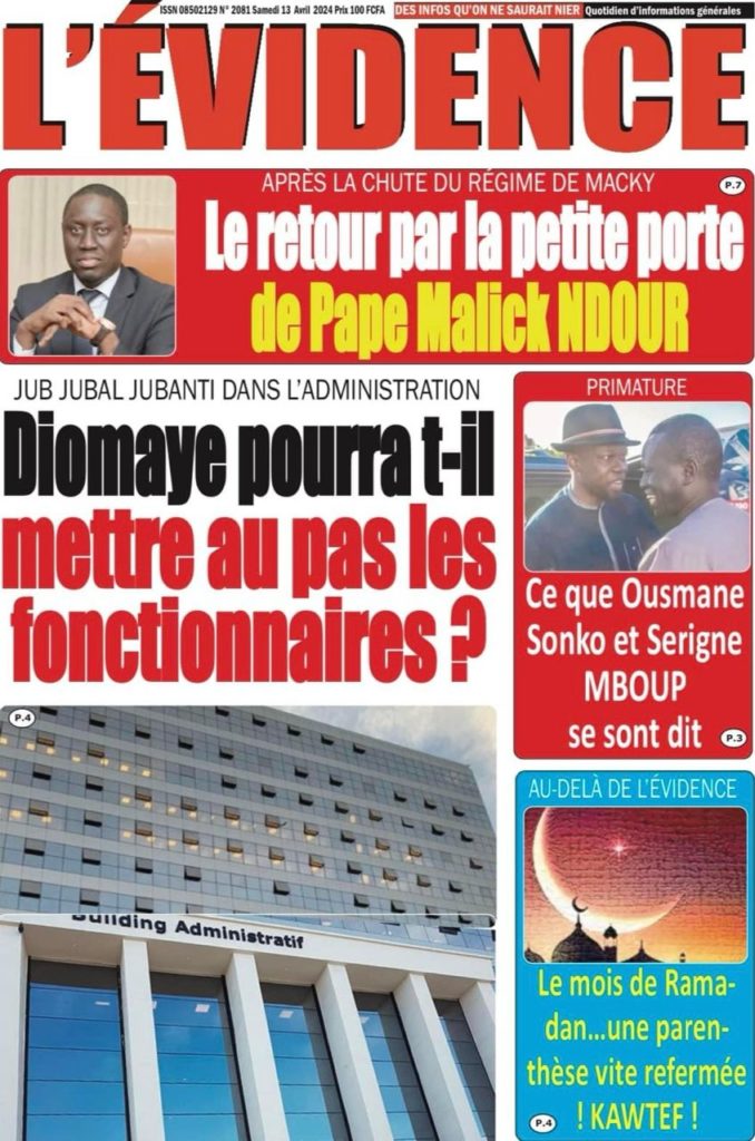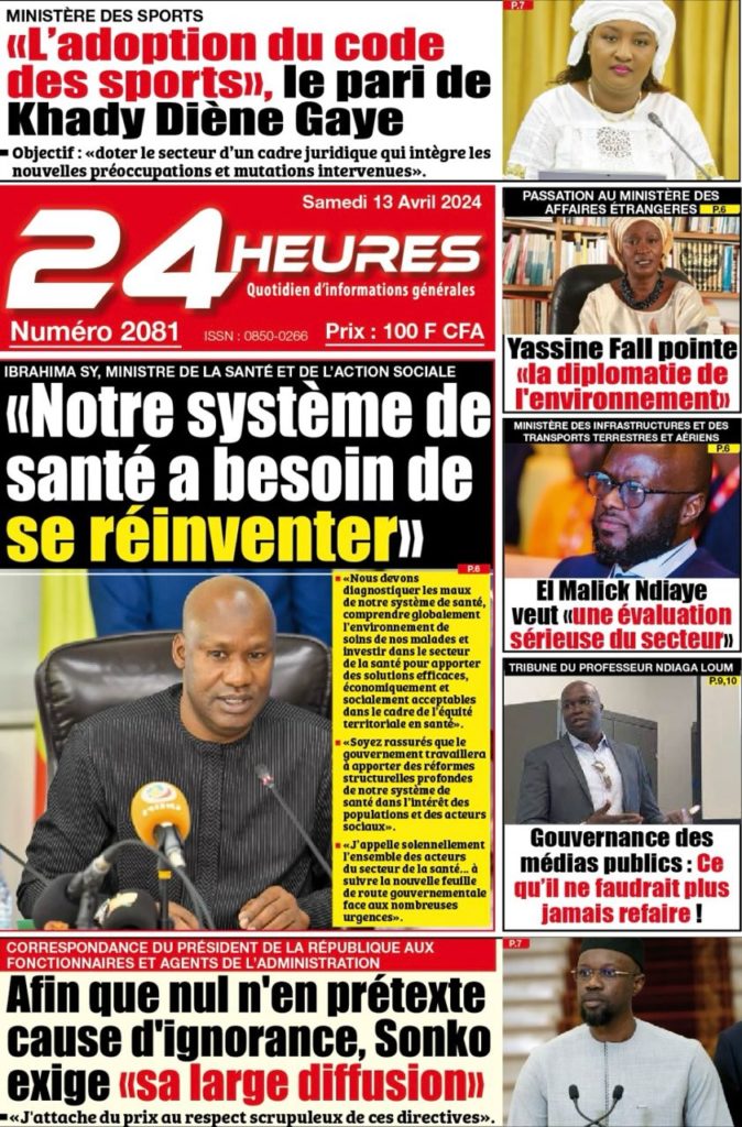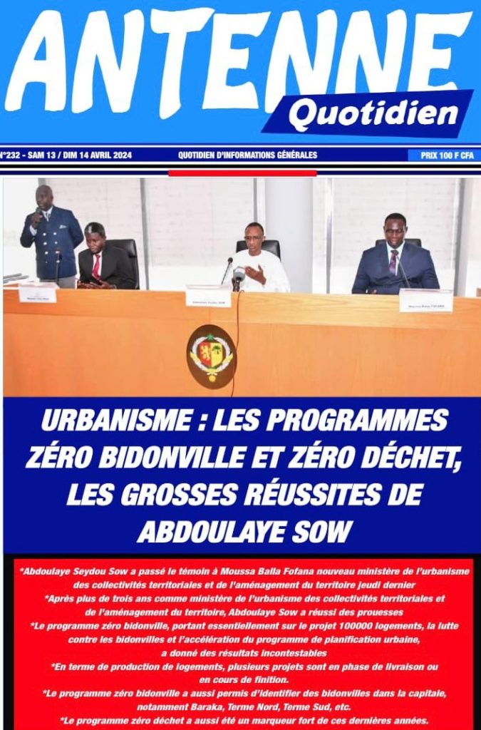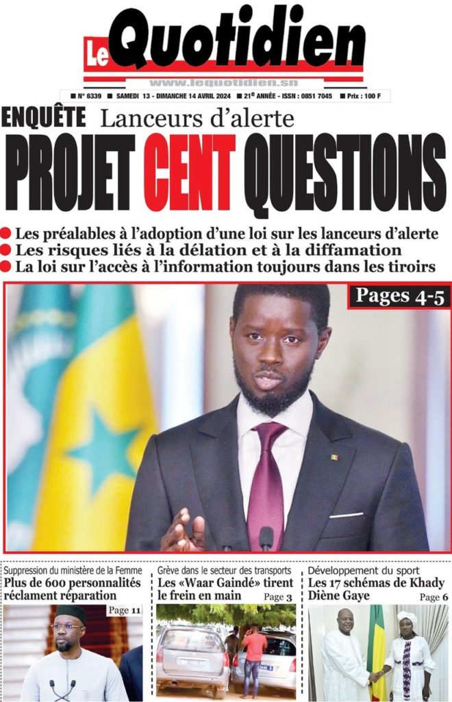 " /> La Une des Quotidiens Nationaux du 13 Avril 2024 Publié le 13 Avr, 2024 À DÉCOUVRIR Les Unes des quotidiens nationaux du 06 novembre 2025 6 Nov, 2025 La Rédaction de SenCaféActu Partager ->