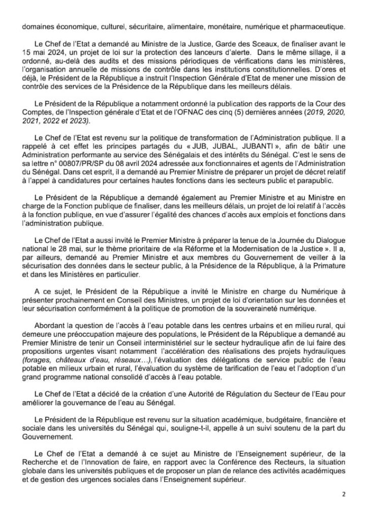 " /> COMMUNIQUE DU CONSEIL DES MINISTRES DU MERCREDI 17 AVRIL 2024 Publié le 17 Avr, 2024 À DÉCOUVRIR Communiqué du Conseil des ministres du mercredi 1er octobre… 2 Oct, 2025 La Rédaction de SenCaféActu Partager ->