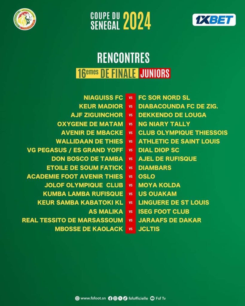 • 𝘾𝙊𝙐𝙋𝙀 𝘿𝙐 𝙎𝙀𝙉𝙀𝙂𝘼𝙇 2024 : Les rencontres des 16ème de finale chez les Seniors et les Juniors.