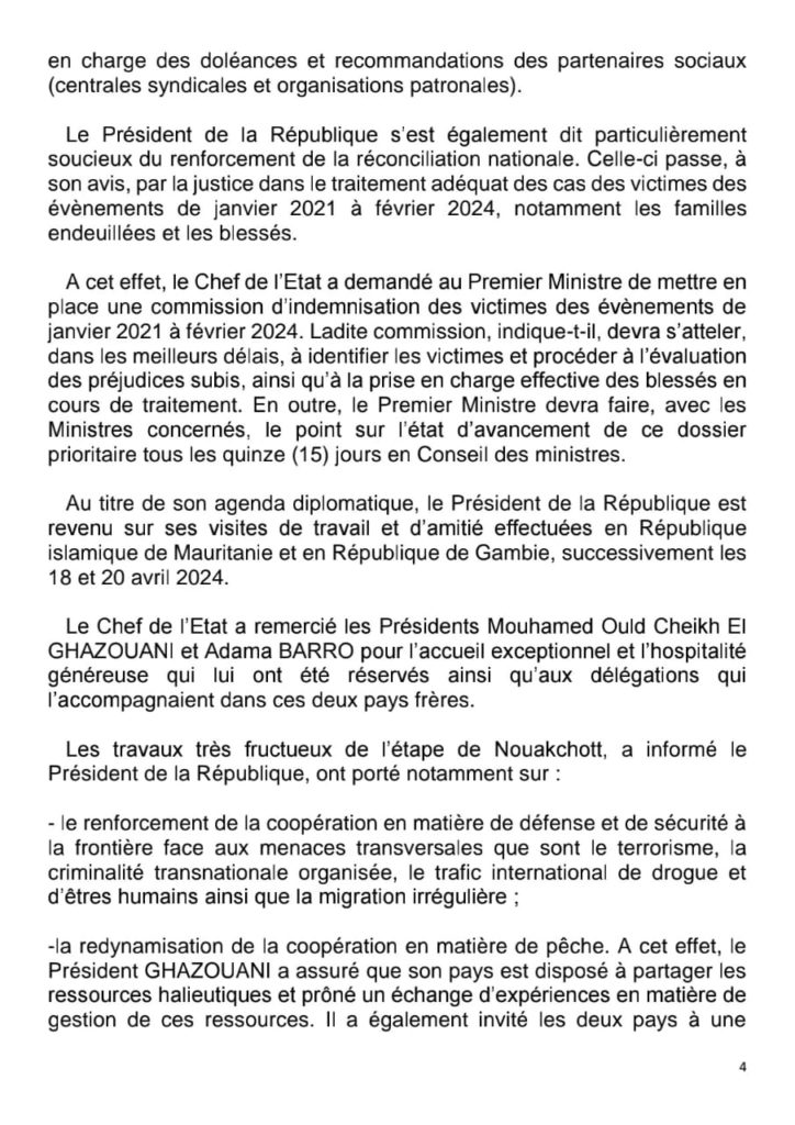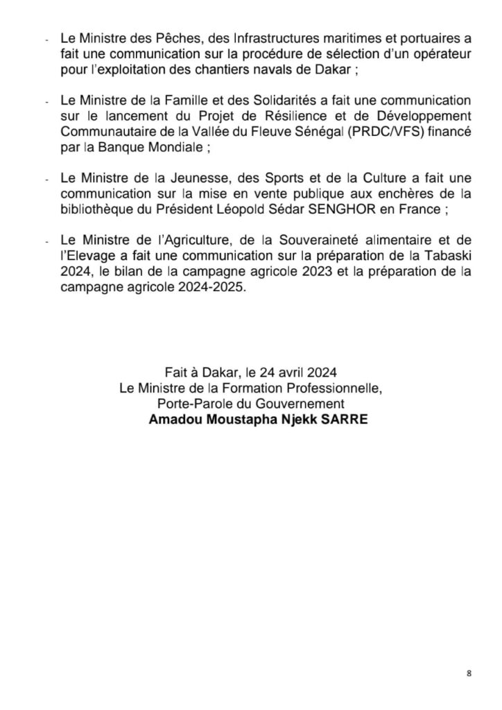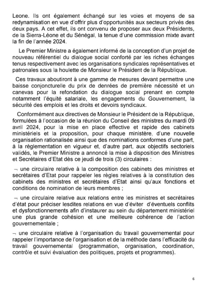 " /> COMMUNIQUE DU CONSEIL DES MINISTRES DU MERCREDI 24 AVRIL 2024 Publié le 24 Avr, 2024 À DÉCOUVRIR Communiqué du Conseil des ministres du mercredi 1er octobre… 2 Oct, 2025 La Rédaction de SenCaféActu Partager ->