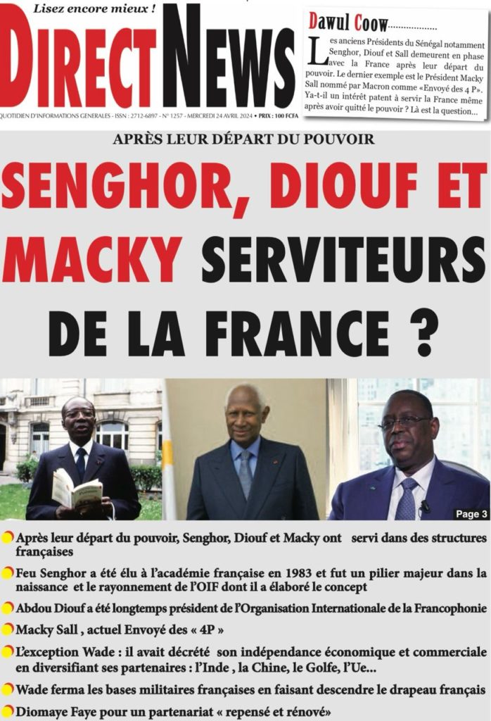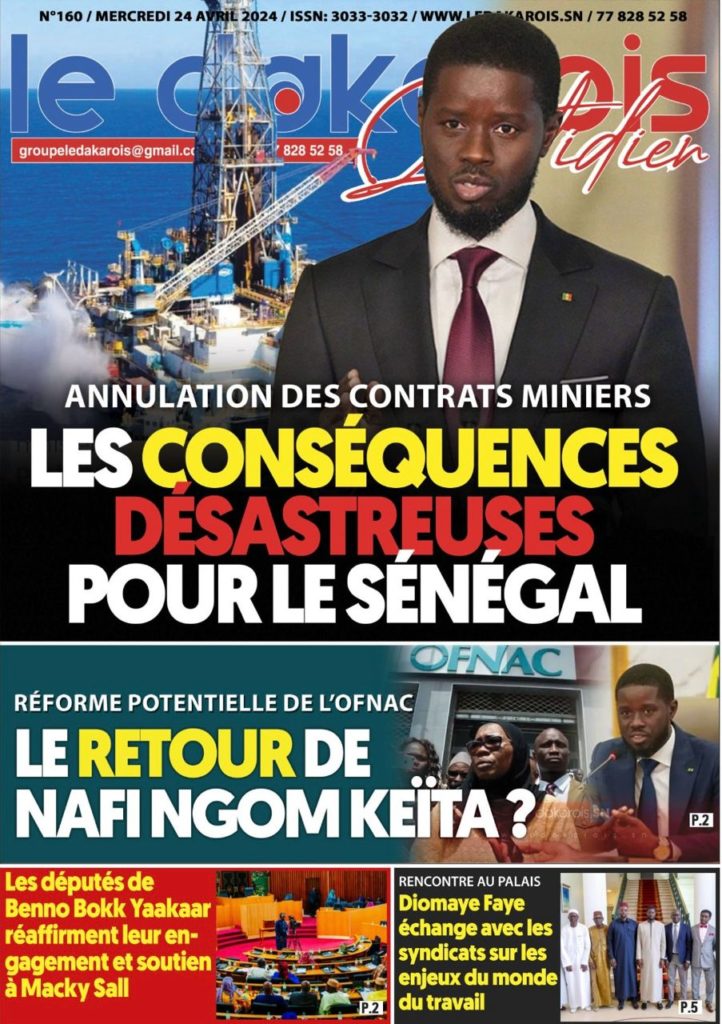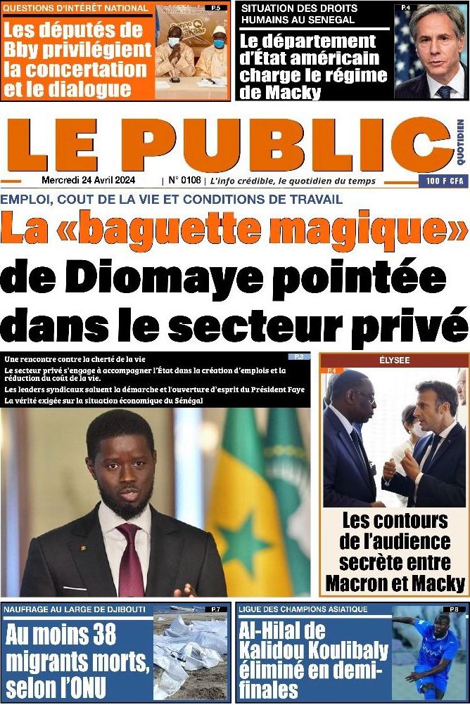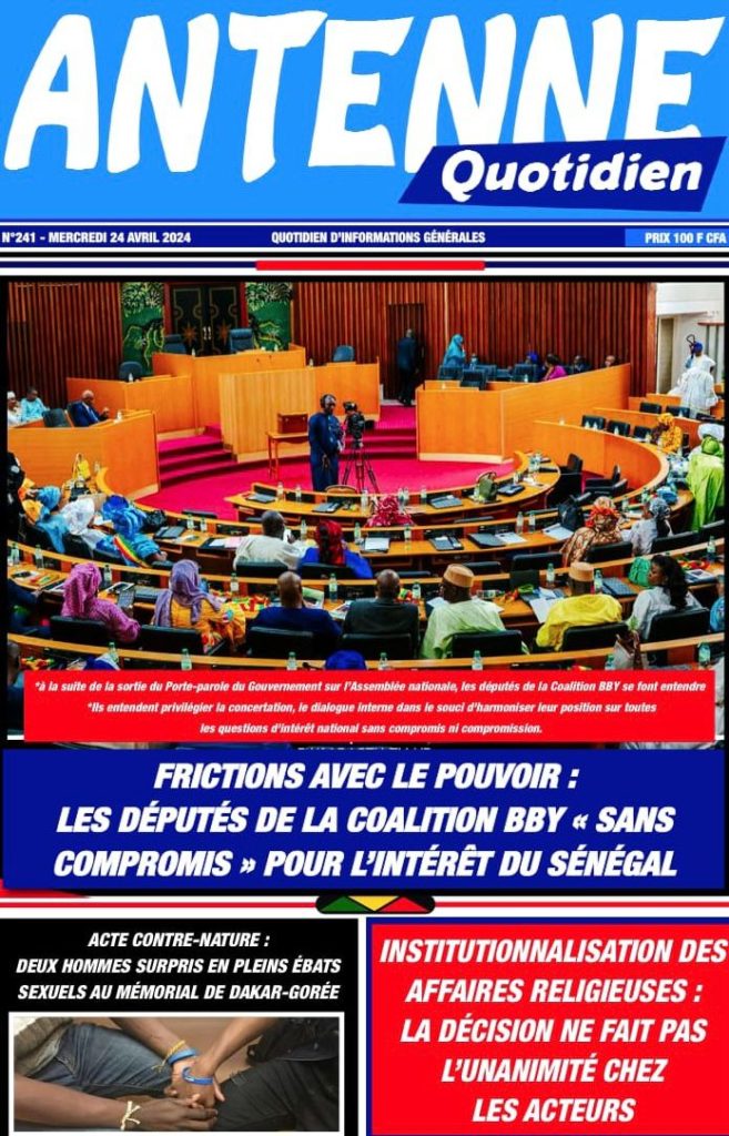 " /> La Une des Quotidiens Nationaux du 24 Avril 2024 Publié le 24 Avr, 2024 À DÉCOUVRIR Les Unes des quotidiens nationaux du 30 octobre 2025 30 Oct, 2025 La Rédaction de SenCaféActu Partager ->