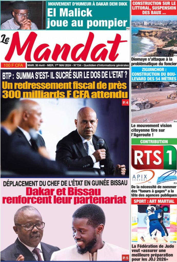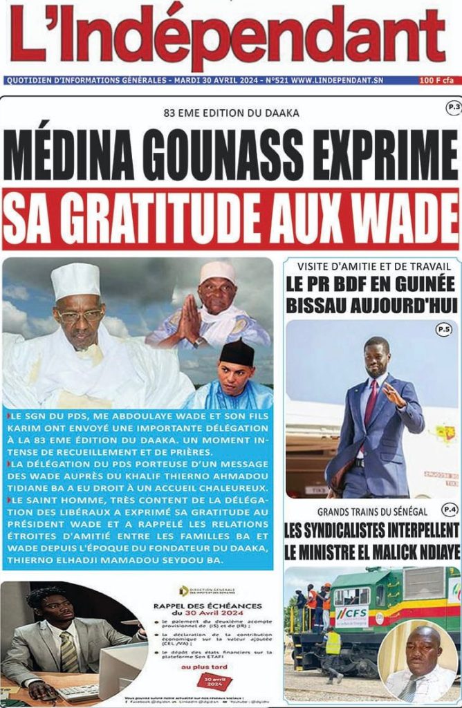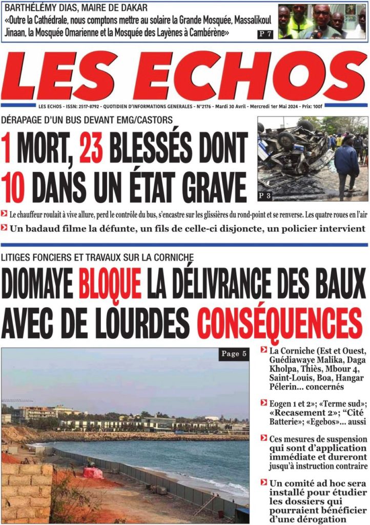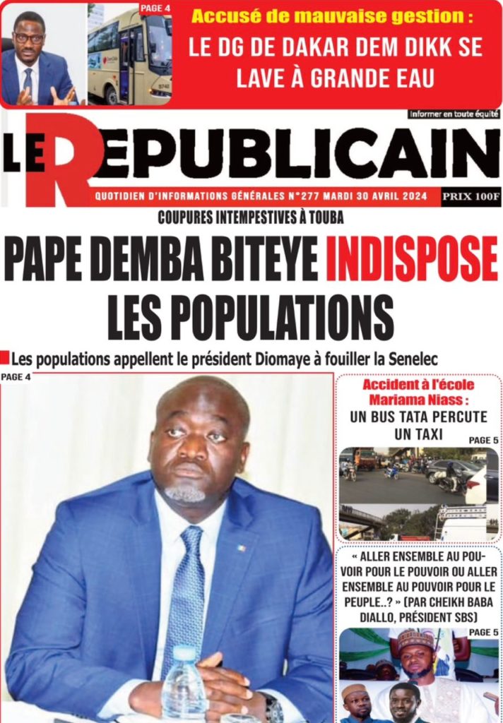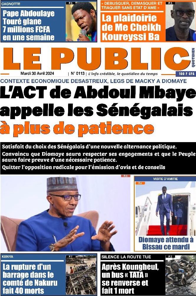 " /> La Une des Quotidiens Nationaux du 30 Avril 2024 Publié le 30 Avr, 2024 À DÉCOUVRIR Les Unes des quotidiens nationaux du 05 novembre 2025 5 Nov, 2025 La Rédaction de SenCaféActu Partager ->