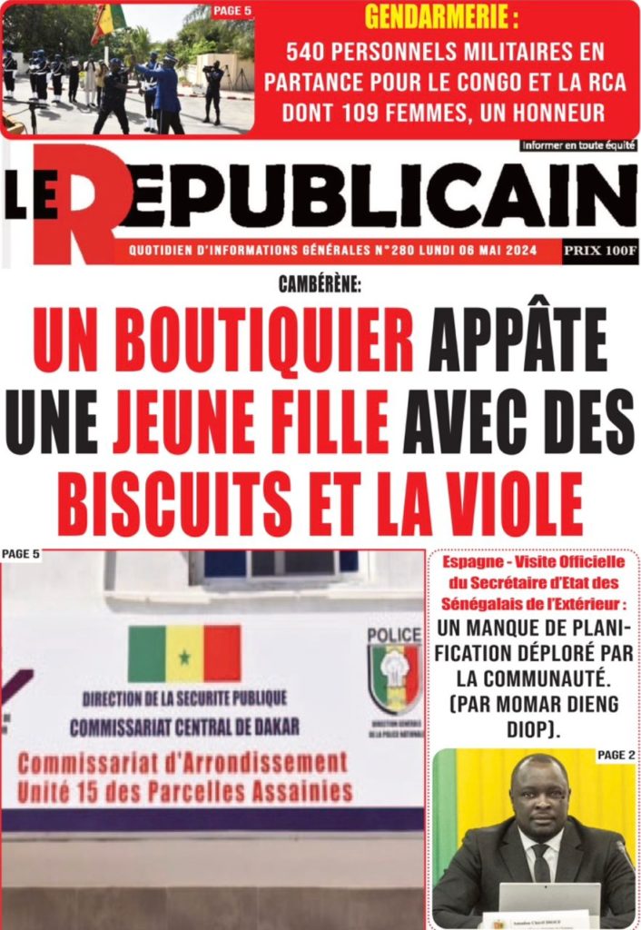 " /> La Une des Quotidiens Nationaux du 6 Mai 2024 Publié le 6 Mai, 2024 À DÉCOUVRIR Les Unes des quotidiens nationaux du 12 novembre 2025 12 Nov, 2025 La Rédaction de SenCaféActu Partager ->