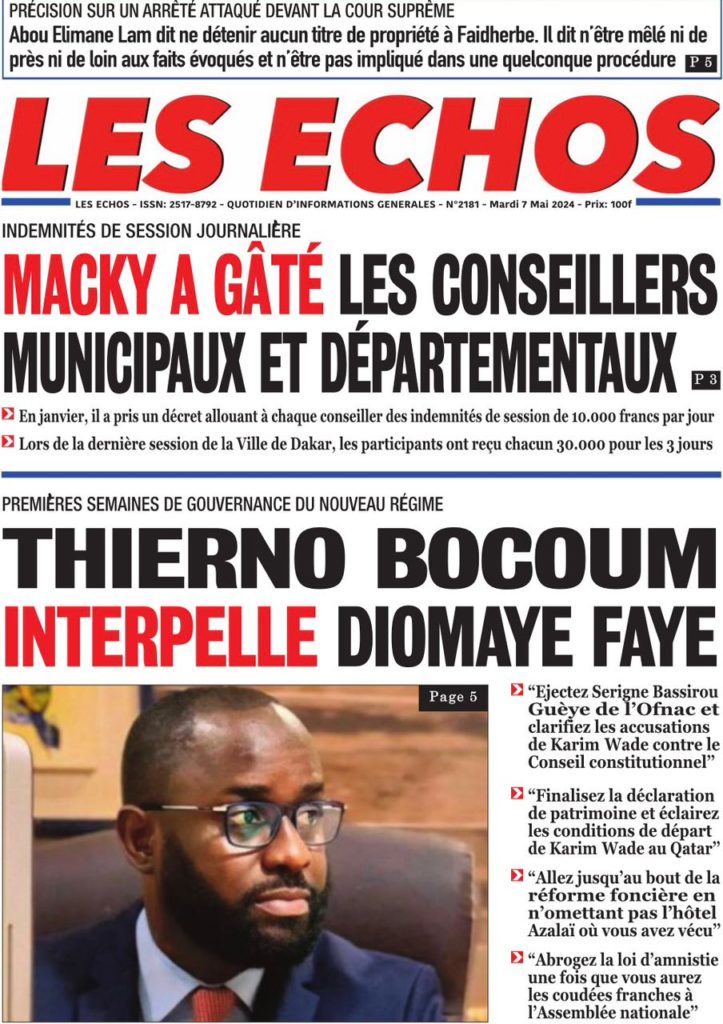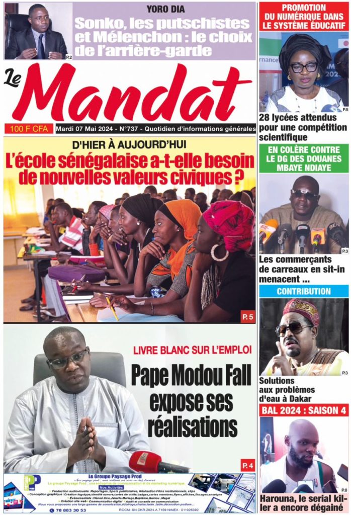 " /> La Une des Quotidiens Nationaux du 6 Mai 2024 Publié le 7 Mai, 2024 À DÉCOUVRIR Les Unes des quotidiens nationaux du 07 novembre 2025 7 Nov, 2025 La Rédaction de SenCaféActu Partager ->