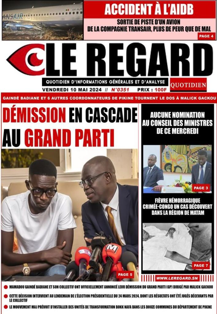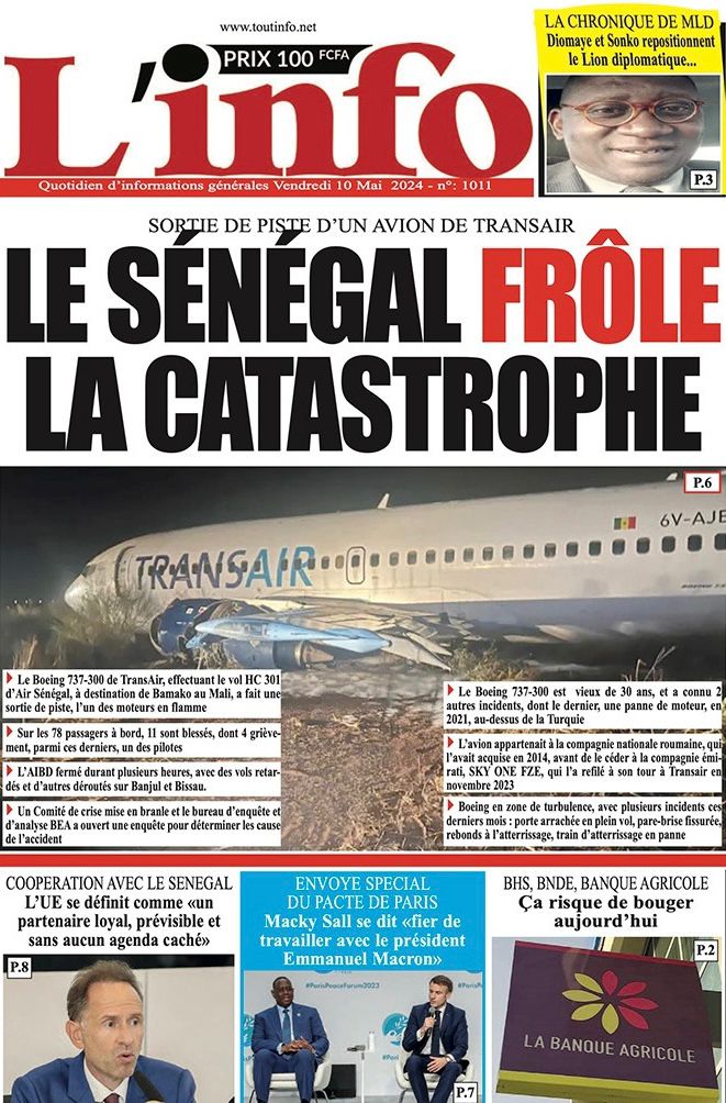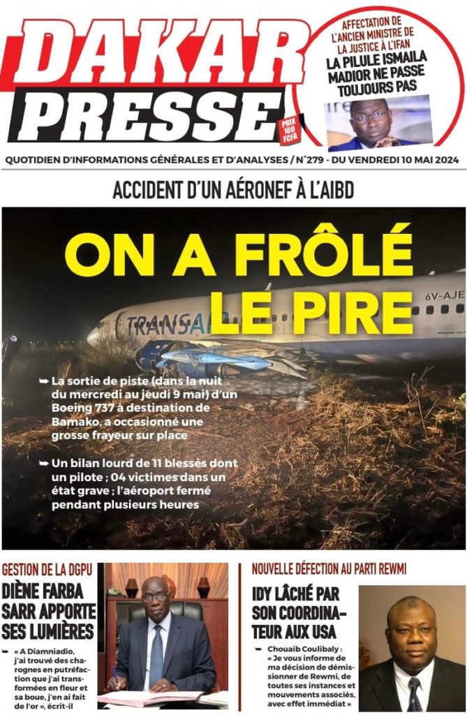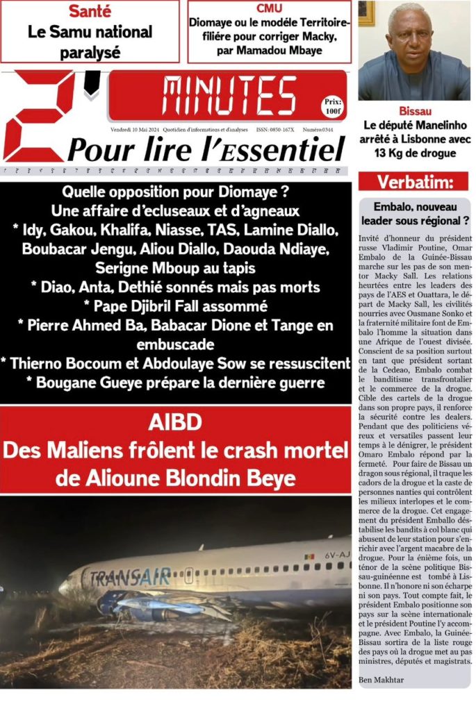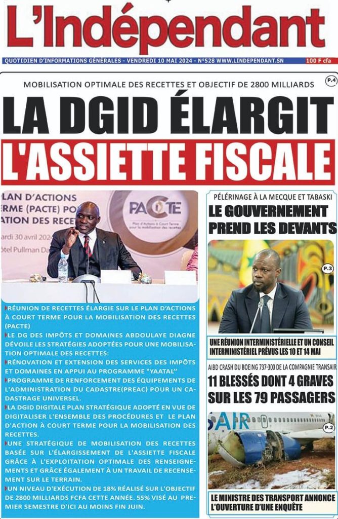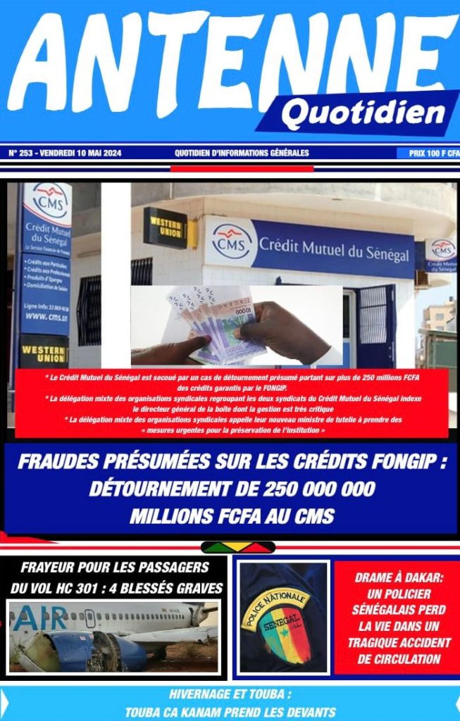 " /> La Une des Quotidiens Nationaux du 10 Mai 2024 Publié le 10 Mai, 2024 À DÉCOUVRIR Les Unes des quotidiens nationaux du 07 novembre 2025 7 Nov, 2025 La Rédaction de SenCaféActu Partager ->