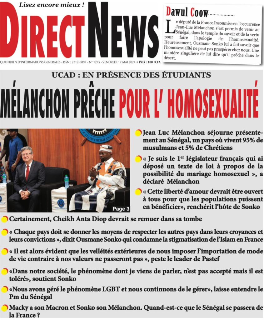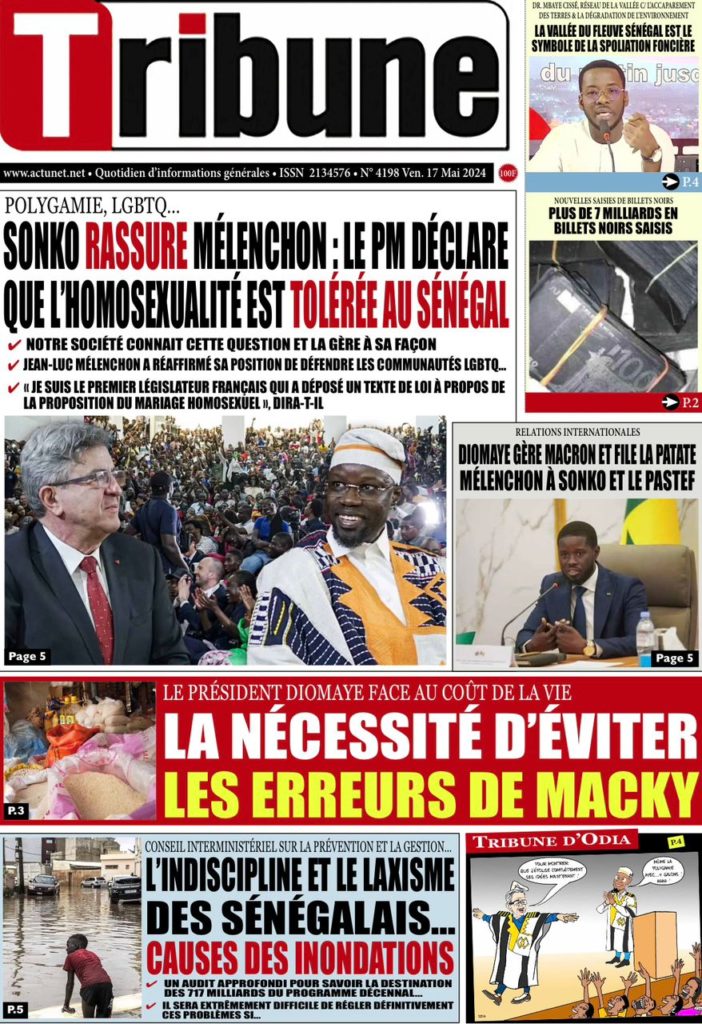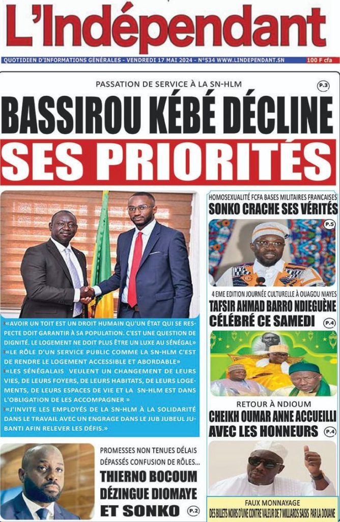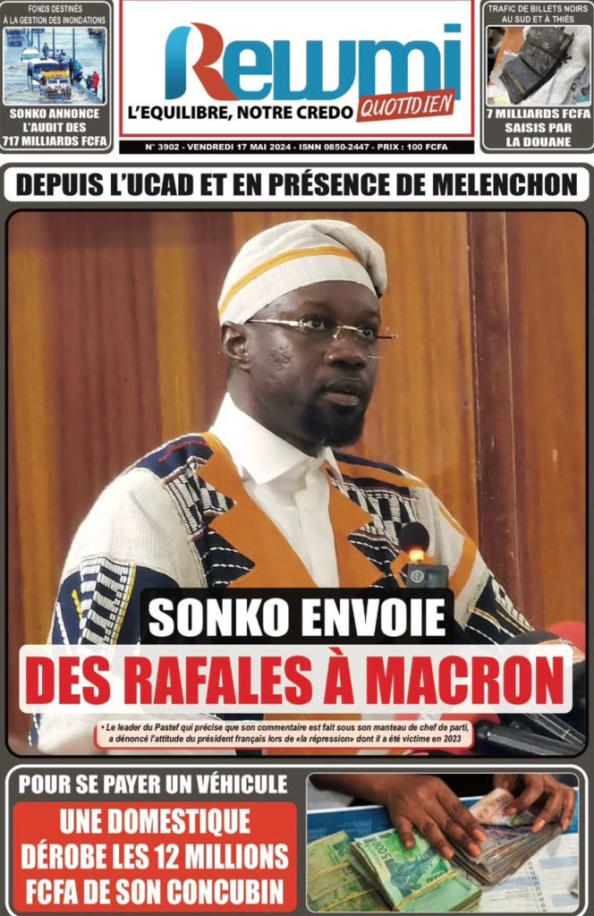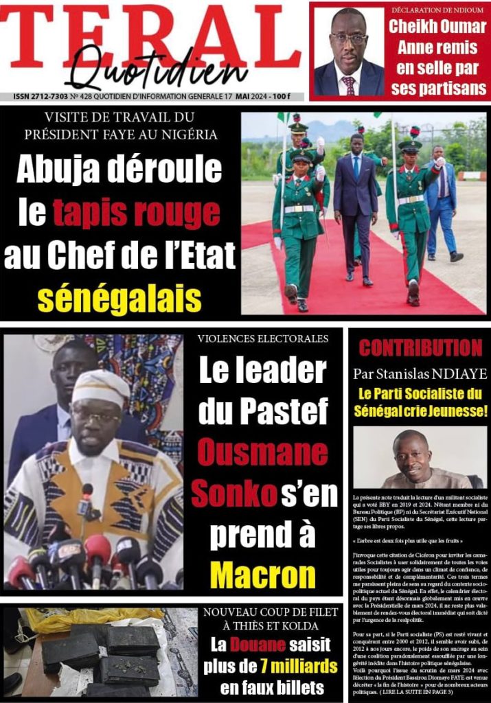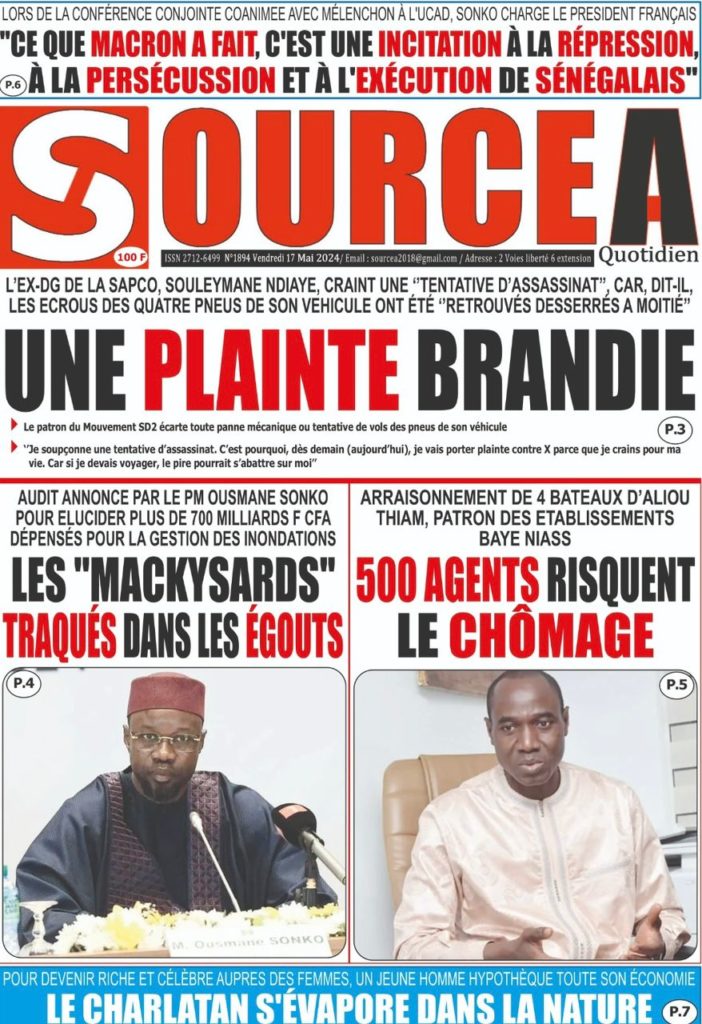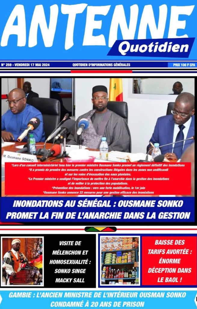 " /> La Une des Quotidiens Nationaux du 17 Mai 2024 Publié le 17 Mai, 2024 À DÉCOUVRIR Les Unes des quotidiens nationaux du 07 novembre 2025 7 Nov, 2025 La Rédaction de SenCaféActu Partager ->