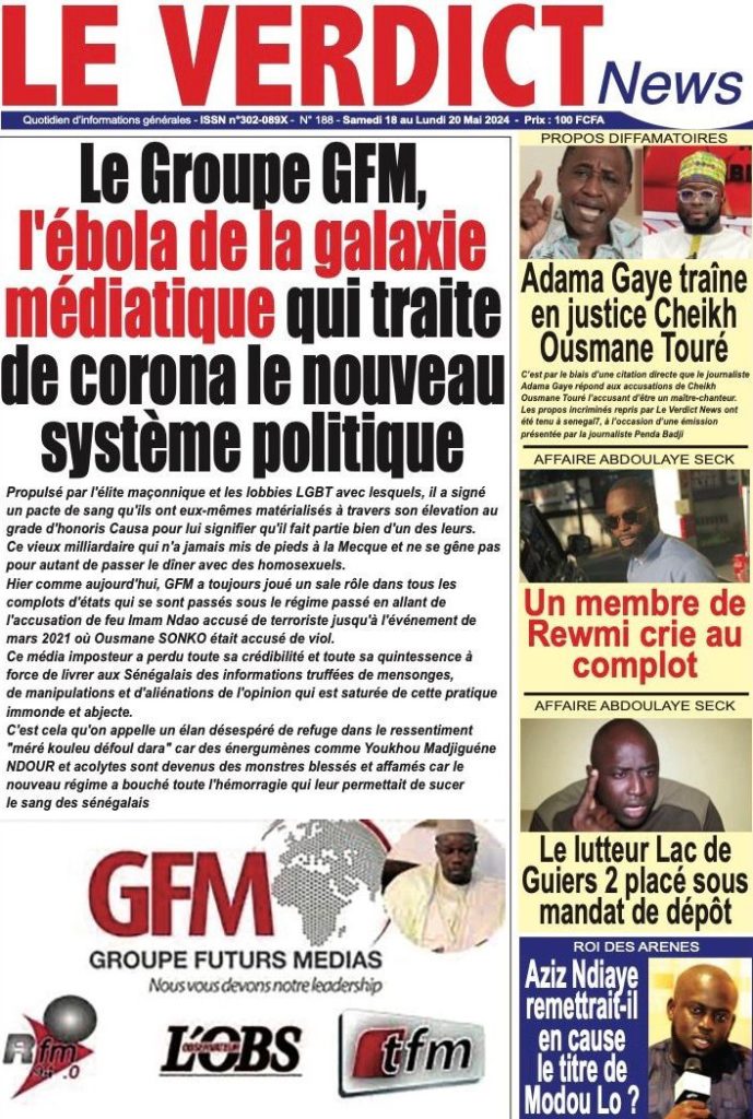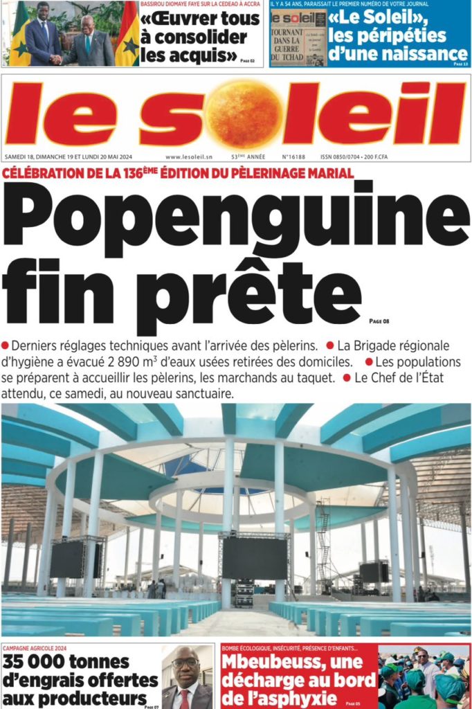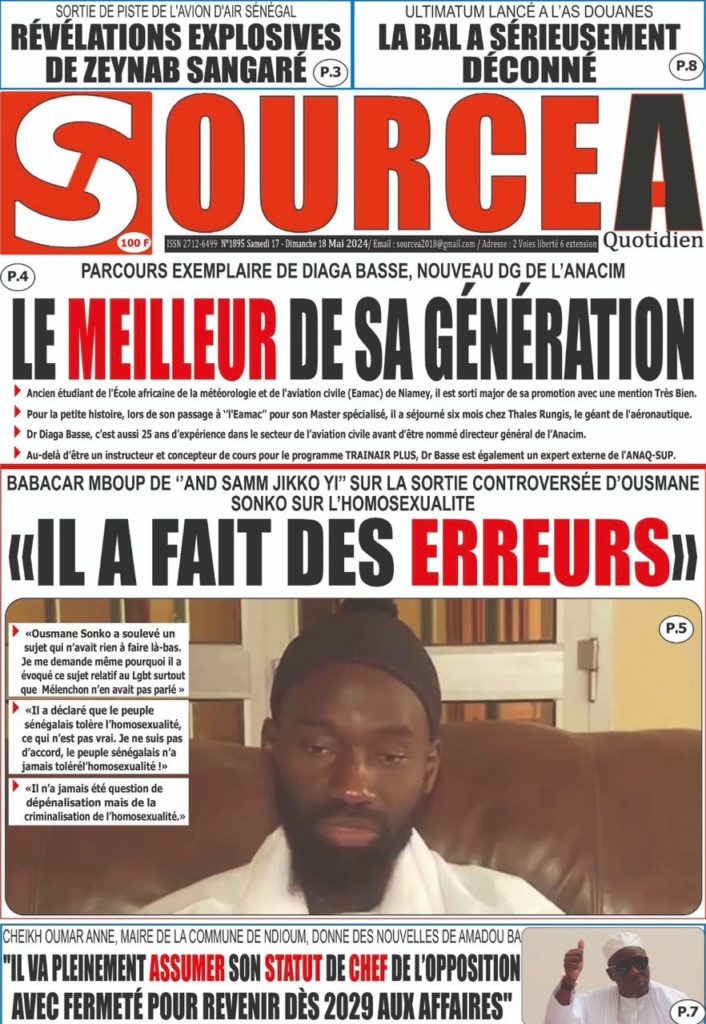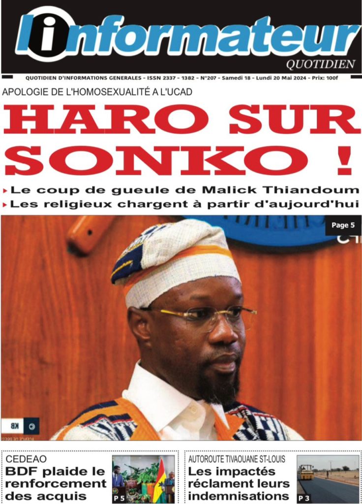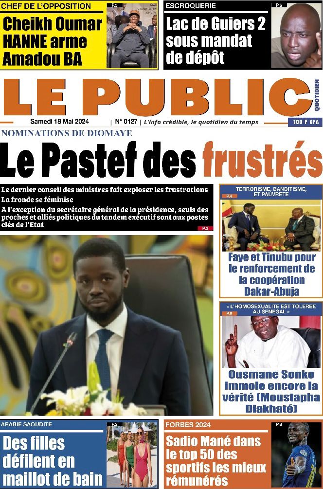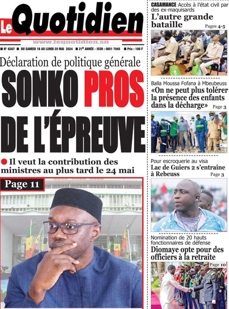 " /> La Une des Quotidiens Nationaux du 18 Mai 2024 Publié le 18 Mai, 2024 À DÉCOUVRIR Les Unes des quotidiens nationaux du 15 novembre 2025 15 Nov, 2025 La Rédaction de SenCaféActu Partager ->