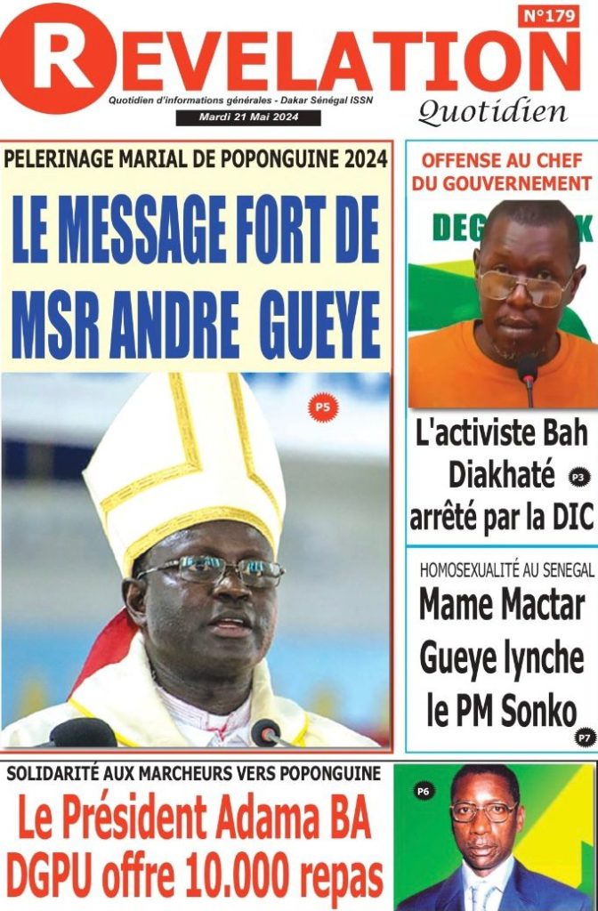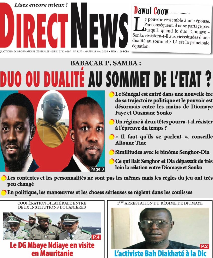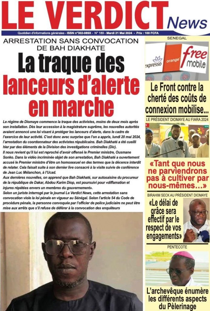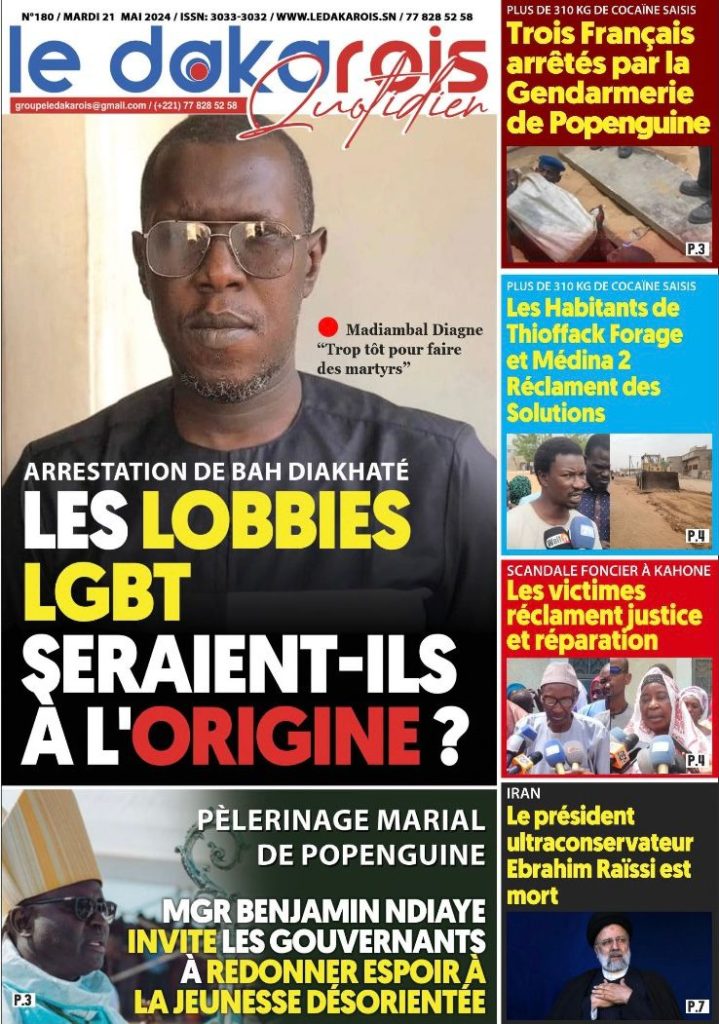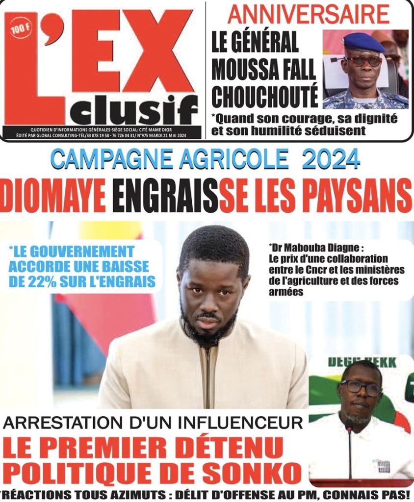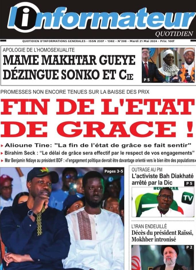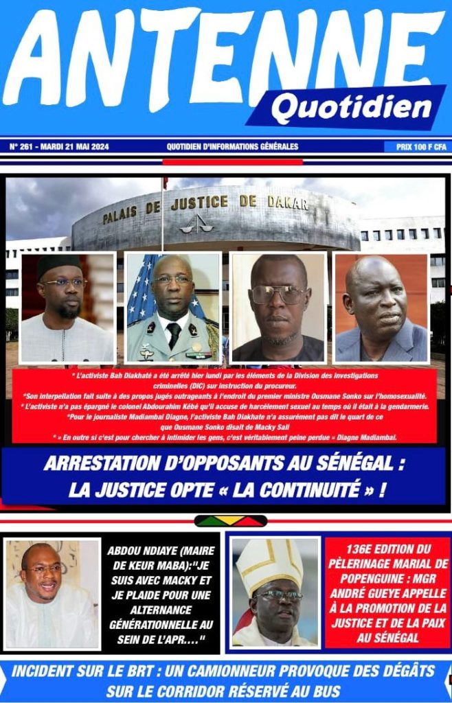 " /> La Une des Quotidiens Nationaux du 21 Mai 2024 Publié le 21 Mai, 2024 À DÉCOUVRIR Les Unes des quotidiens nationaux du 07 novembre 2025 7 Nov, 2025 La Rédaction de SenCaféActu Partager ->