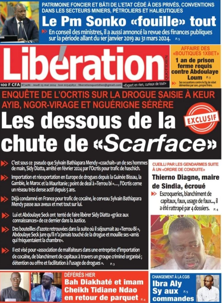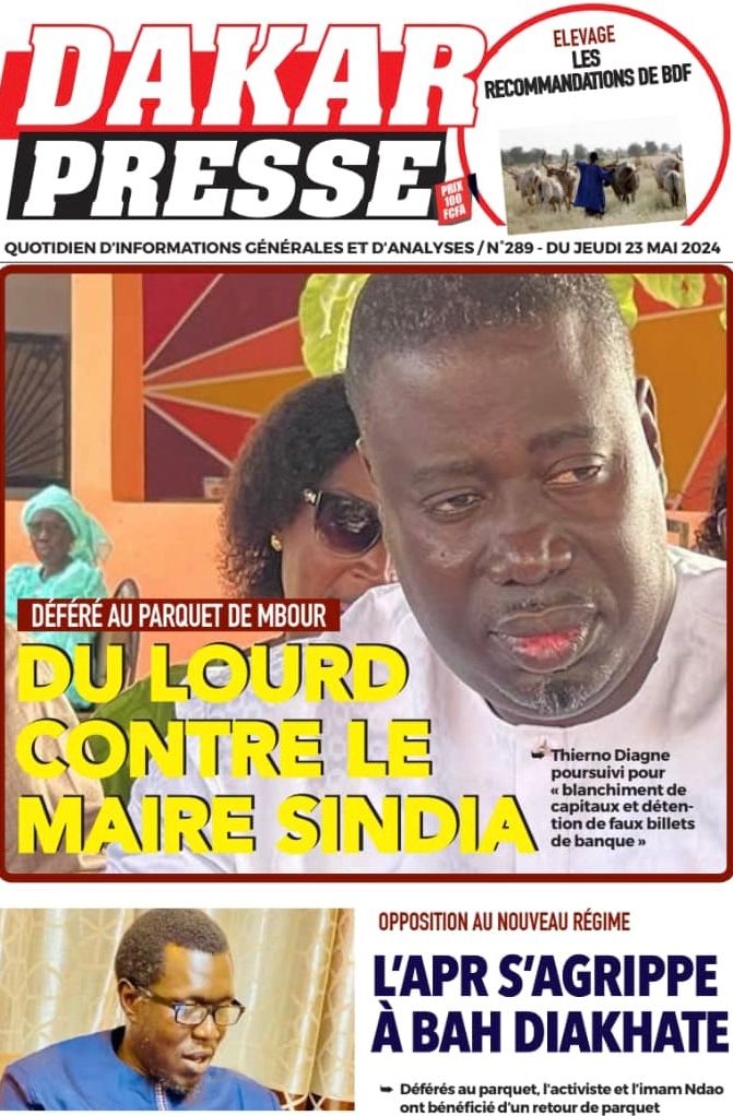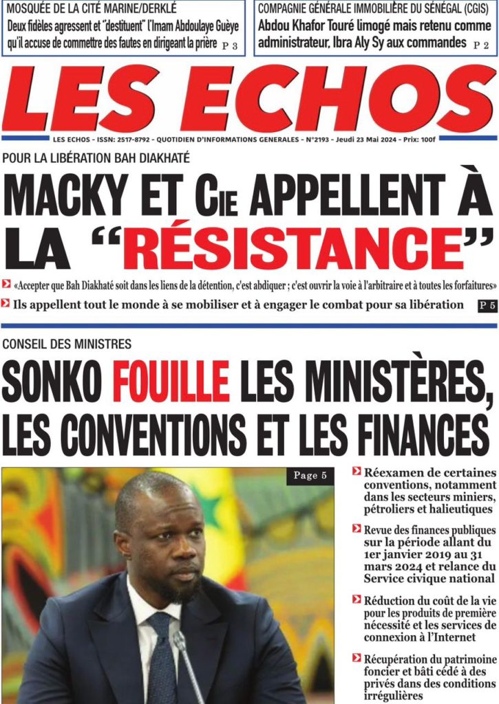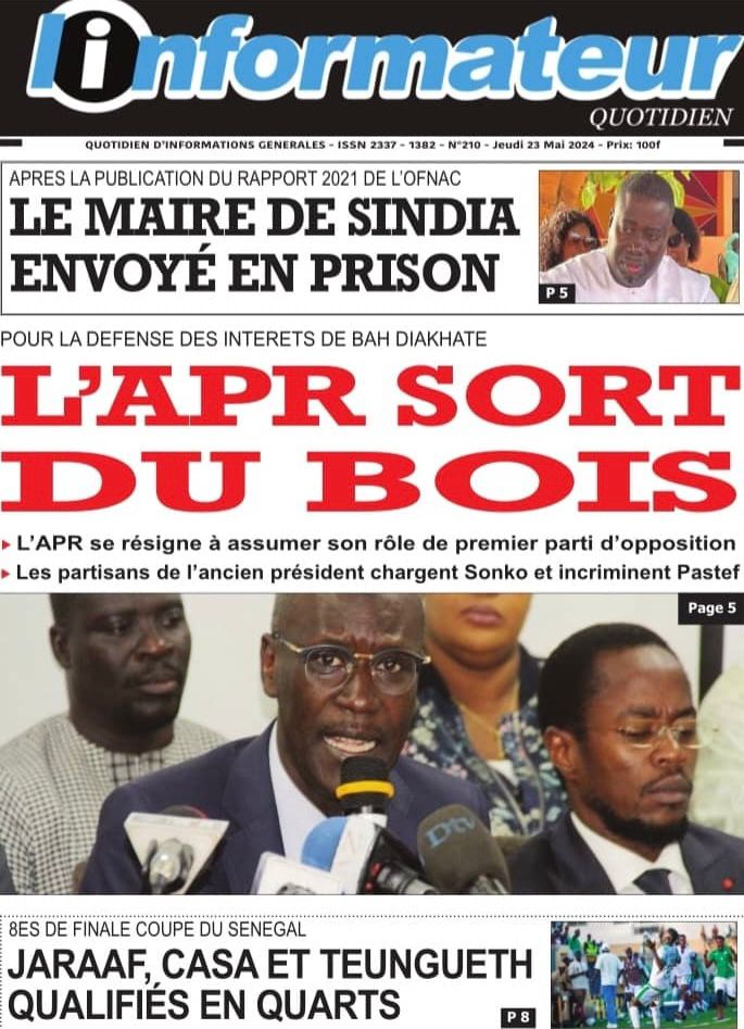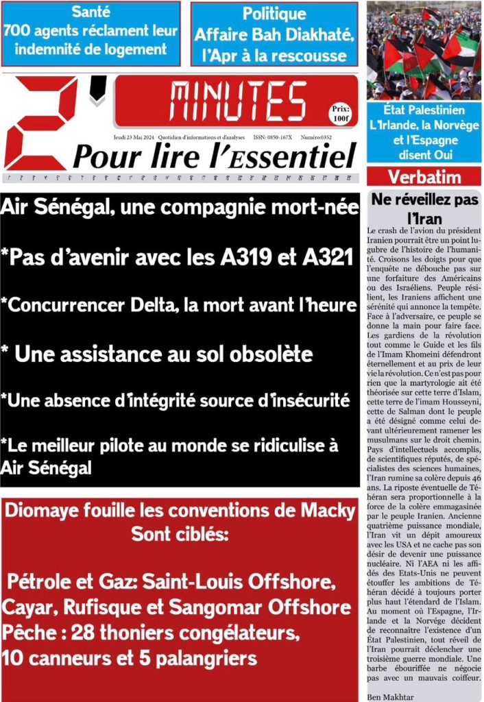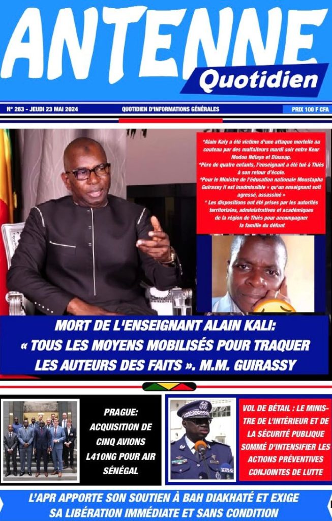 " /> La Une des Quotidiens Nationaux du 23 Mai 2024 Publié le 23 Mai, 2024 À DÉCOUVRIR Les Unes des quotidiens nationaux du 30 octobre 2025 30 Oct, 2025 La Rédaction de SenCaféActu Partager ->