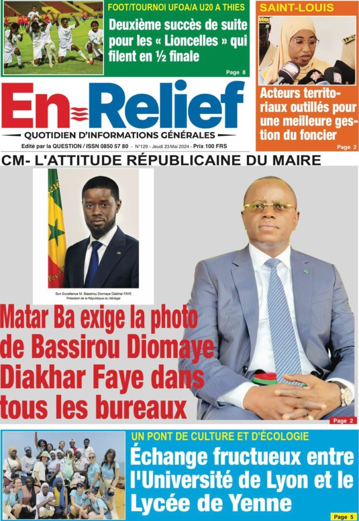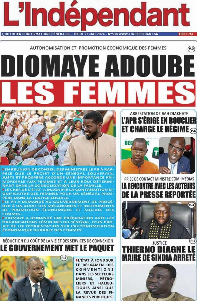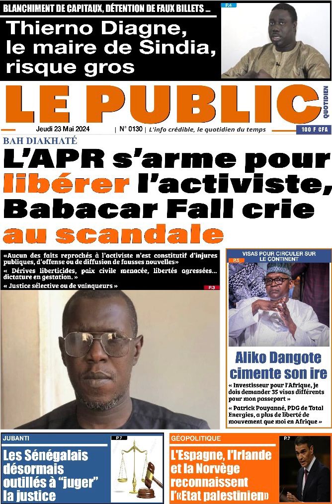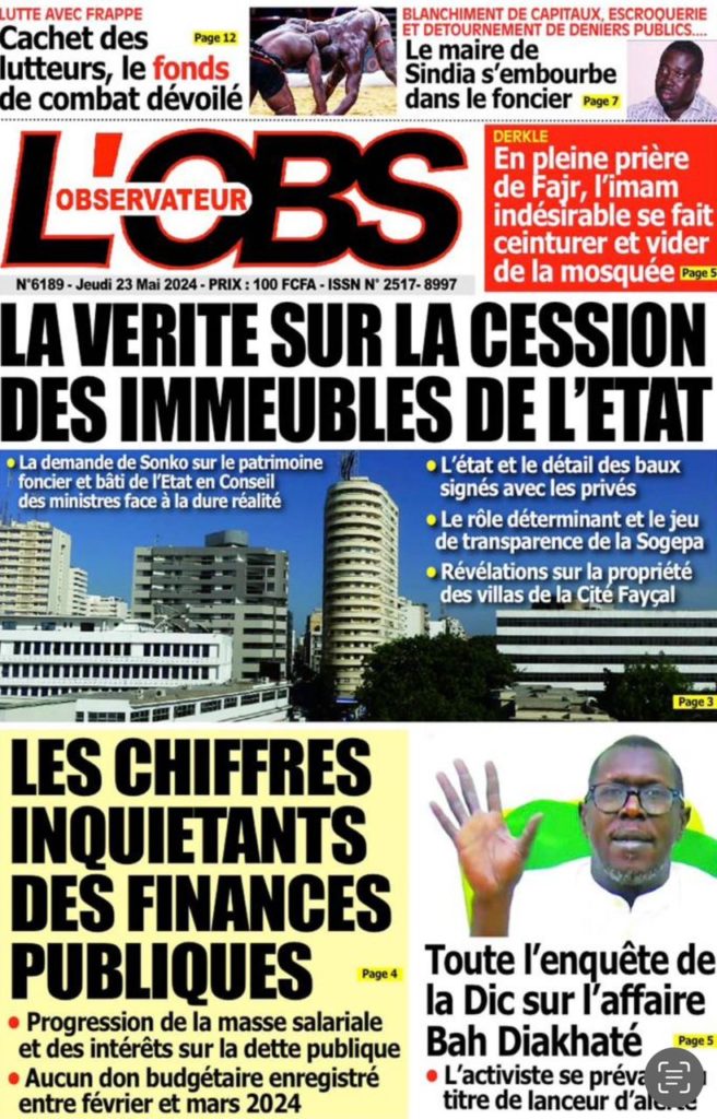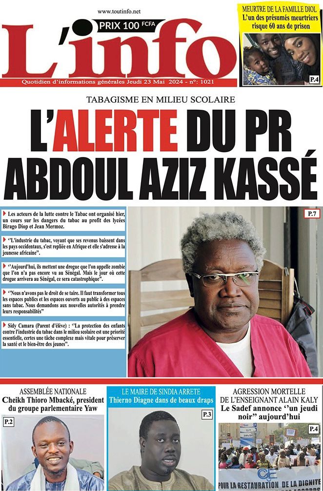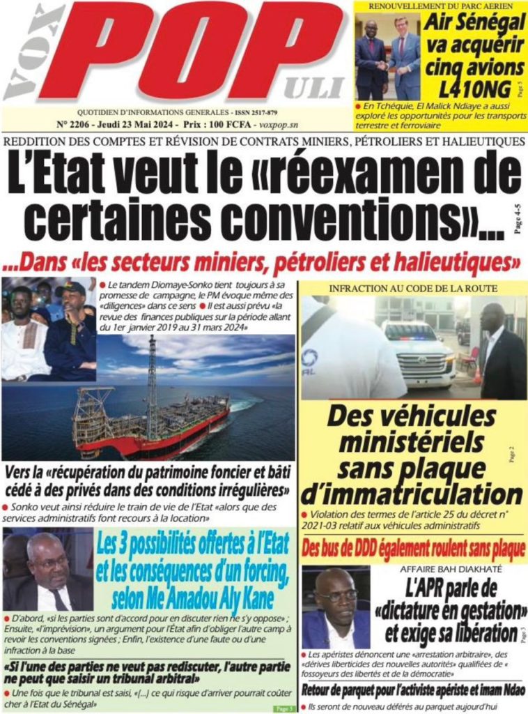 " /> La Une des Quotidiens Nationaux du 23 Mai 2024 Publié le 23 Mai, 2024 À DÉCOUVRIR Les Unes des quotidiens nationaux du 30 octobre 2025 30 Oct, 2025 La Rédaction de SenCaféActu Partager ->