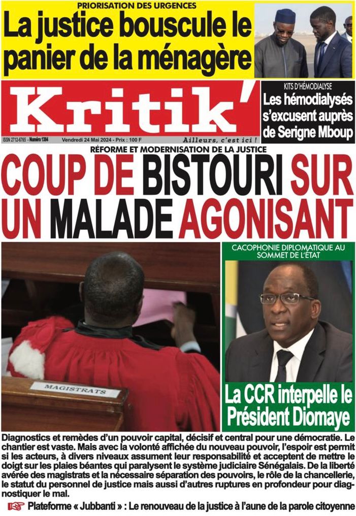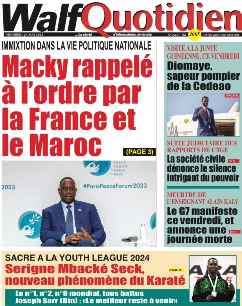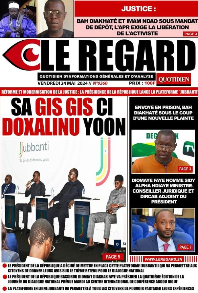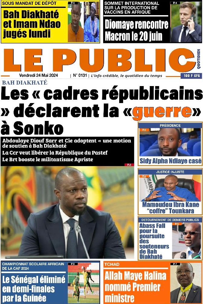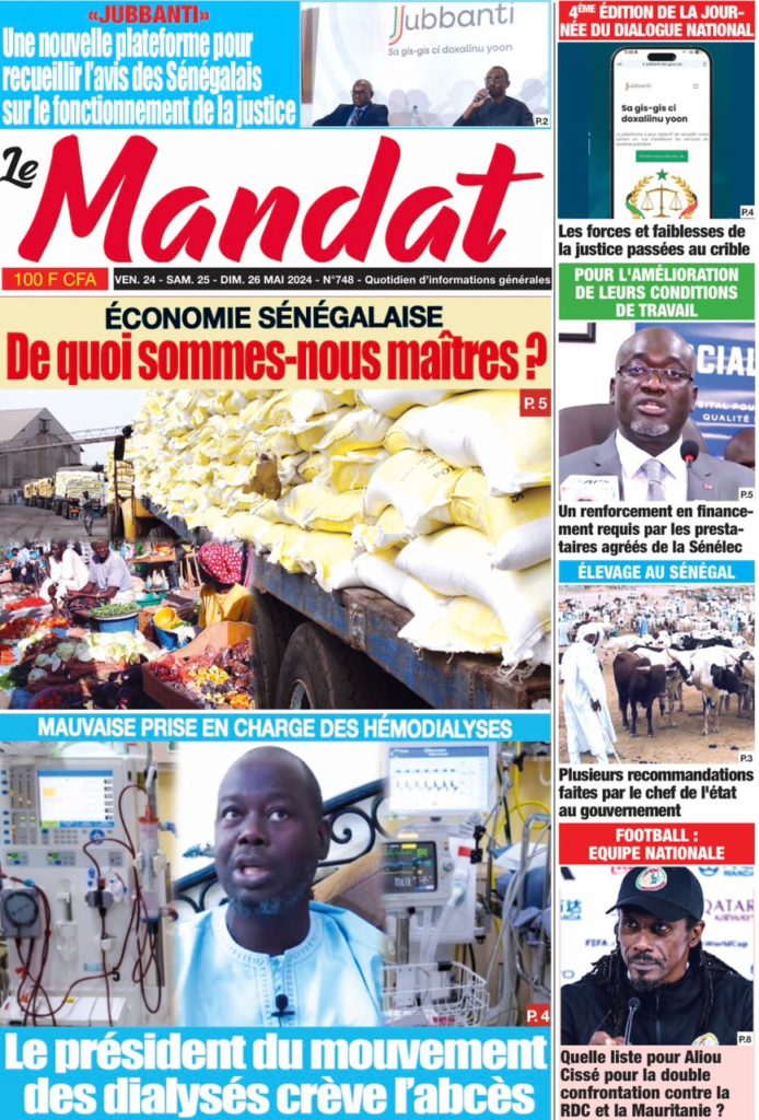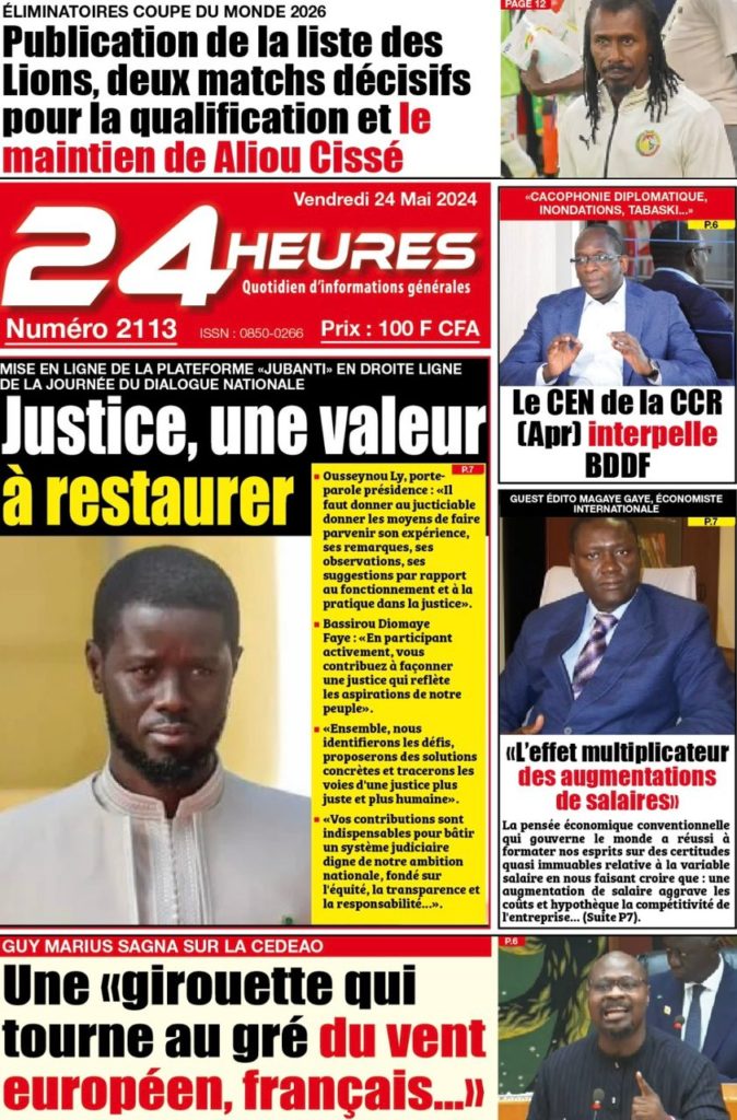 " /> La Une des Quotidiens Nationaux du 24 Mai 2024 Publié le 24 Mai, 2024 À DÉCOUVRIR Les Unes des quotidiens nationaux du 06 novembre 2025 6 Nov, 2025 La Rédaction de SenCaféActu Partager ->