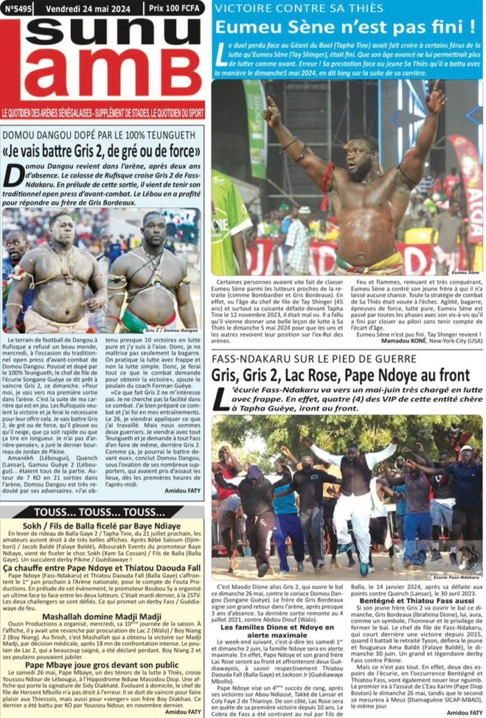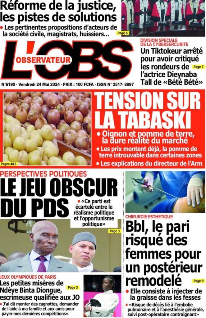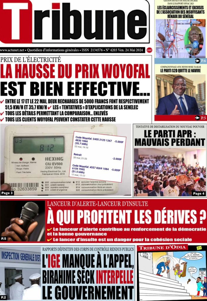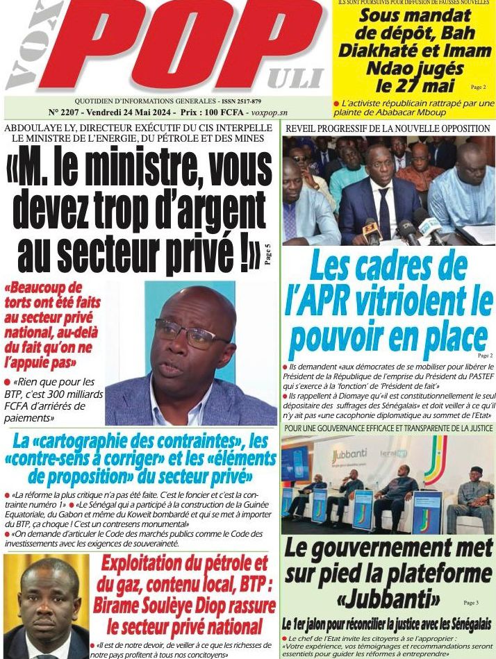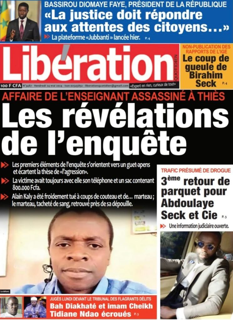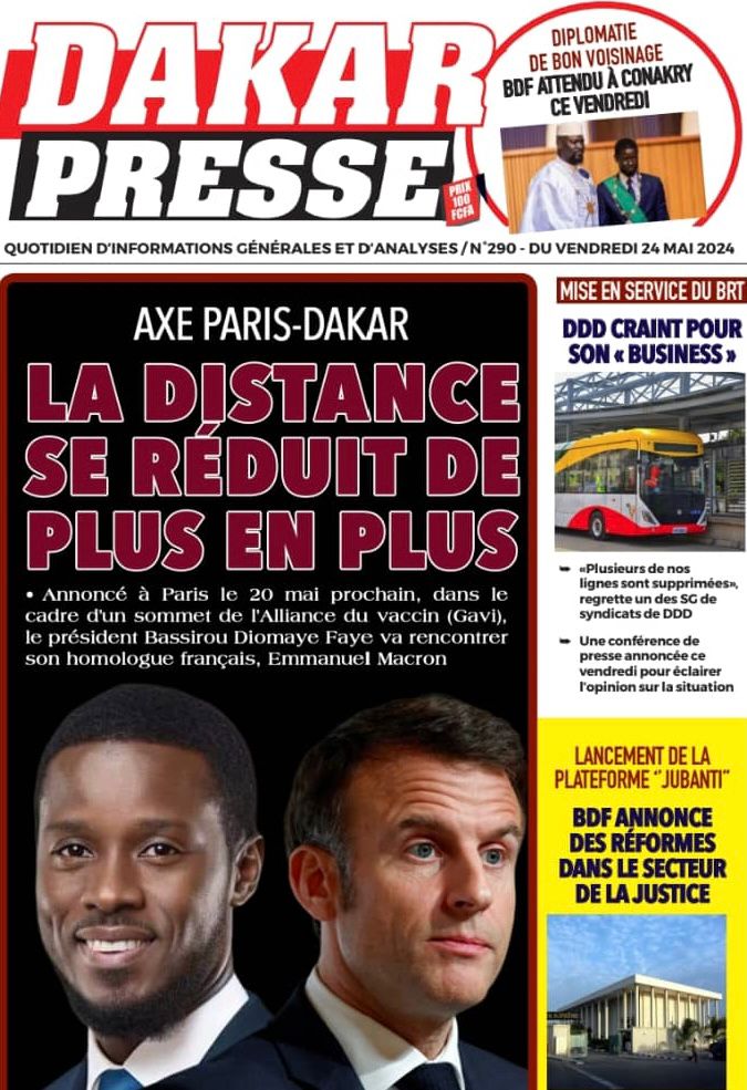 " /> La Une des Quotidiens Nationaux du 24 Mai 2024 Publié le 24 Mai, 2024 À DÉCOUVRIR Les Unes des quotidiens nationaux du 06 novembre 2025 6 Nov, 2025 La Rédaction de SenCaféActu Partager ->