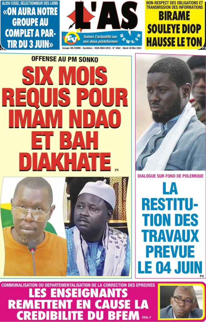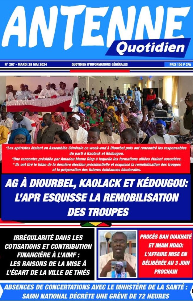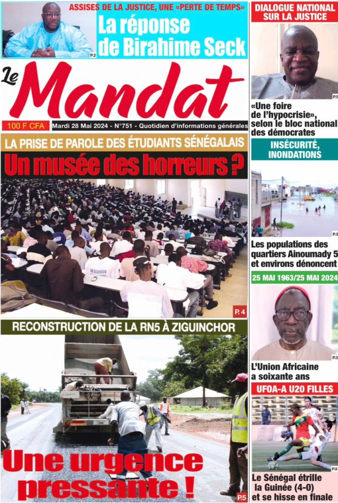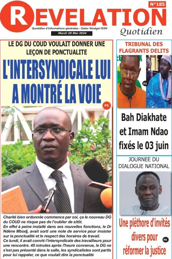 " /> La Une des Quotidiens Nationaux du 28 Mai 2024 Publié le 28 Mai, 2024 À DÉCOUVRIR Les Unes des quotidiens nationaux du 31 octobre 2025 31 Oct, 2025 La Rédaction de SenCaféActu Partager ->